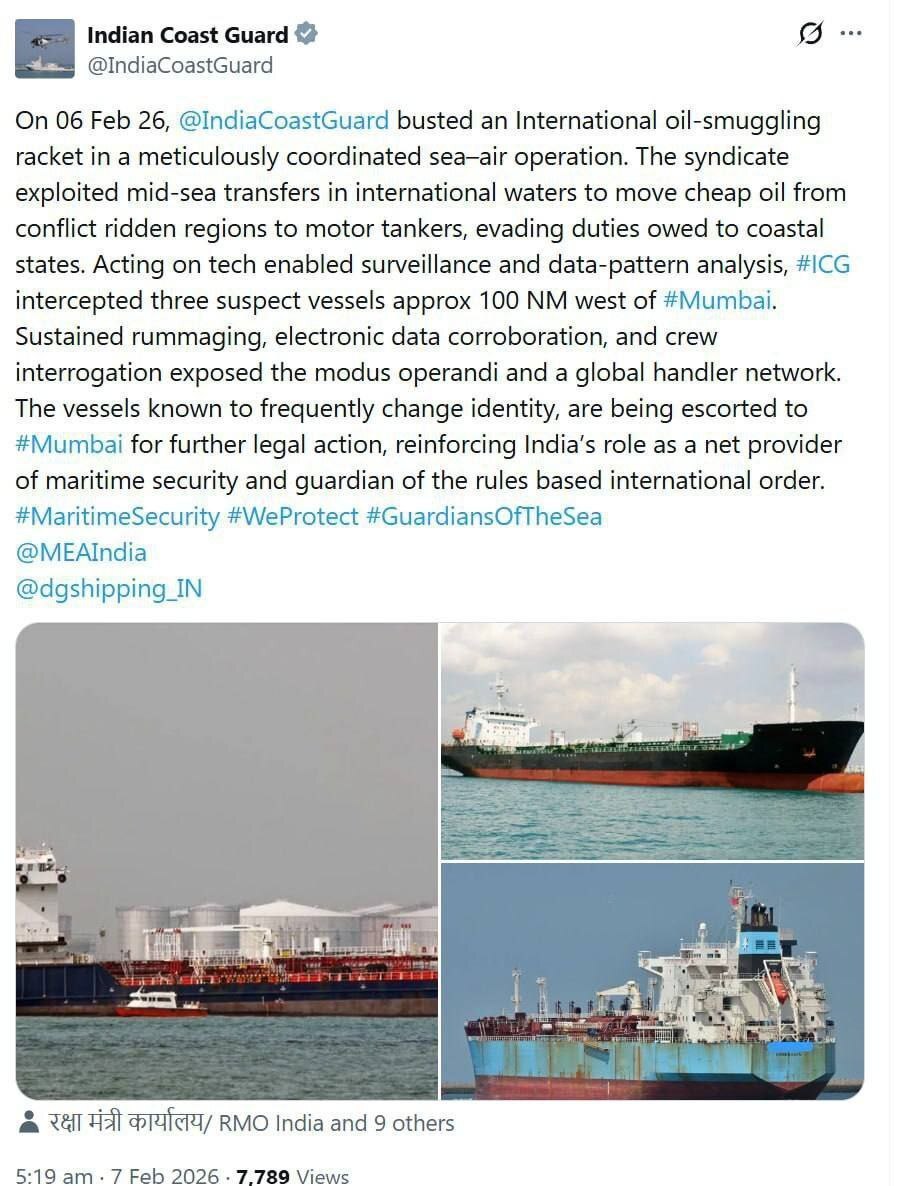 طبق اعلام مقامات هند، این کشتیها بخشی از «ناوگان سایه» محسوب میشوند و پیشتر در سال ۲۰۲۵ توسط ایالات متحده تحریم شده بودند./آسیانیوز