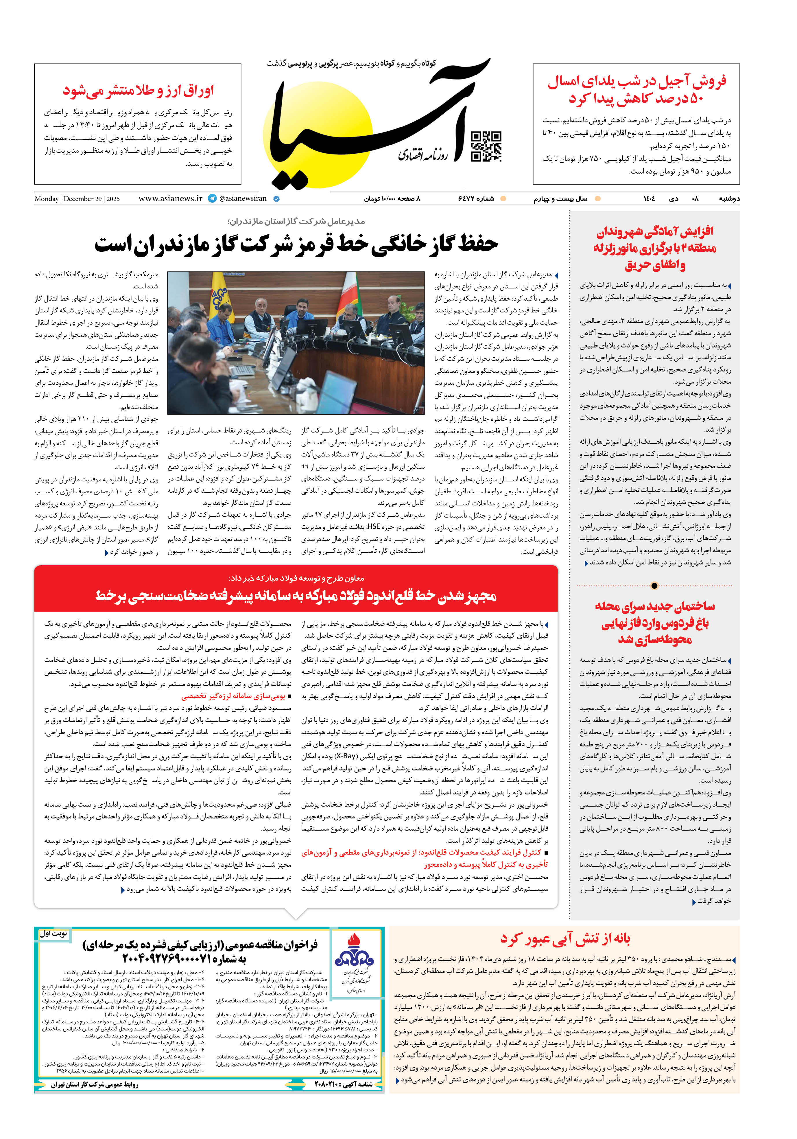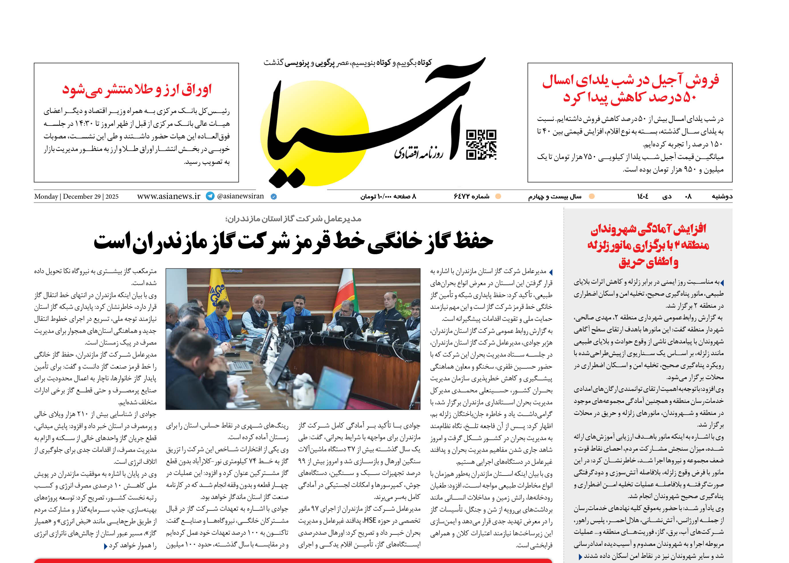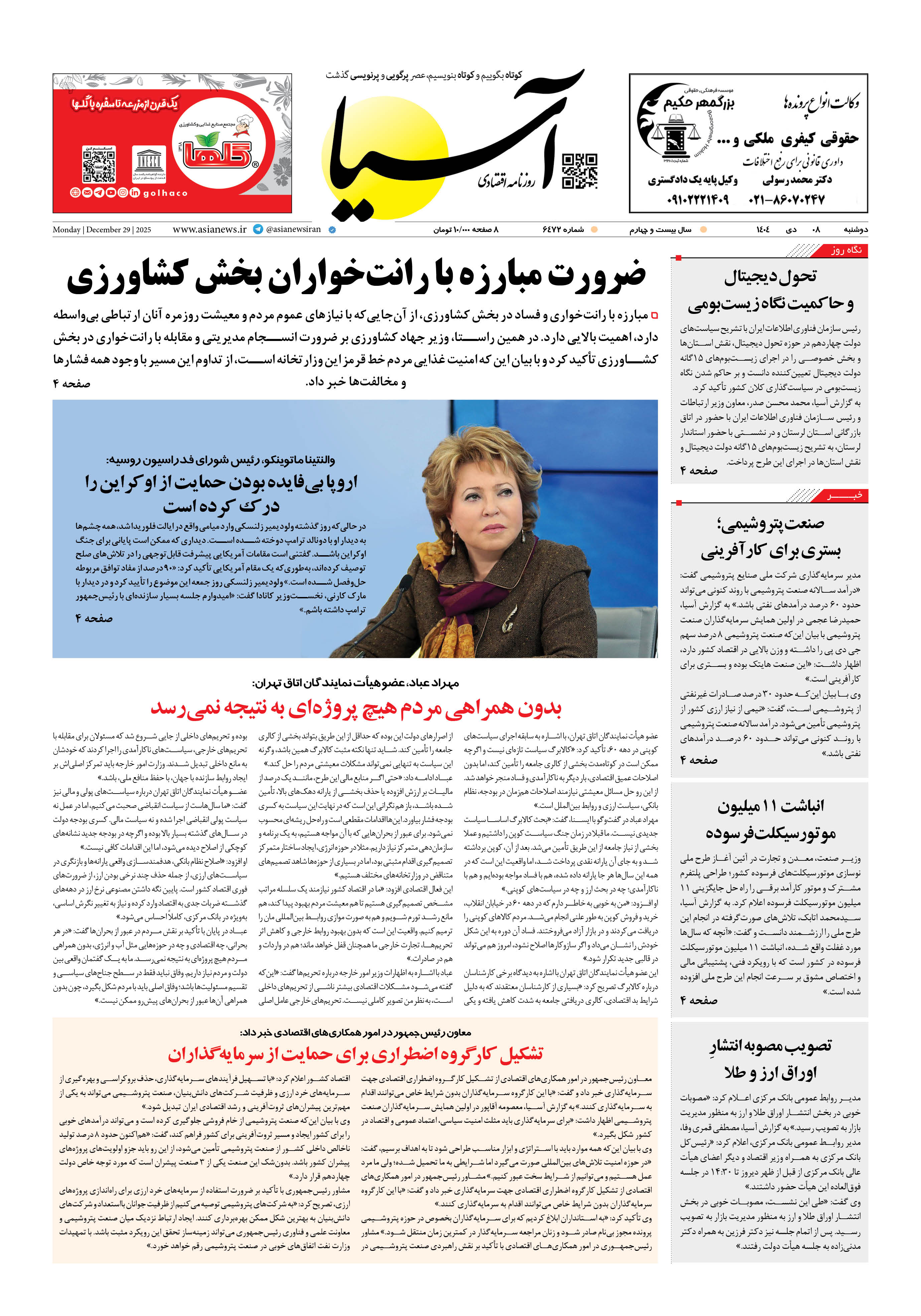 روزنامه اقتصادی آسیا - 8 دی 1404