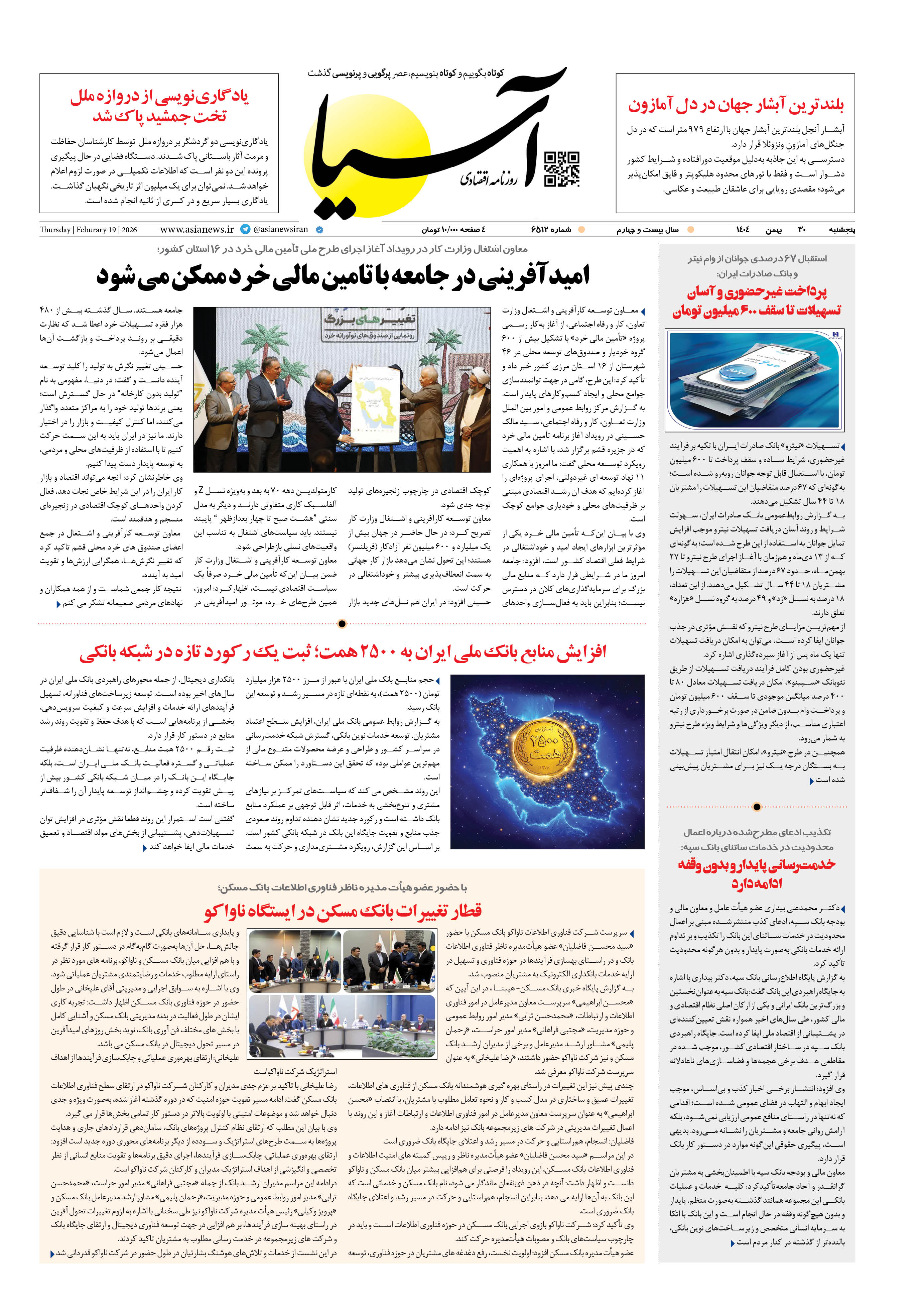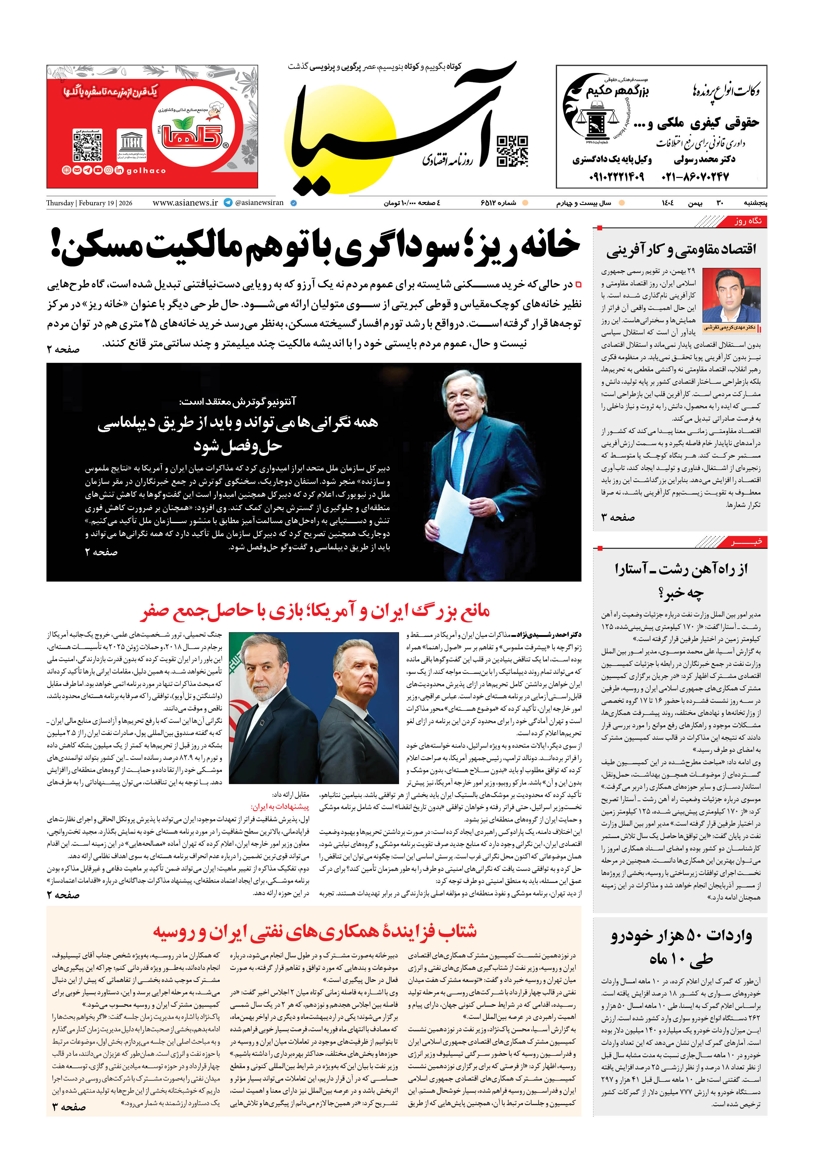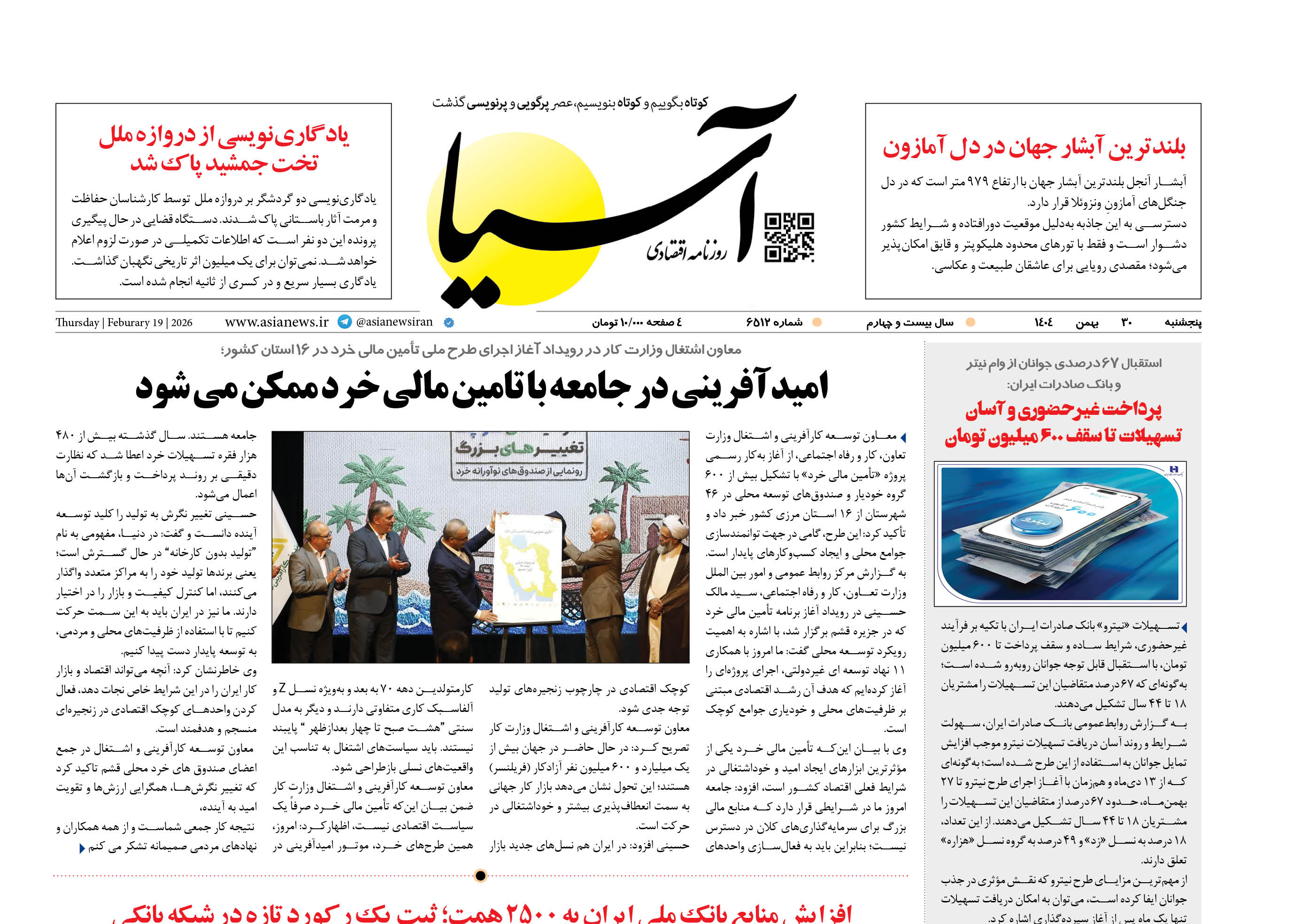 روزنامه اقتصادی آسیا -۳۰ بهمن ۱۴۰۴