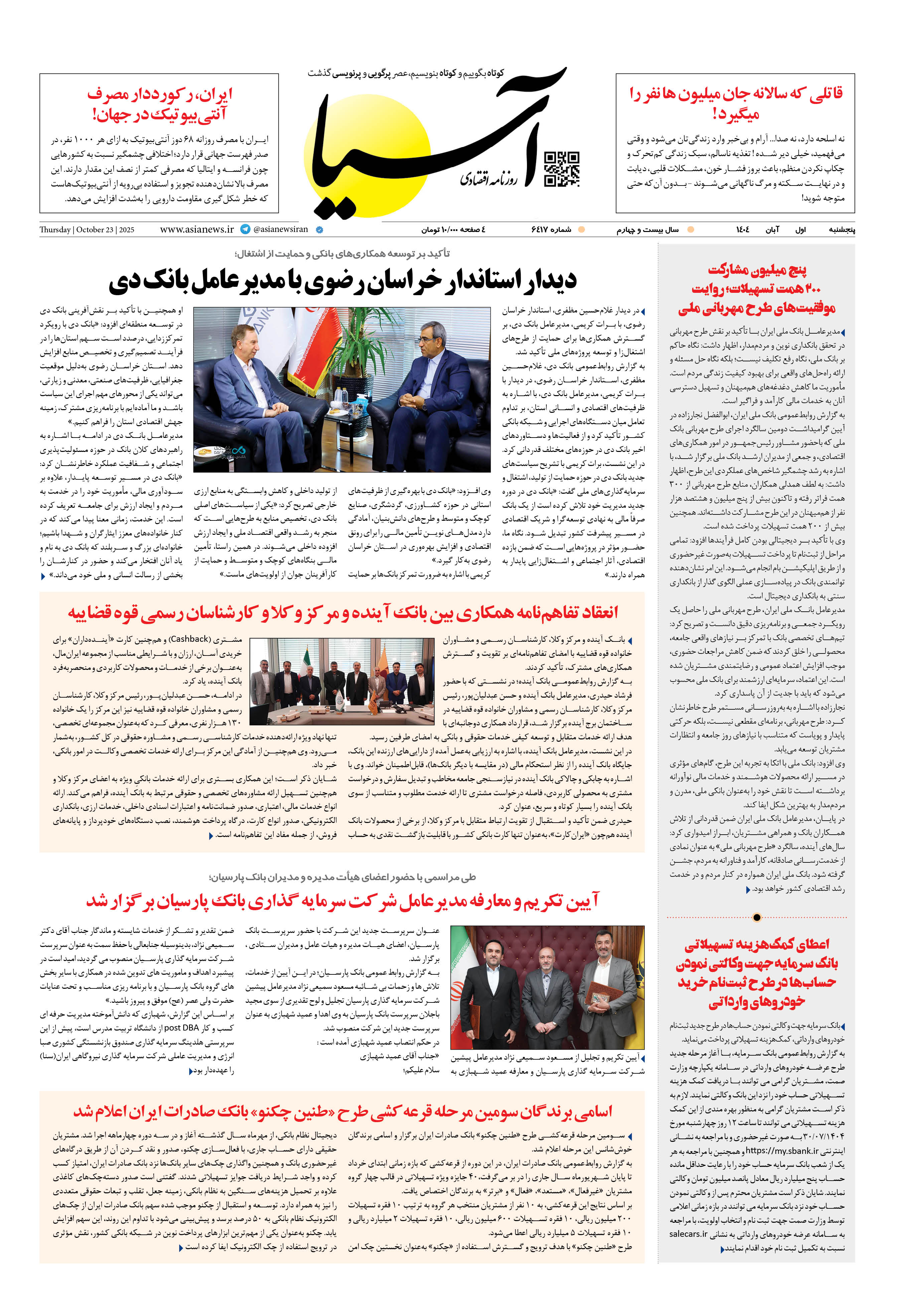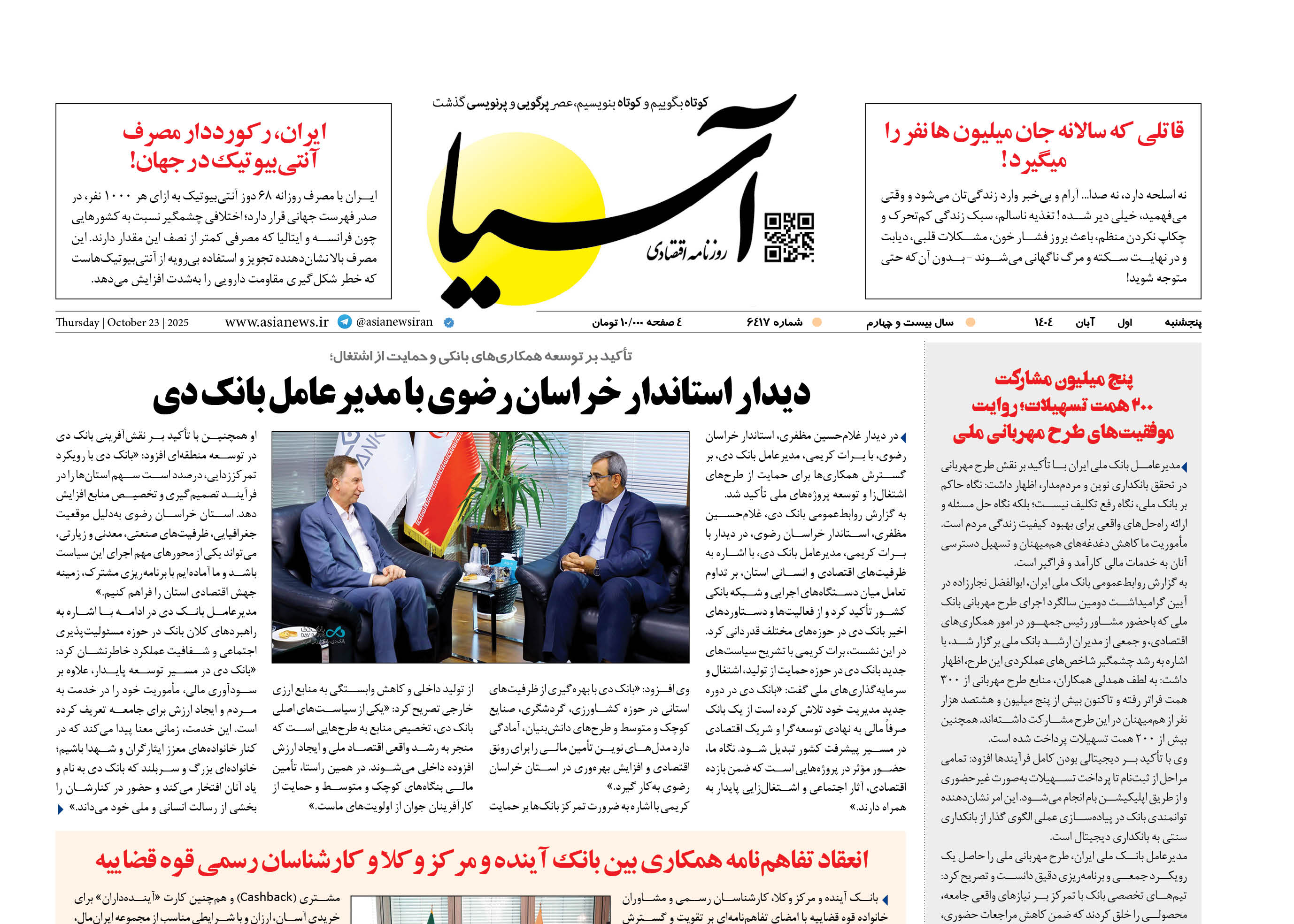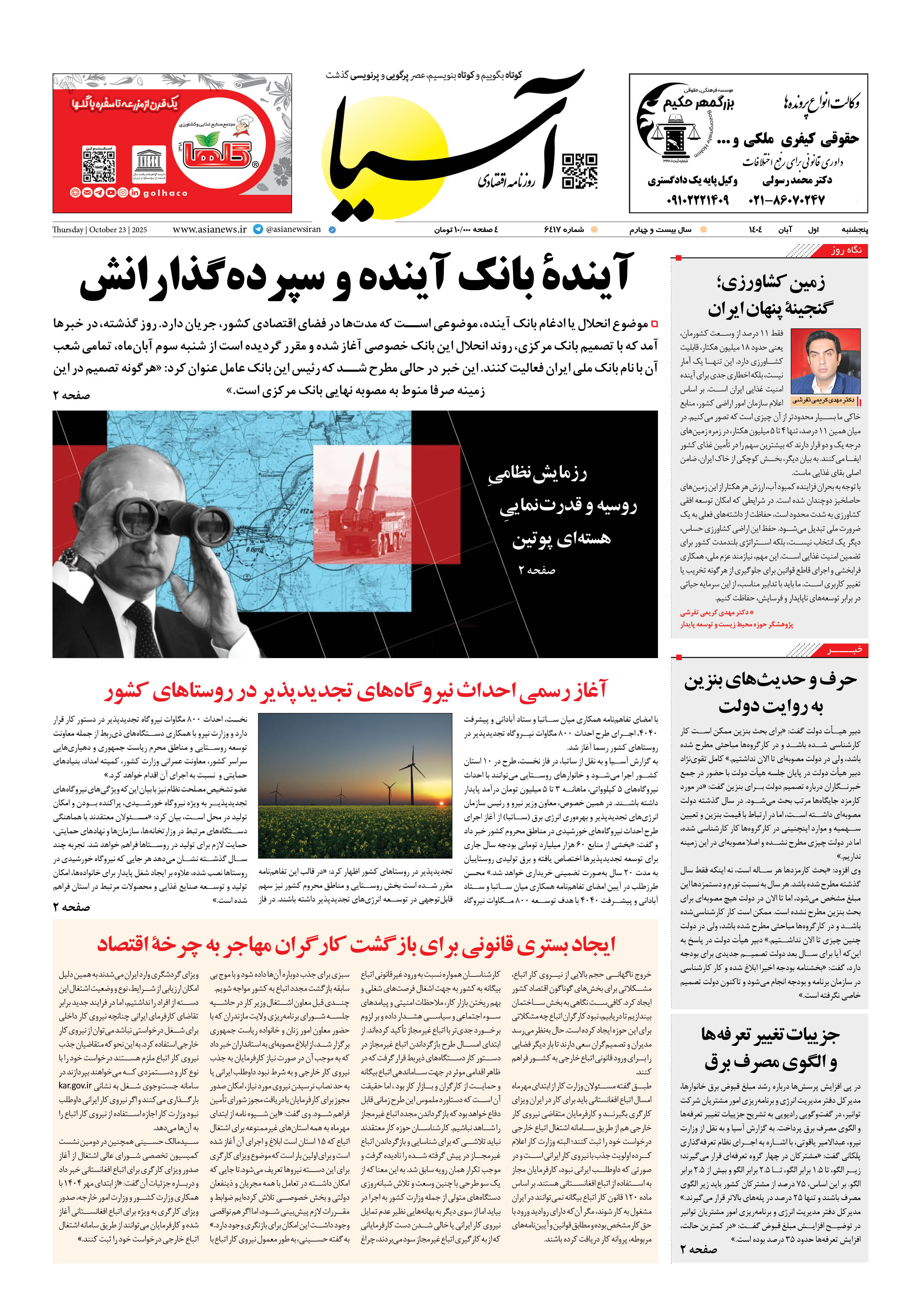 روزنامه اقتصادی آسیا 1 آبان 1404