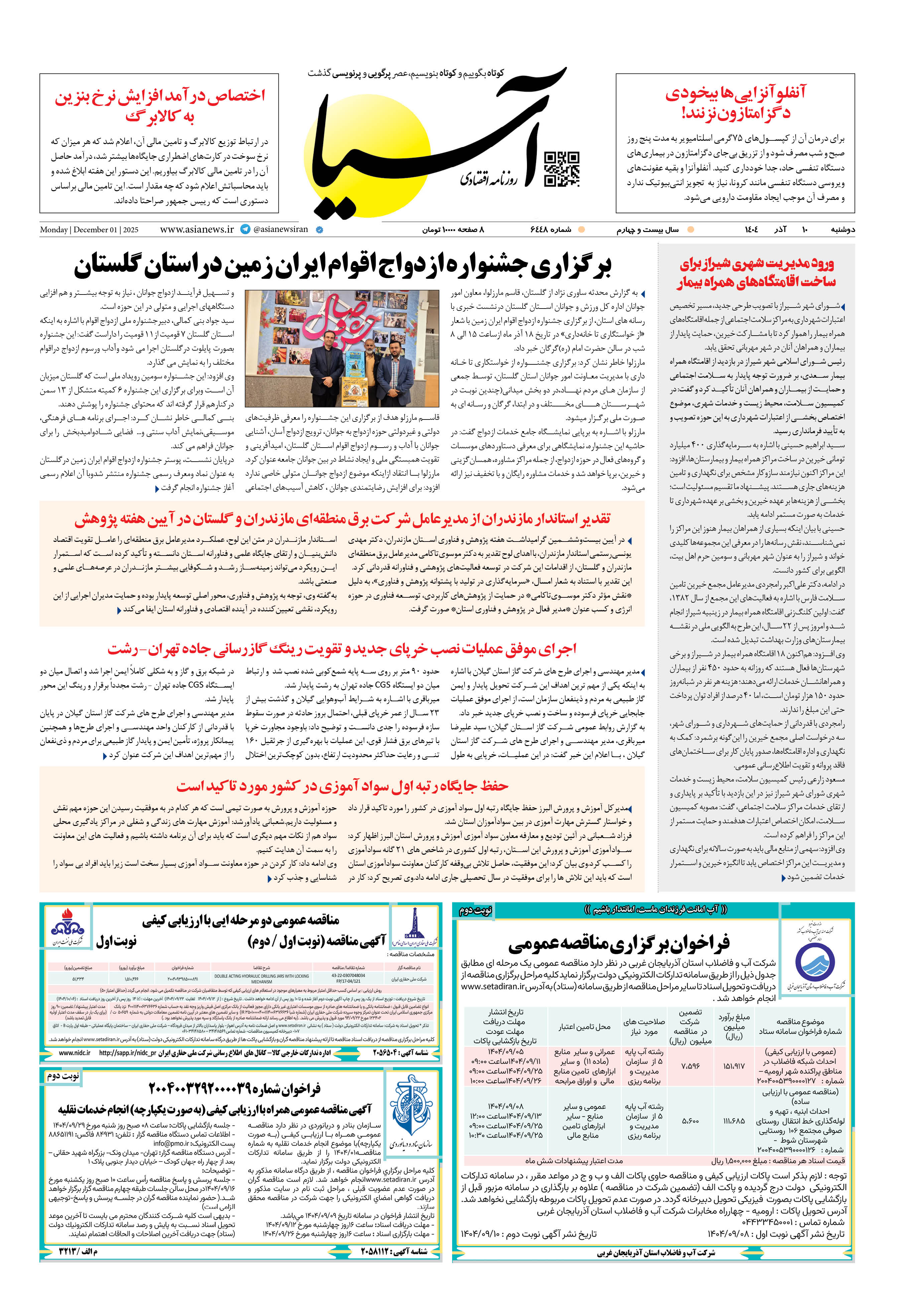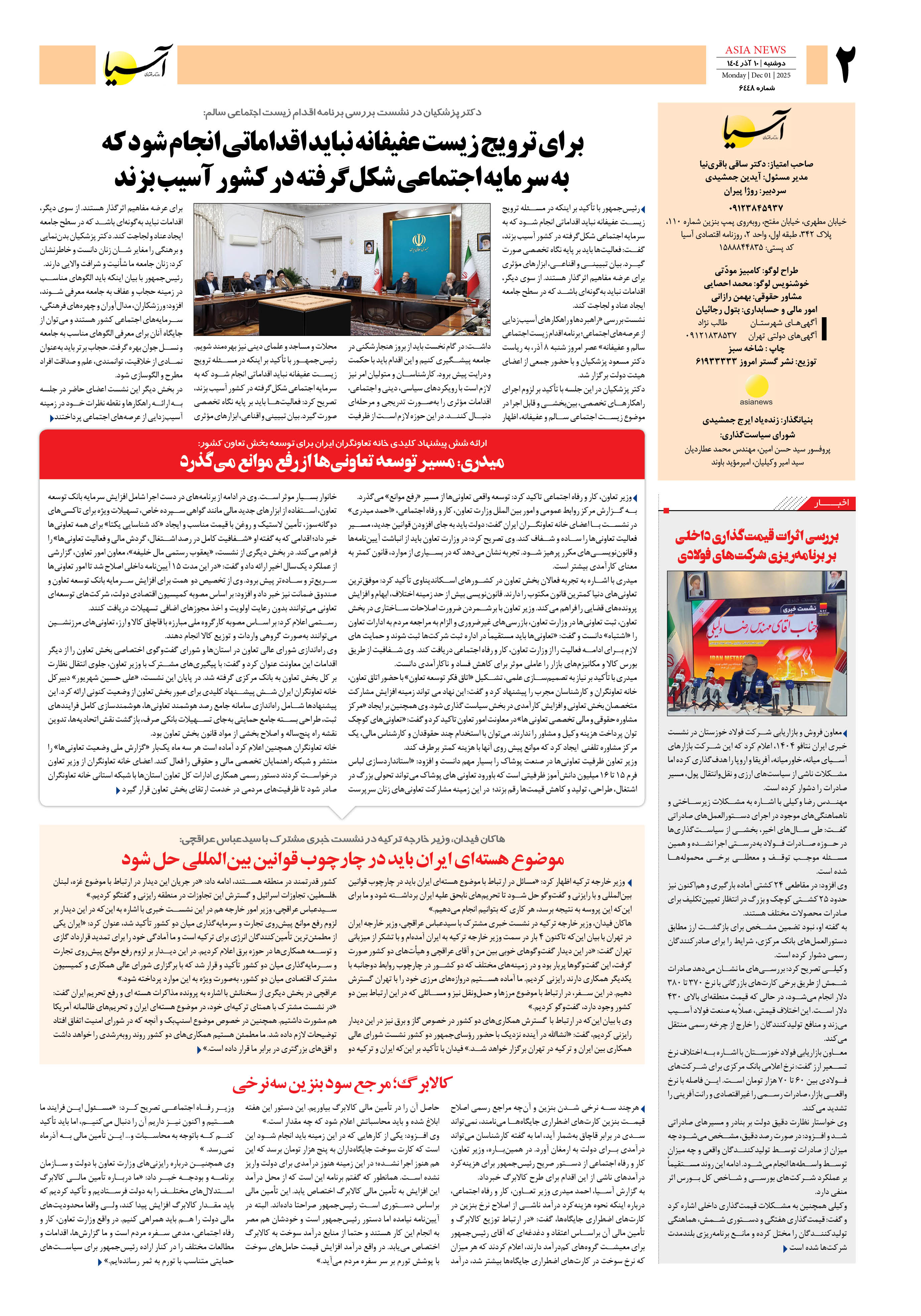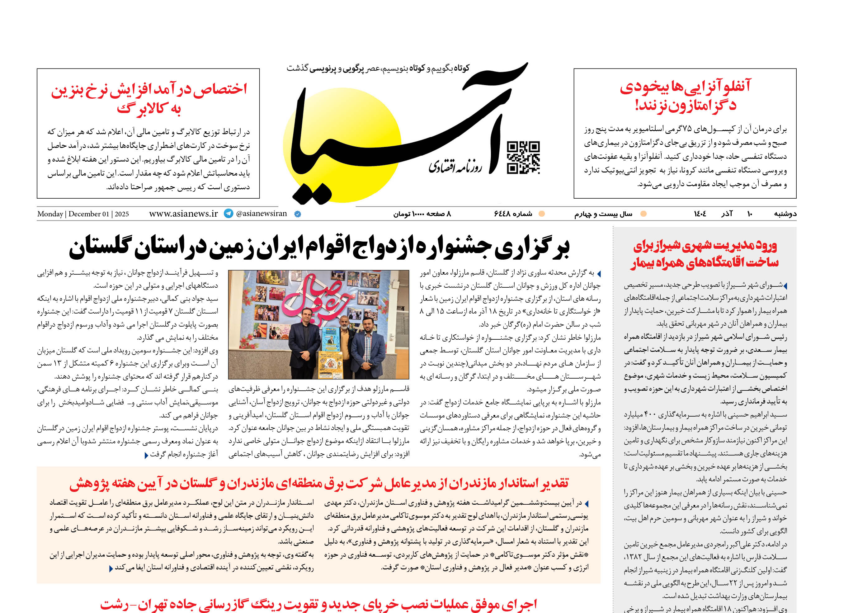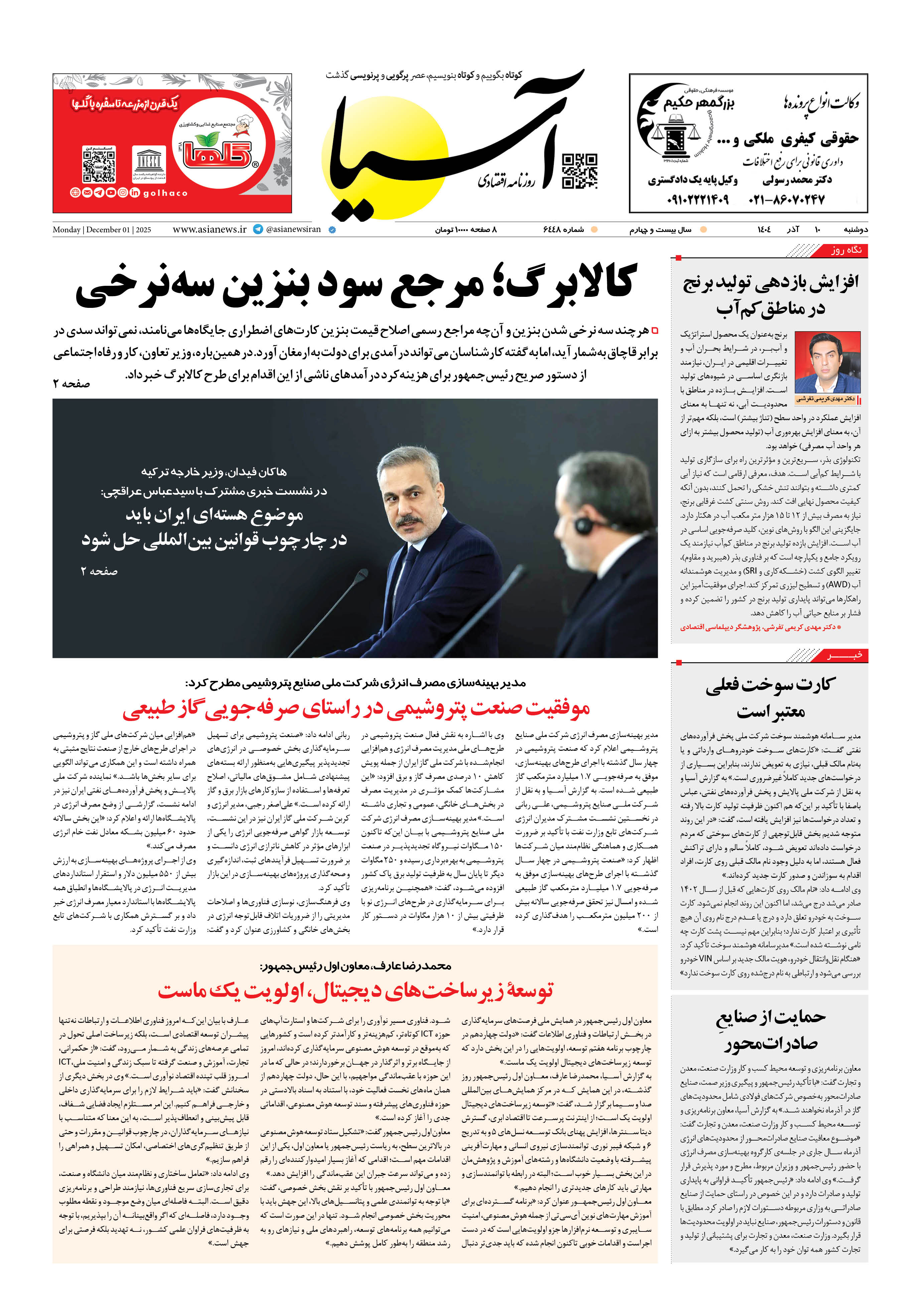 روزنامه اقتصادی آسیا - ۱۰ آذر ۱۴۰۴