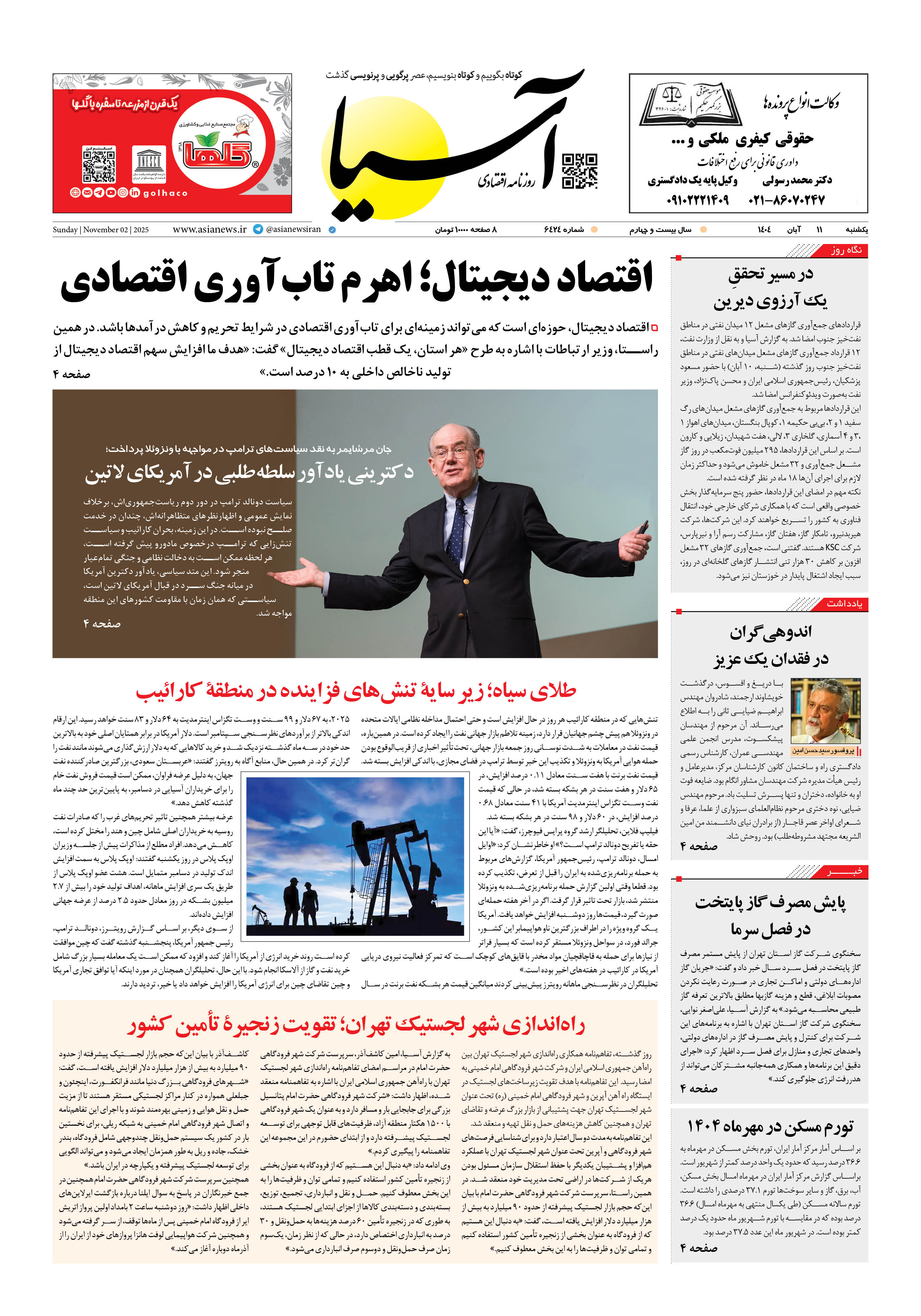 روزنامه اقتصادی آسیا - ۱۱ آبان ۱۴۰۴