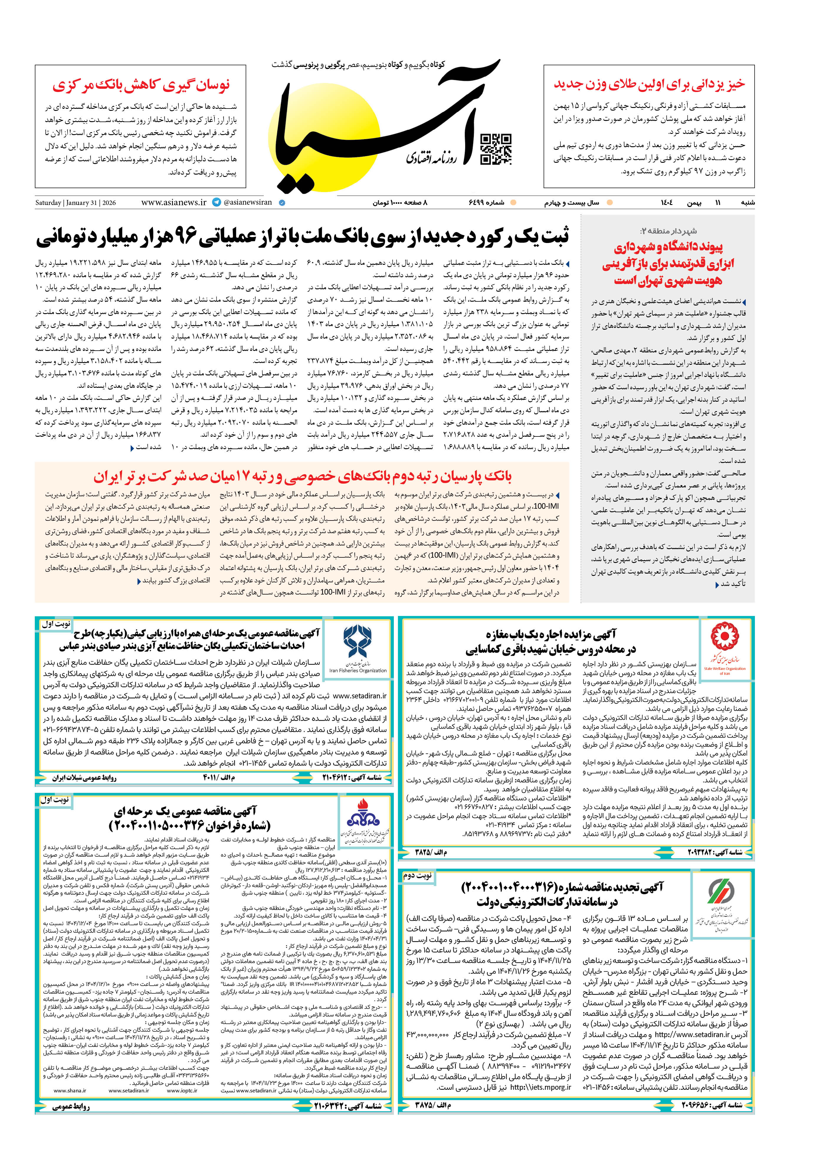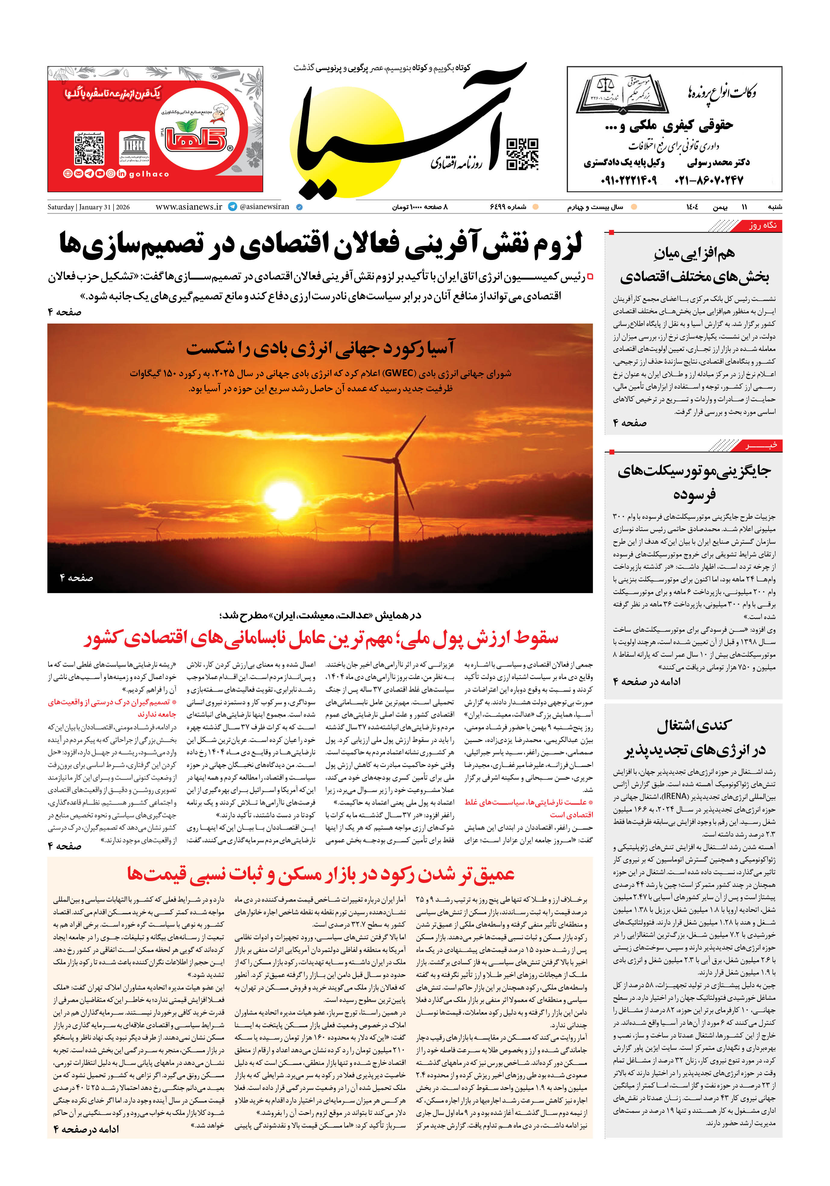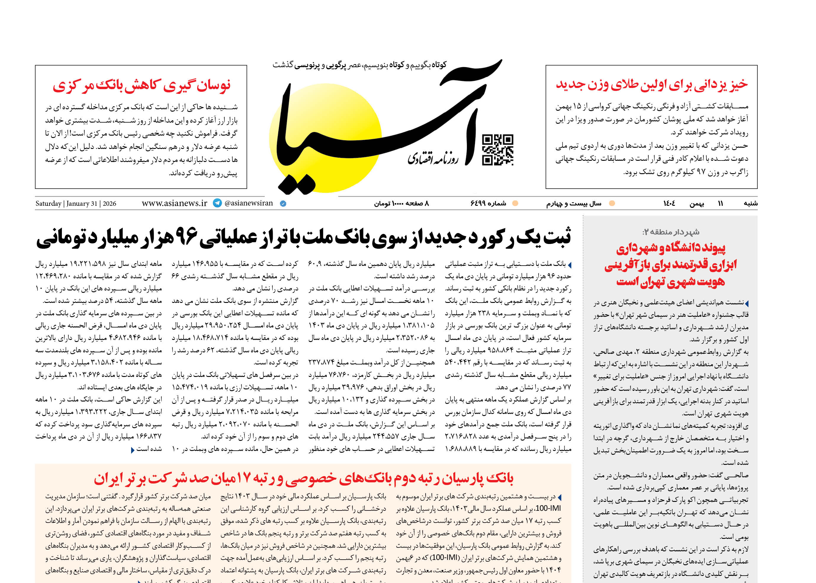 روزنامه اقتصادی آسیا - ۱۱ بهمن ۱۴۰۴