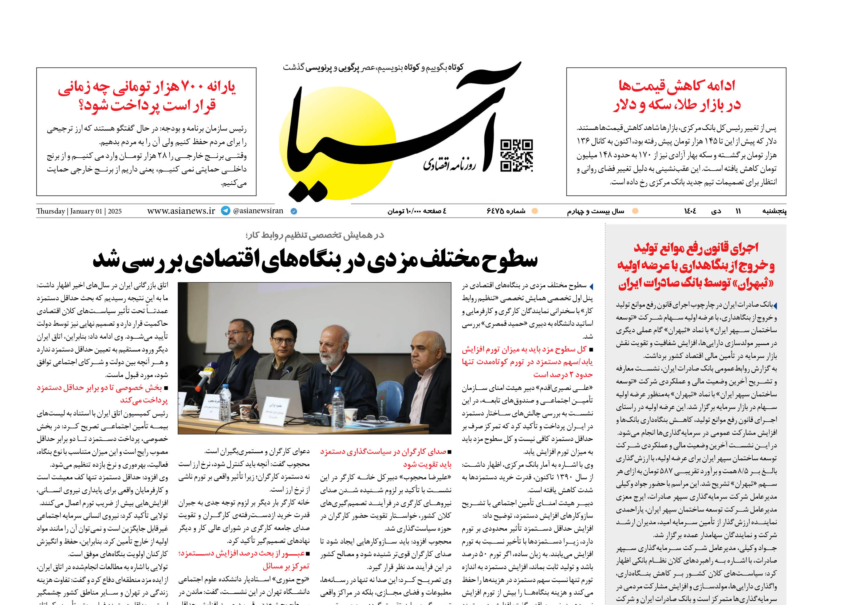 روزنامه اقتصادی آسیا - 11 دی 1404