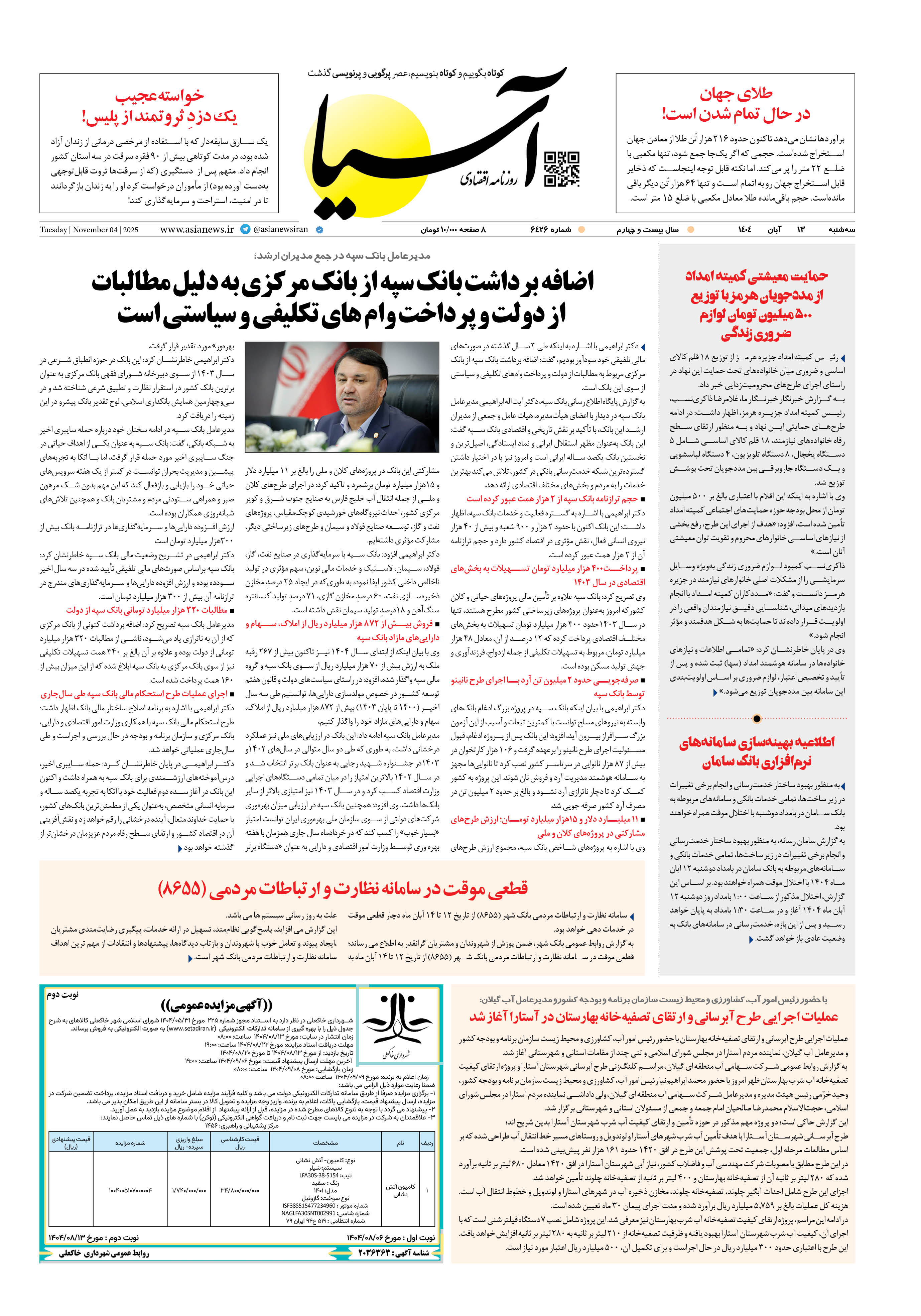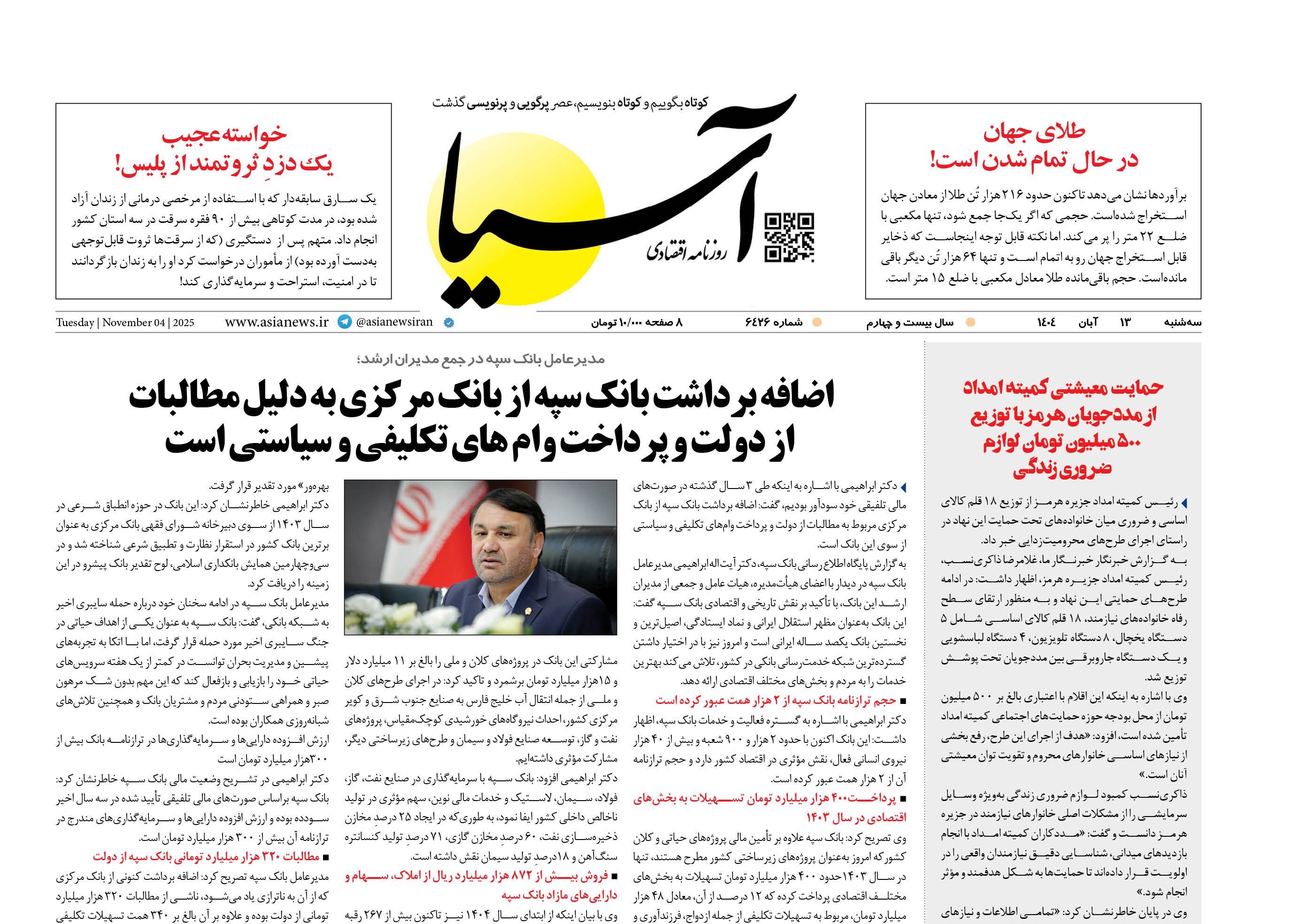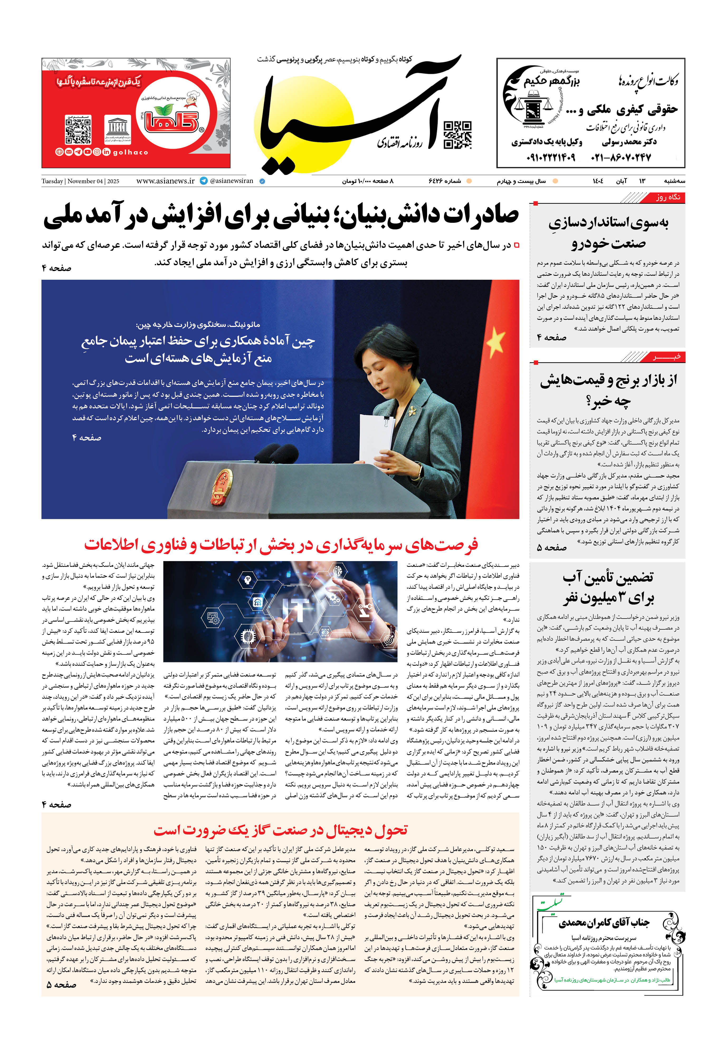 روزنامه اقتصادی آسیا - 12 آبان 1404