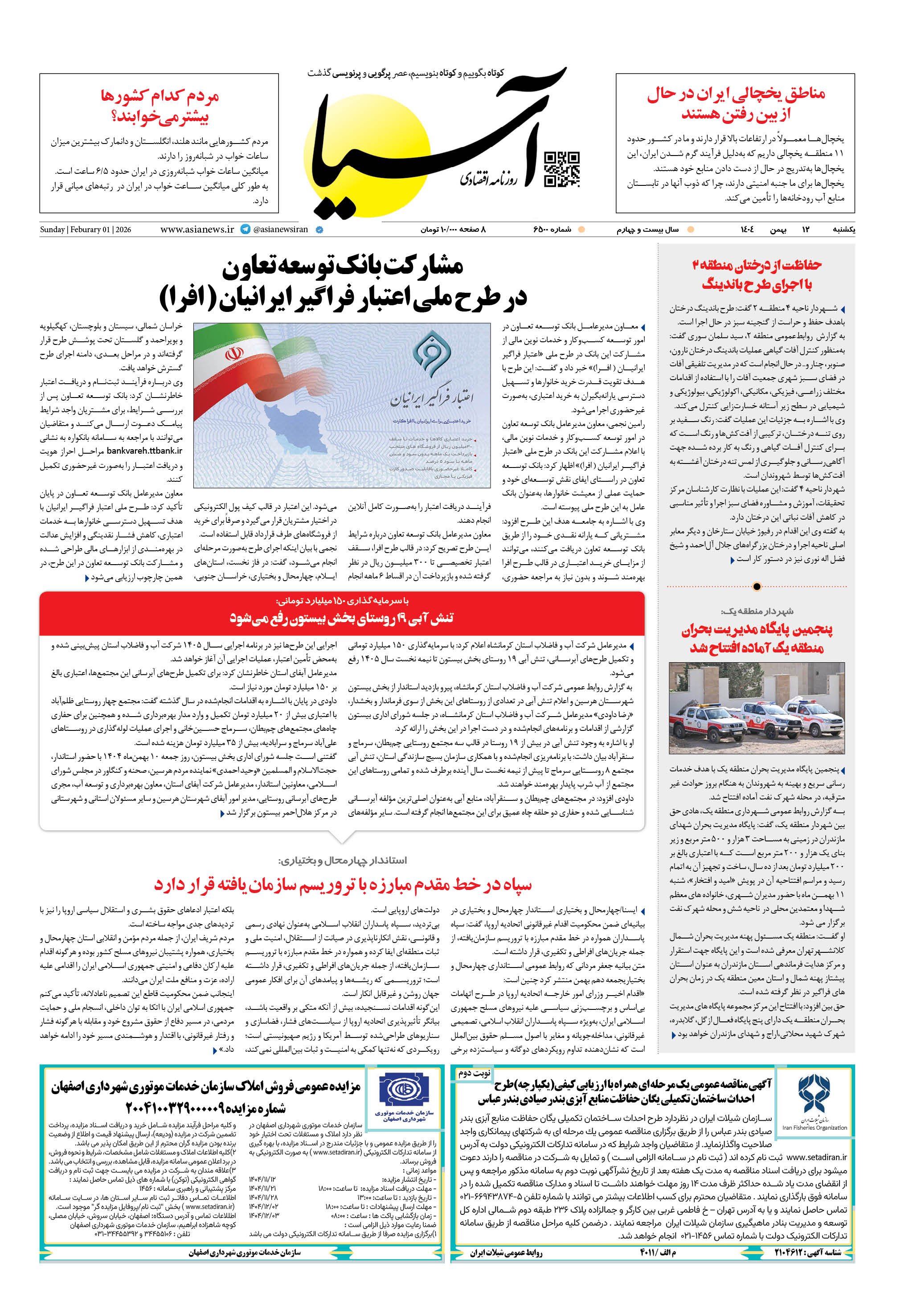 روزنامه اقتصادی آسیا - ۱۲ بهمن ۱۴۰۴