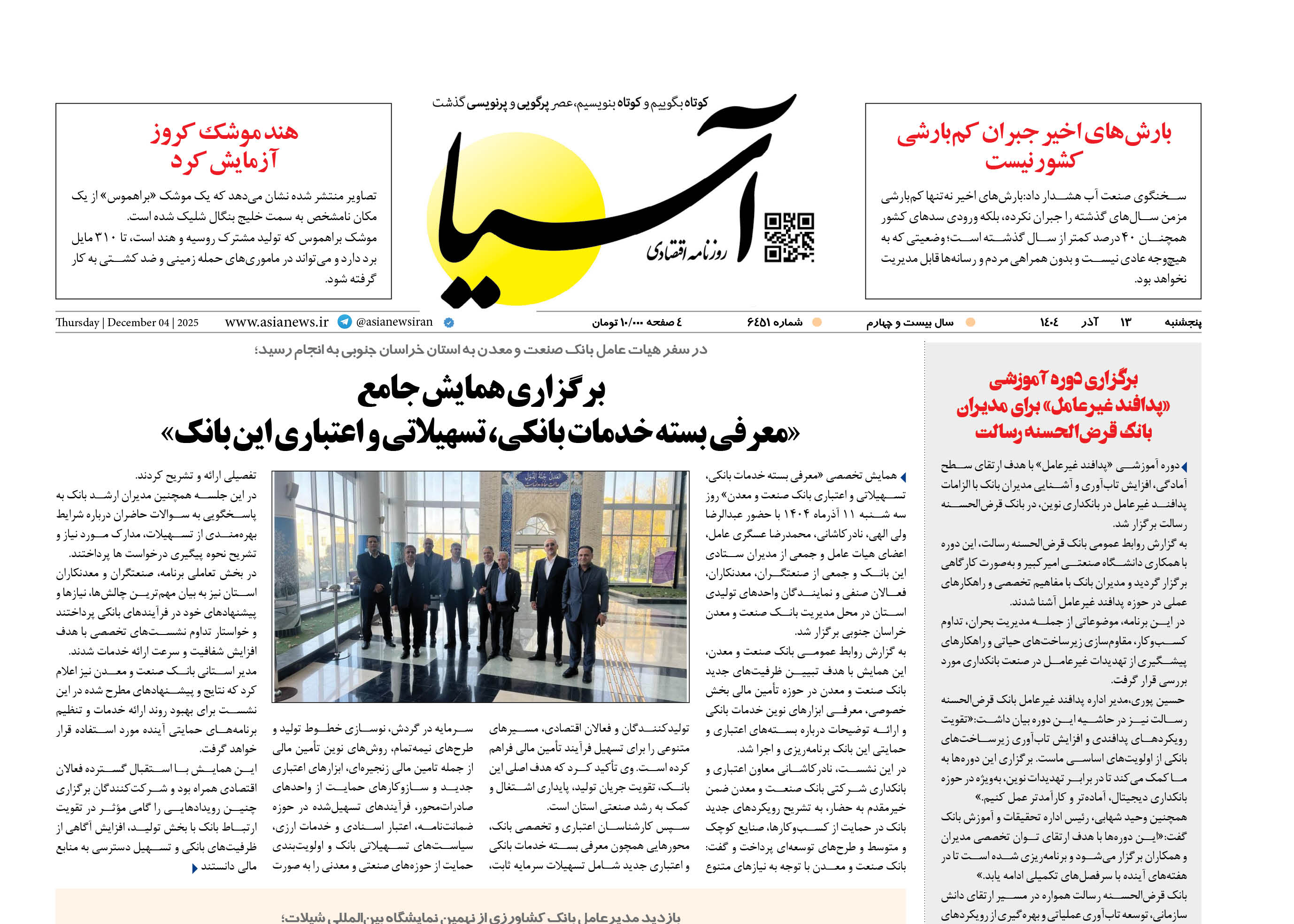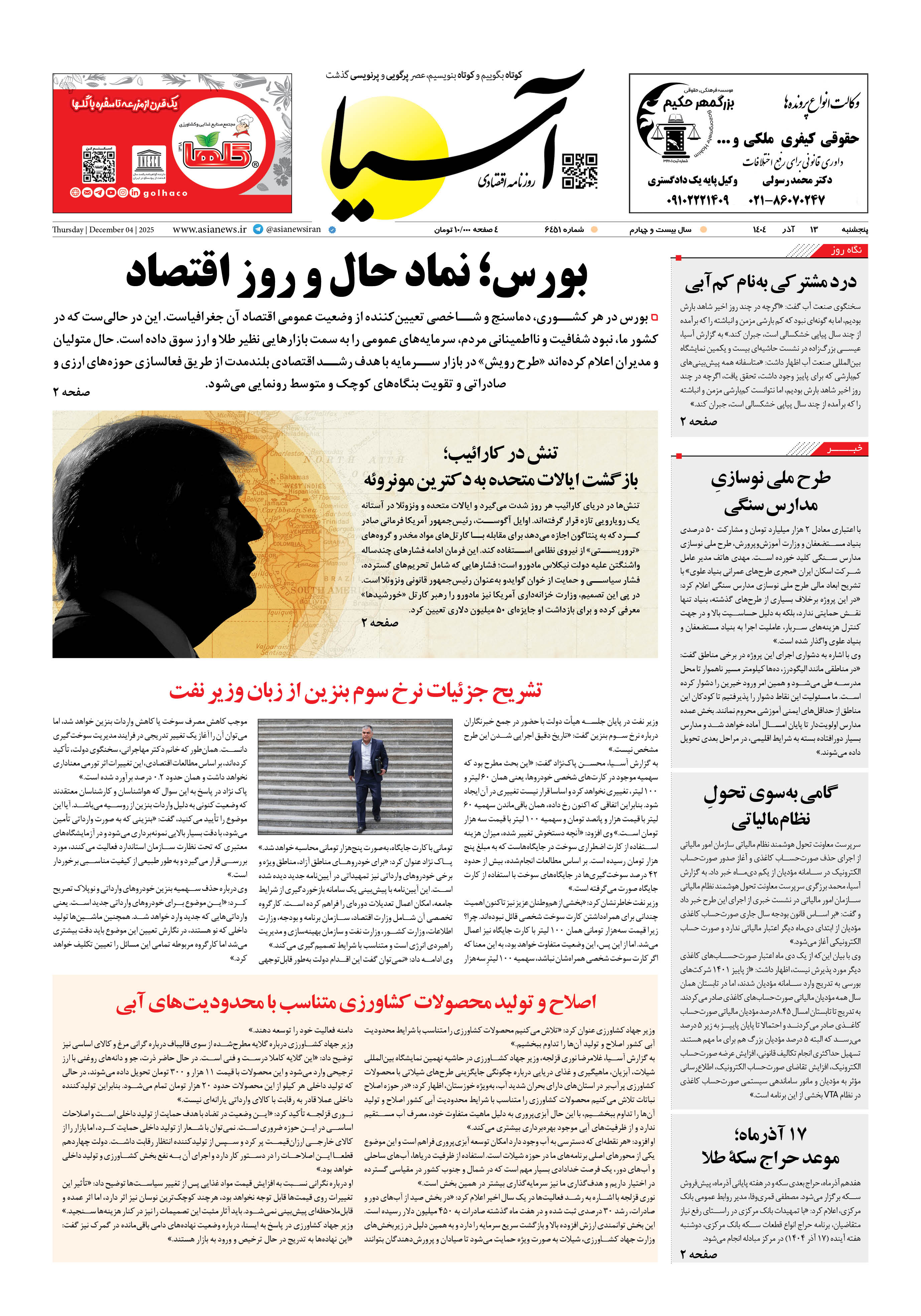 روزنامه اقتصادی آسیا - 13 آذر 1404