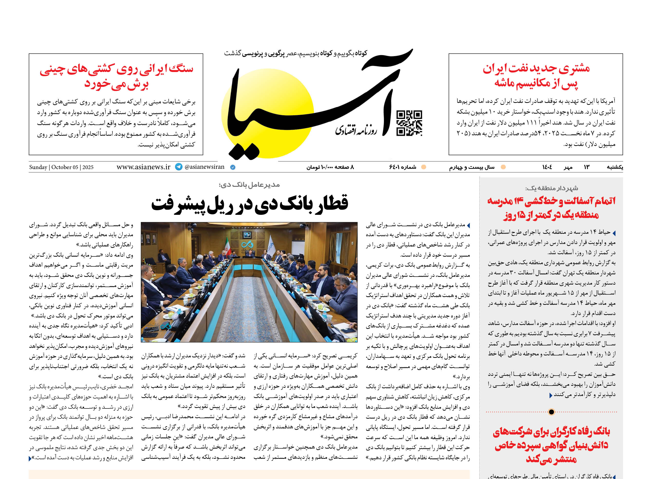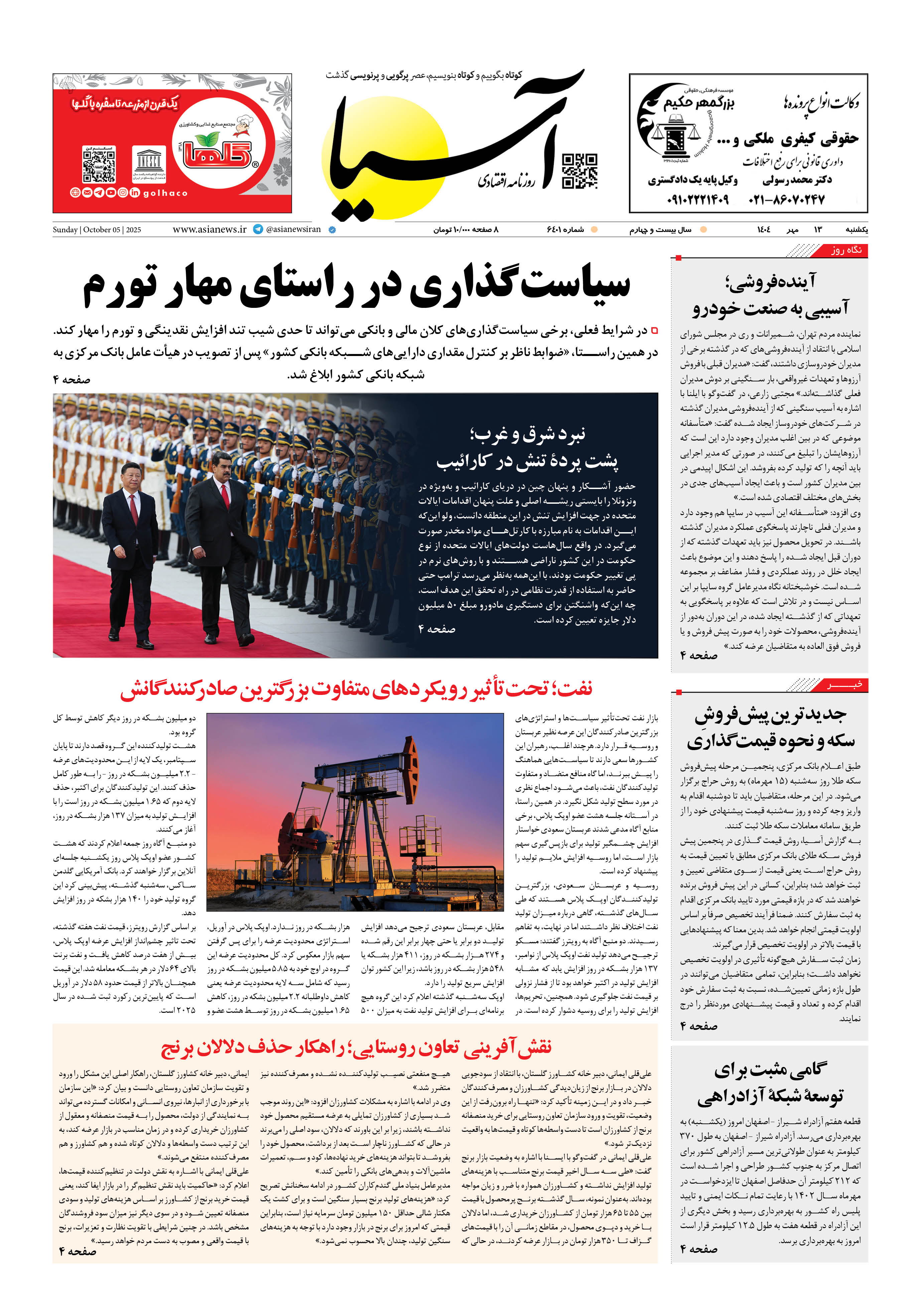 روزنامه اقتصادی آسیا - 13 مهر 1404