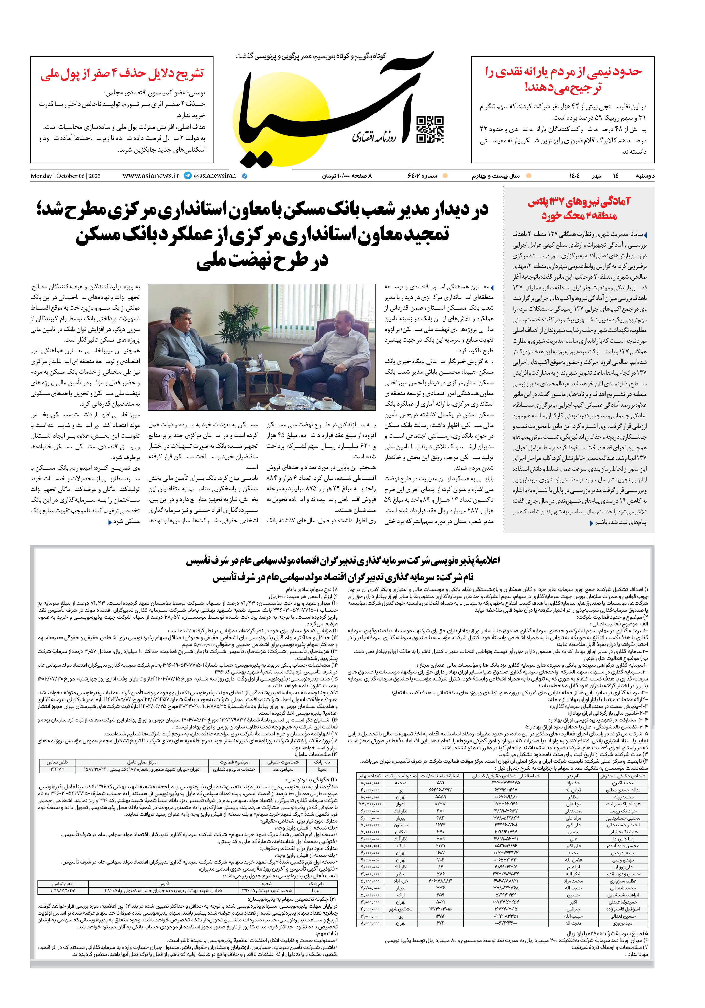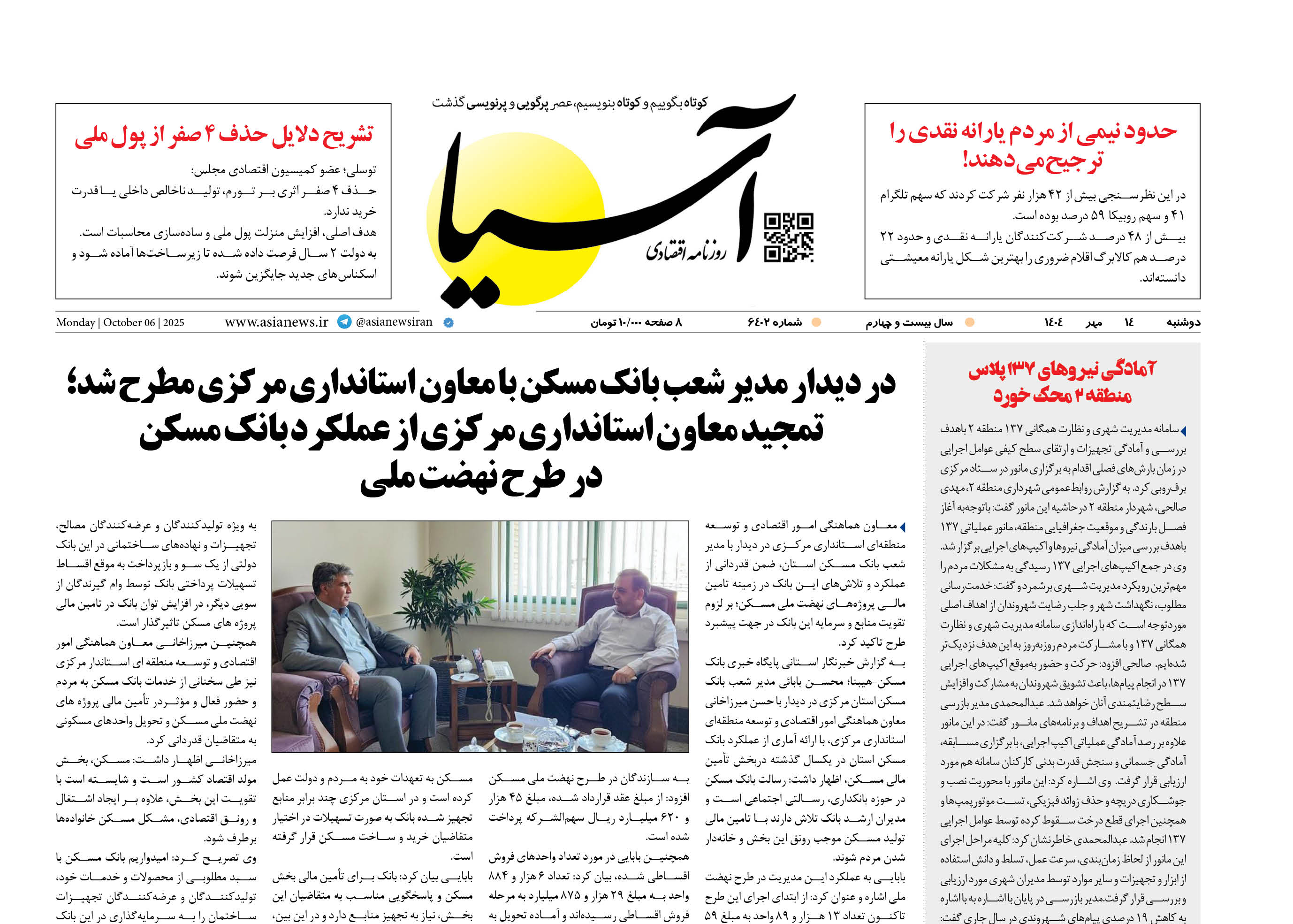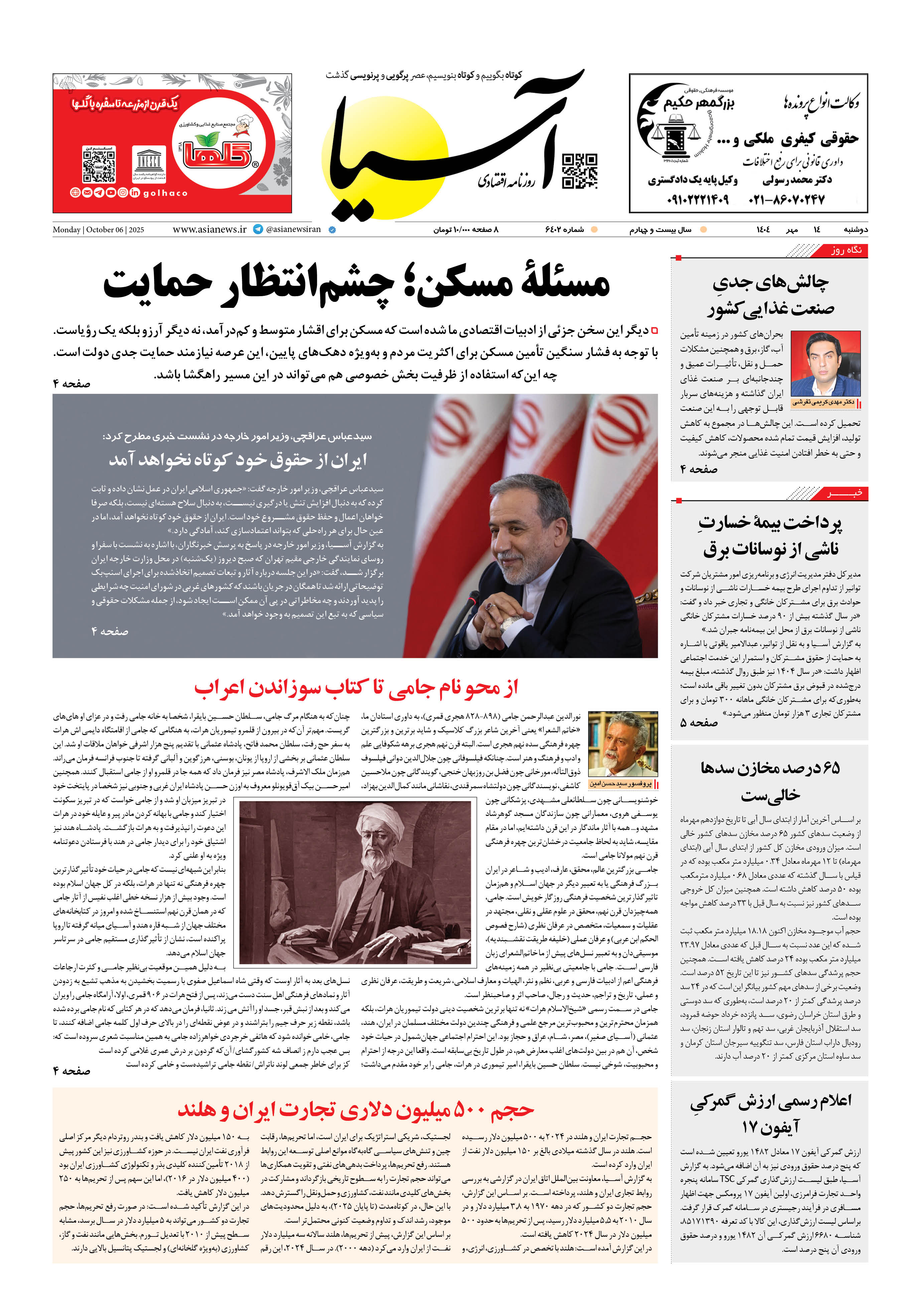 روزنامه اقتصادی آسیا - 14 مهر 1404