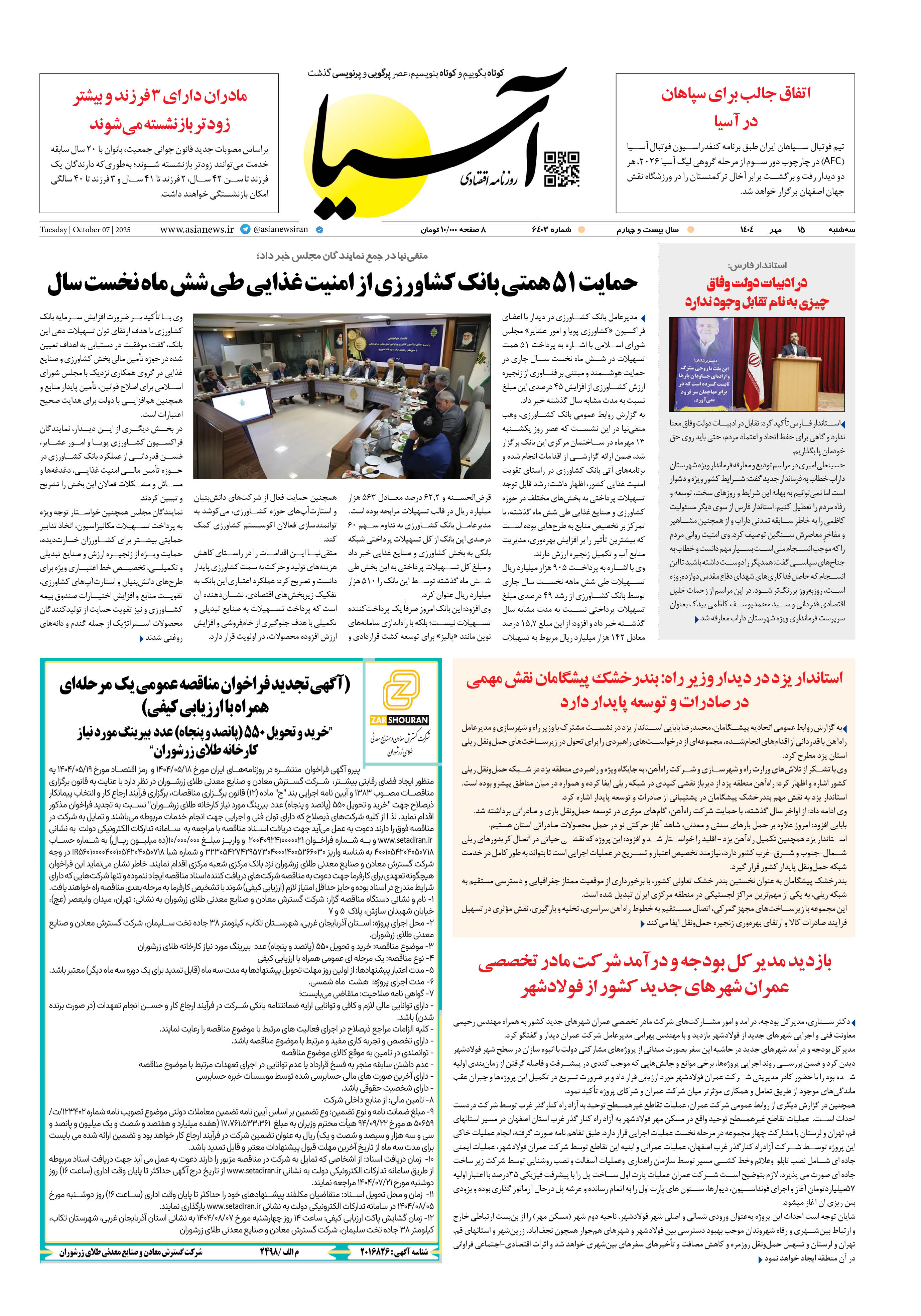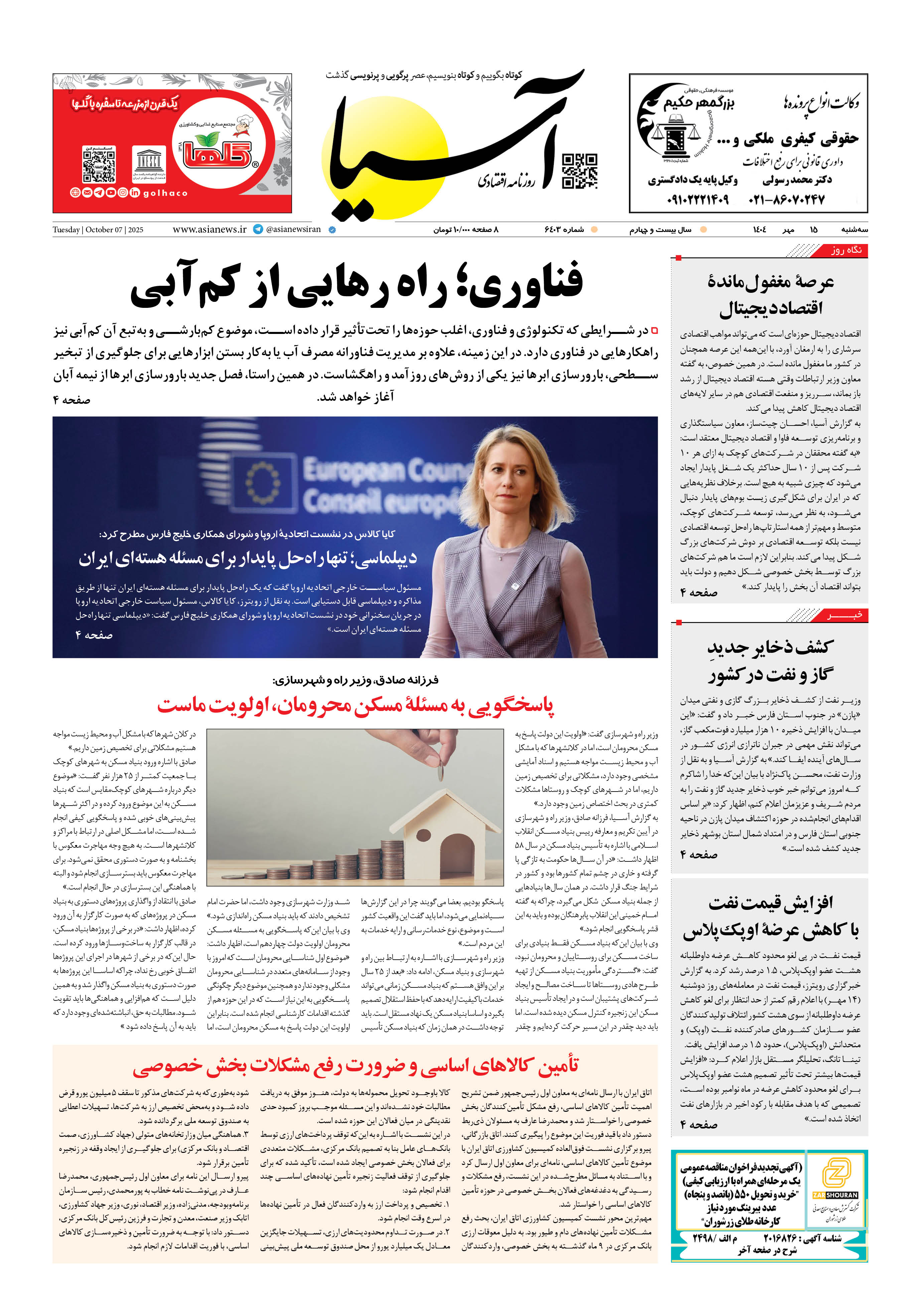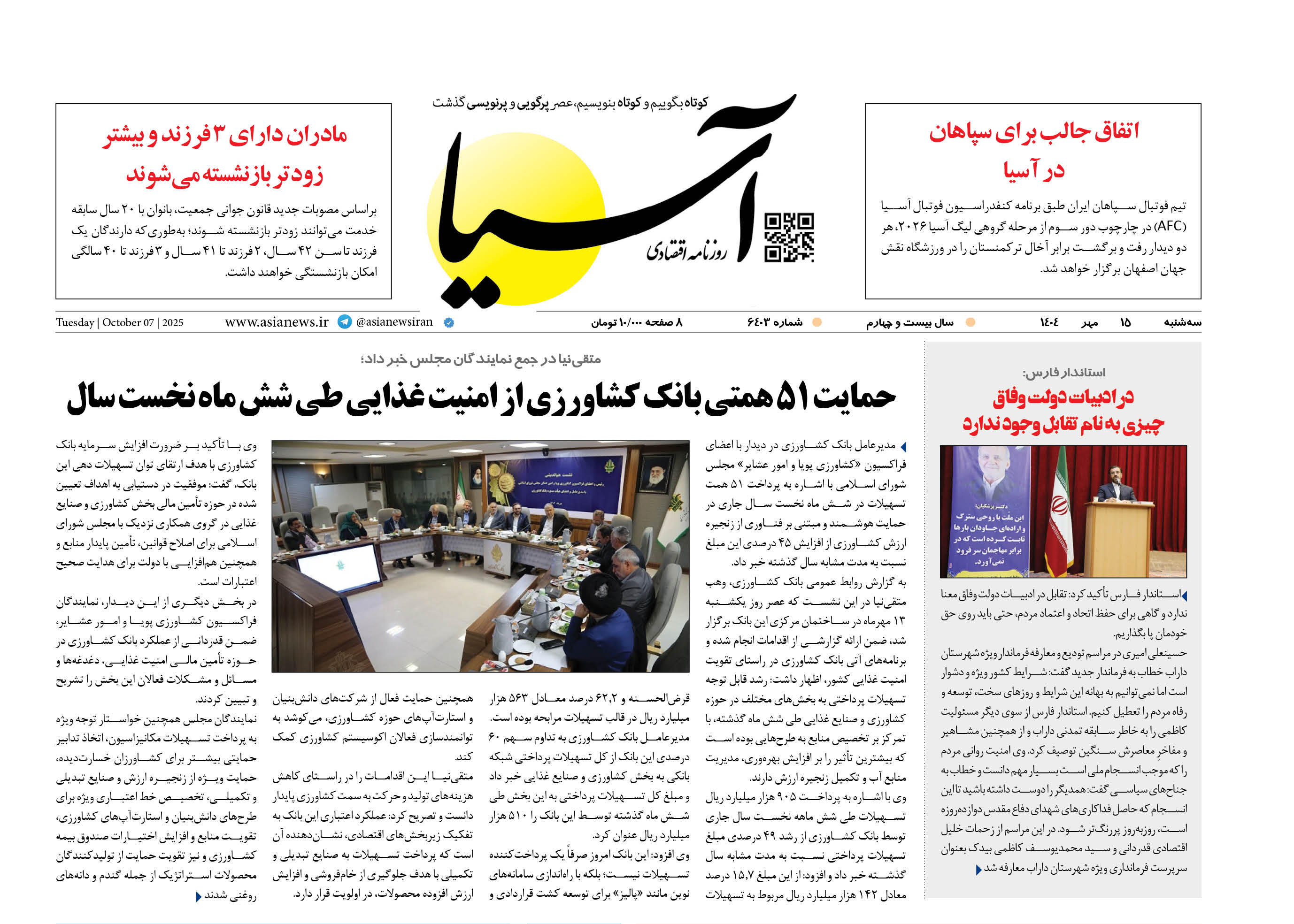 روزنامه اقتصادی آسیا - ۱۵ مهر ۱۴۰۴
