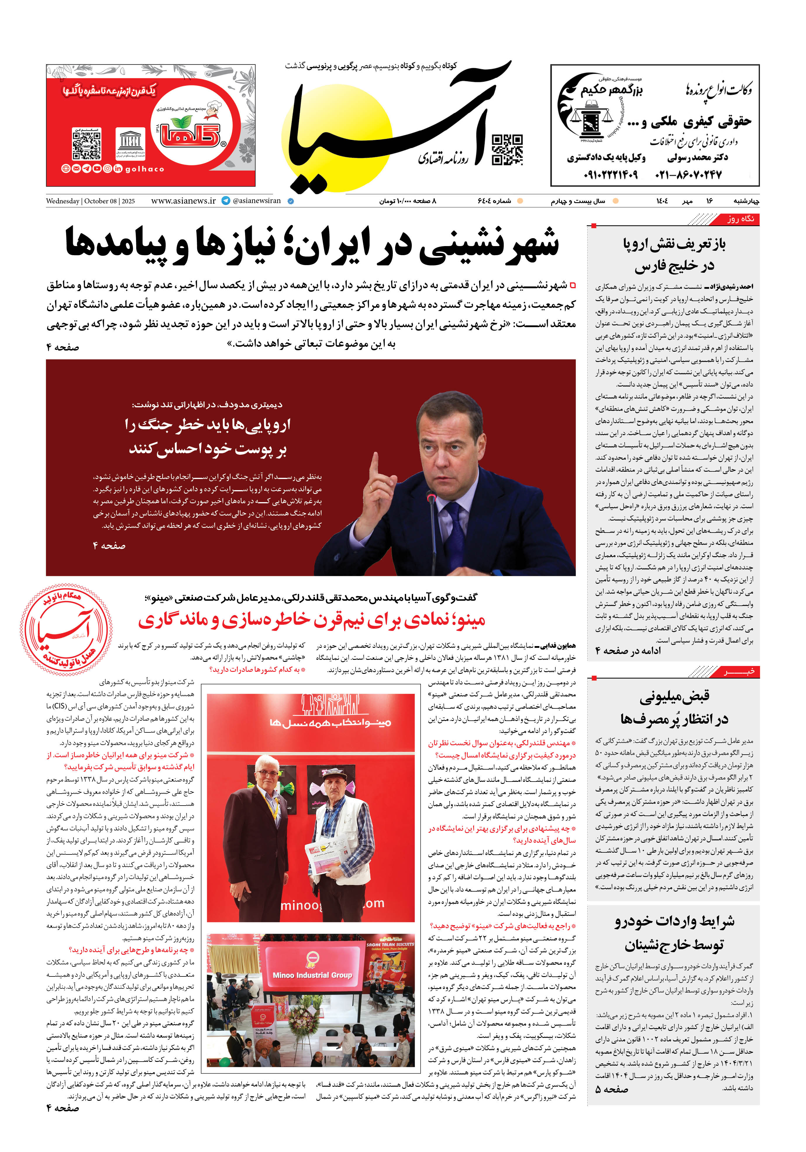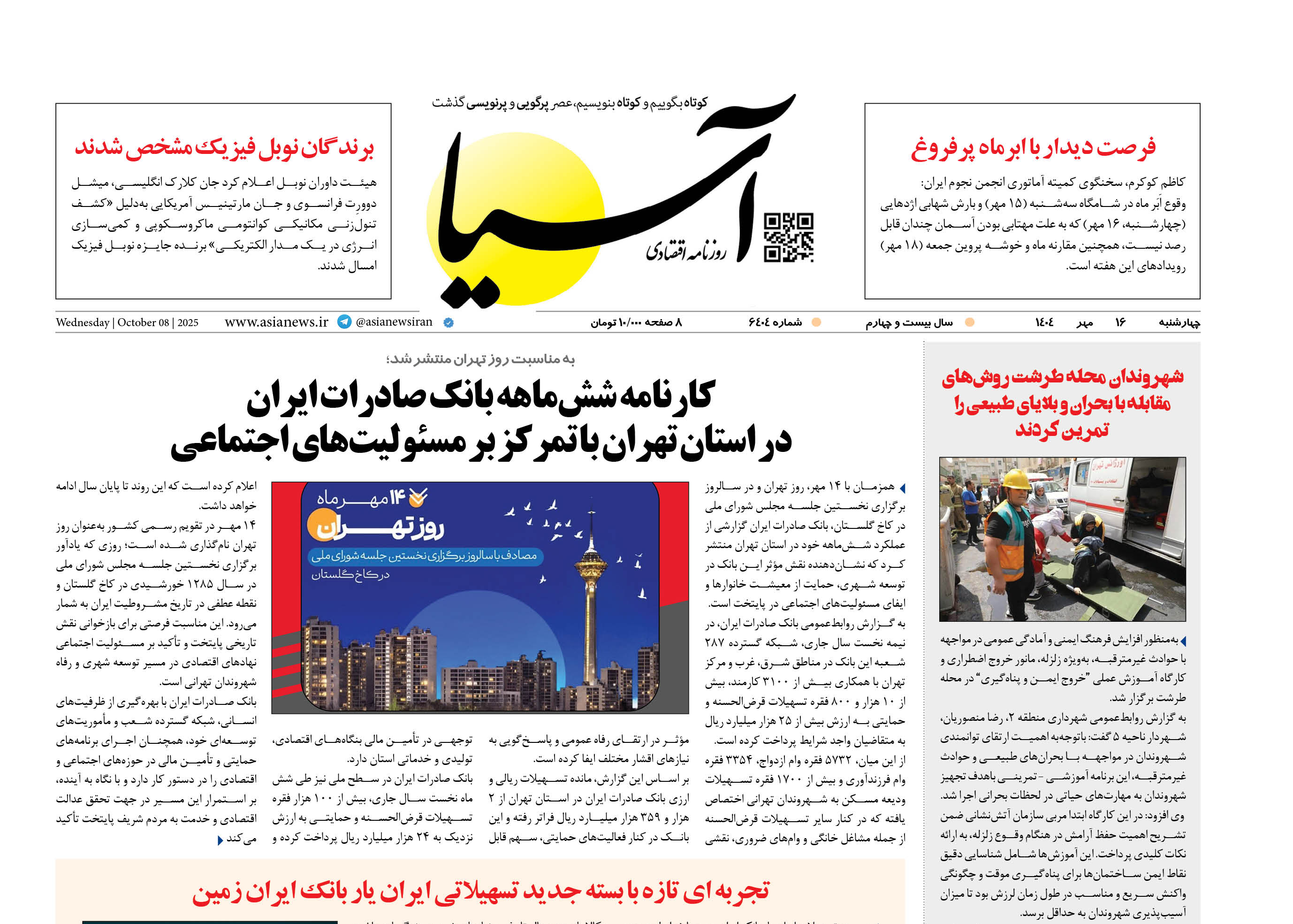 روزنامه اقتصادی آسیا - 16 مهر 1404