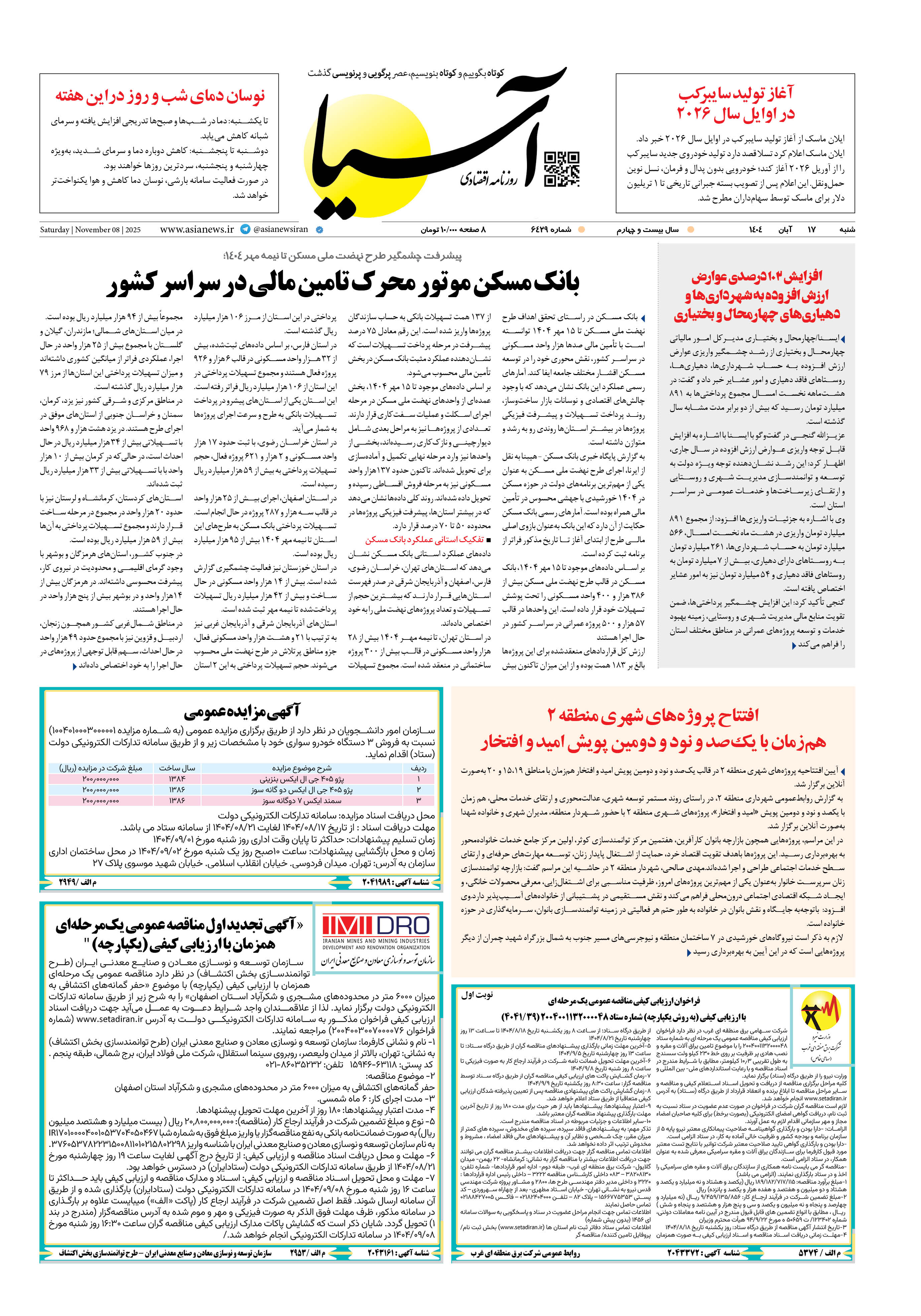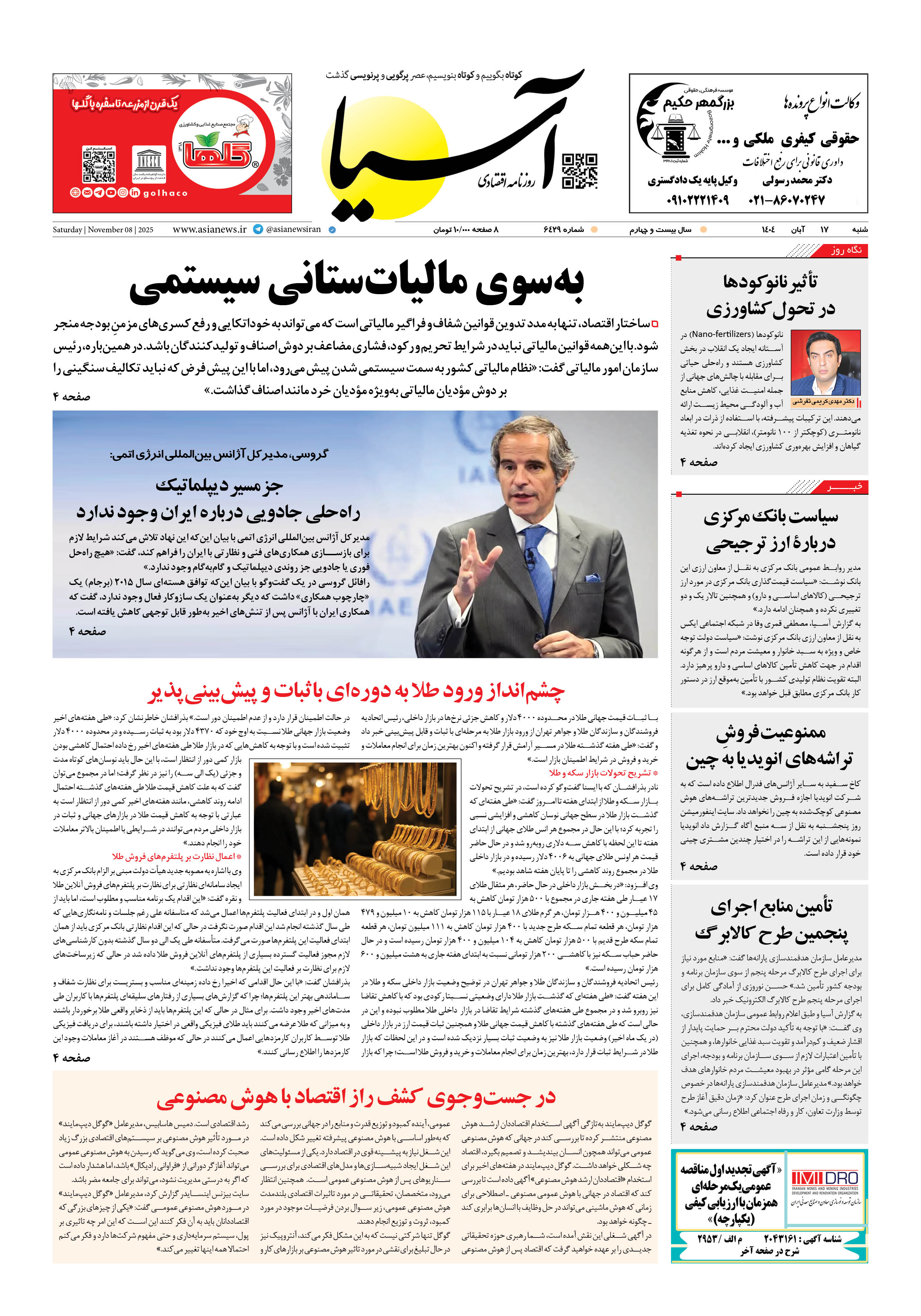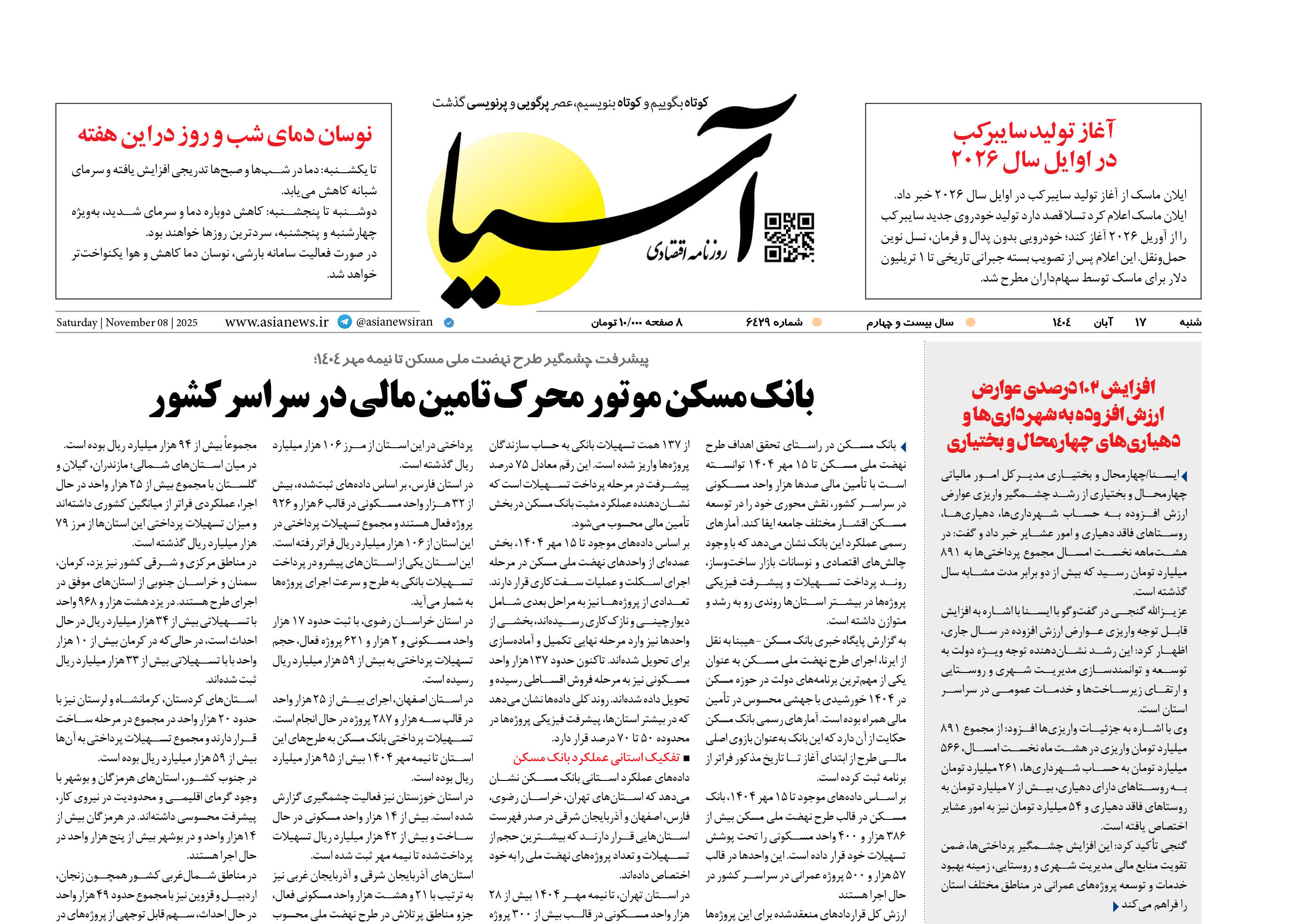 روزنامه اقتصادی آسیا - ۱۷ آبان ۱۴۰۴