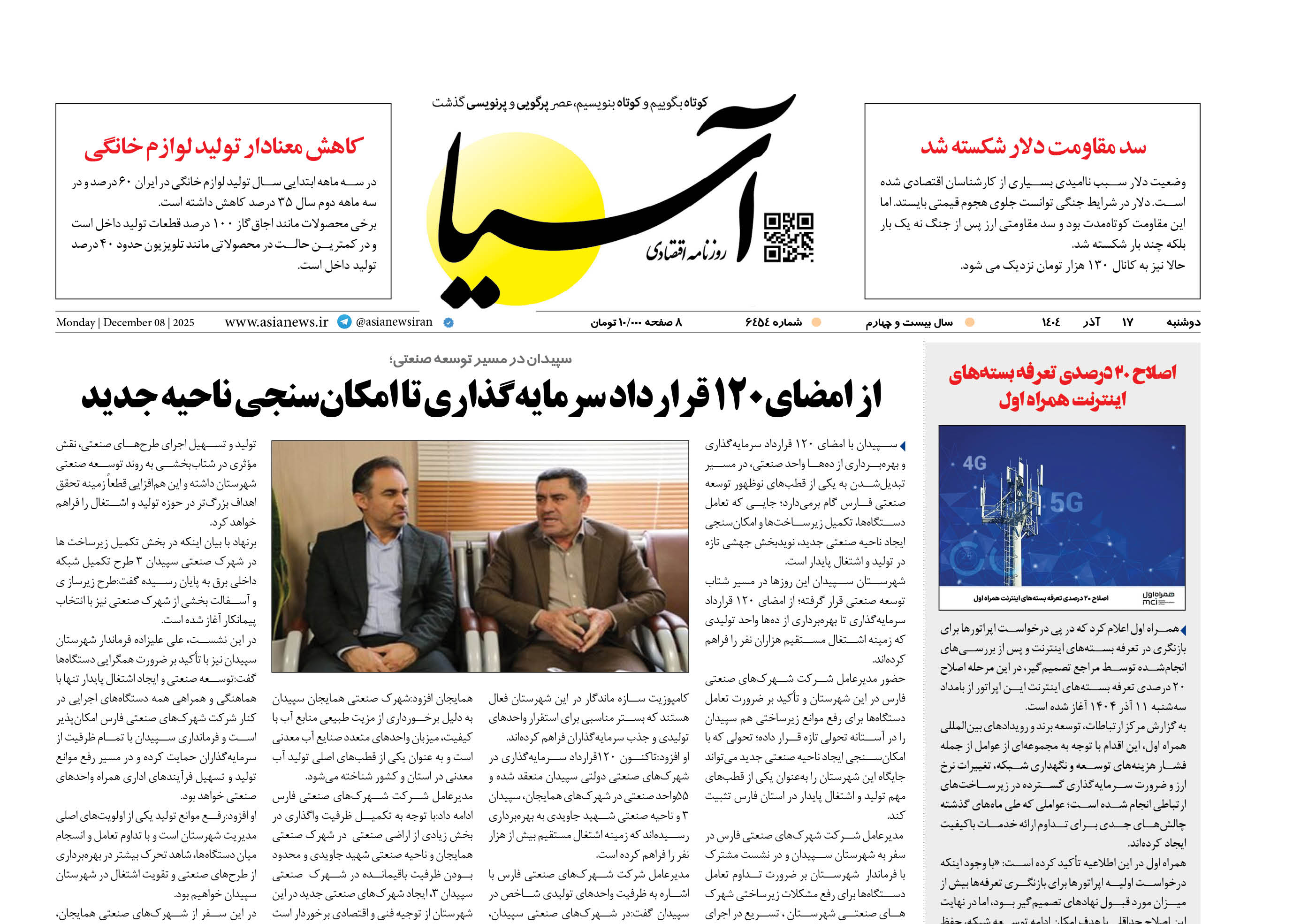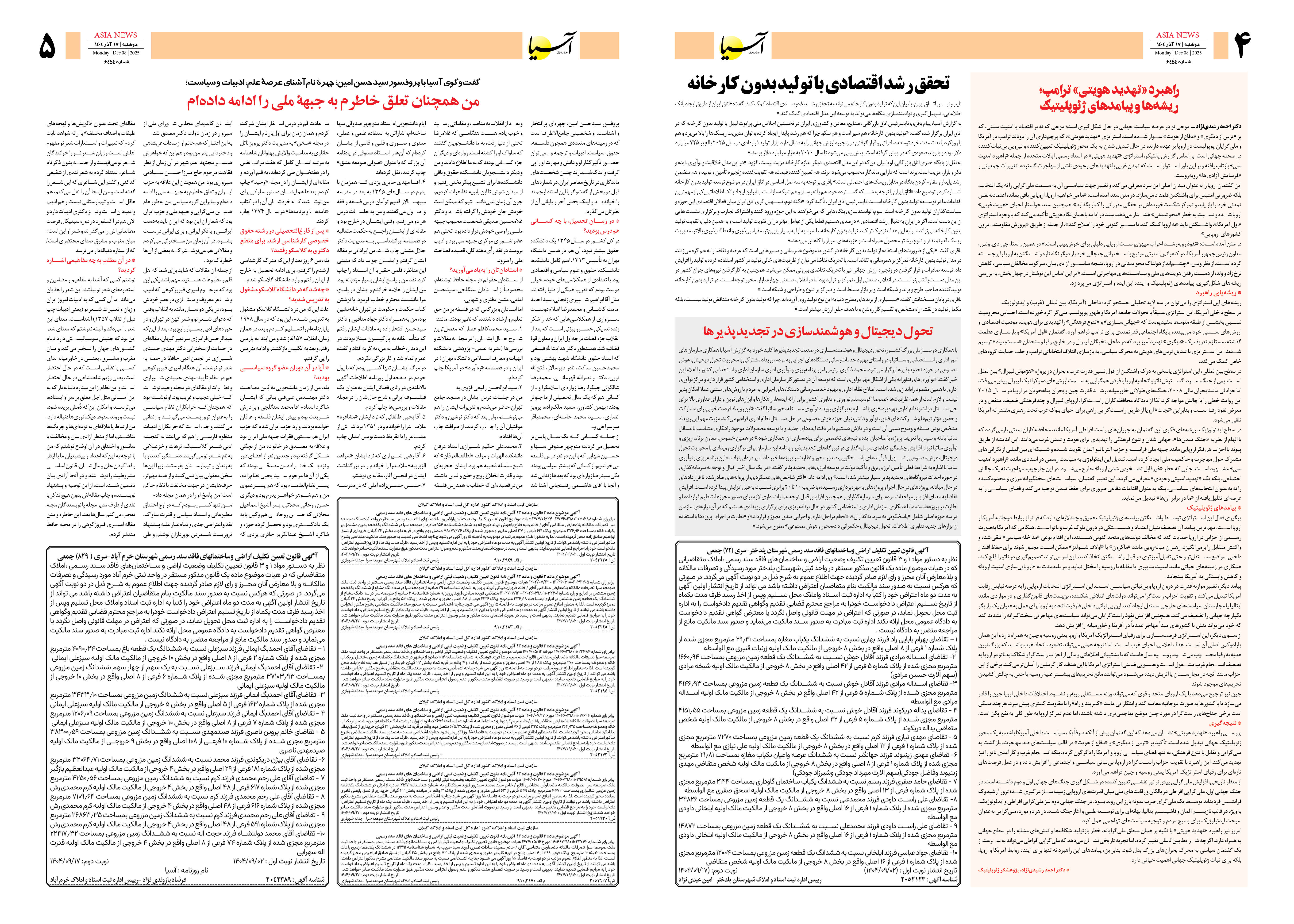 روزنامه اقتصادی آسیا - ۱۷ آذر ۱۴۰۴