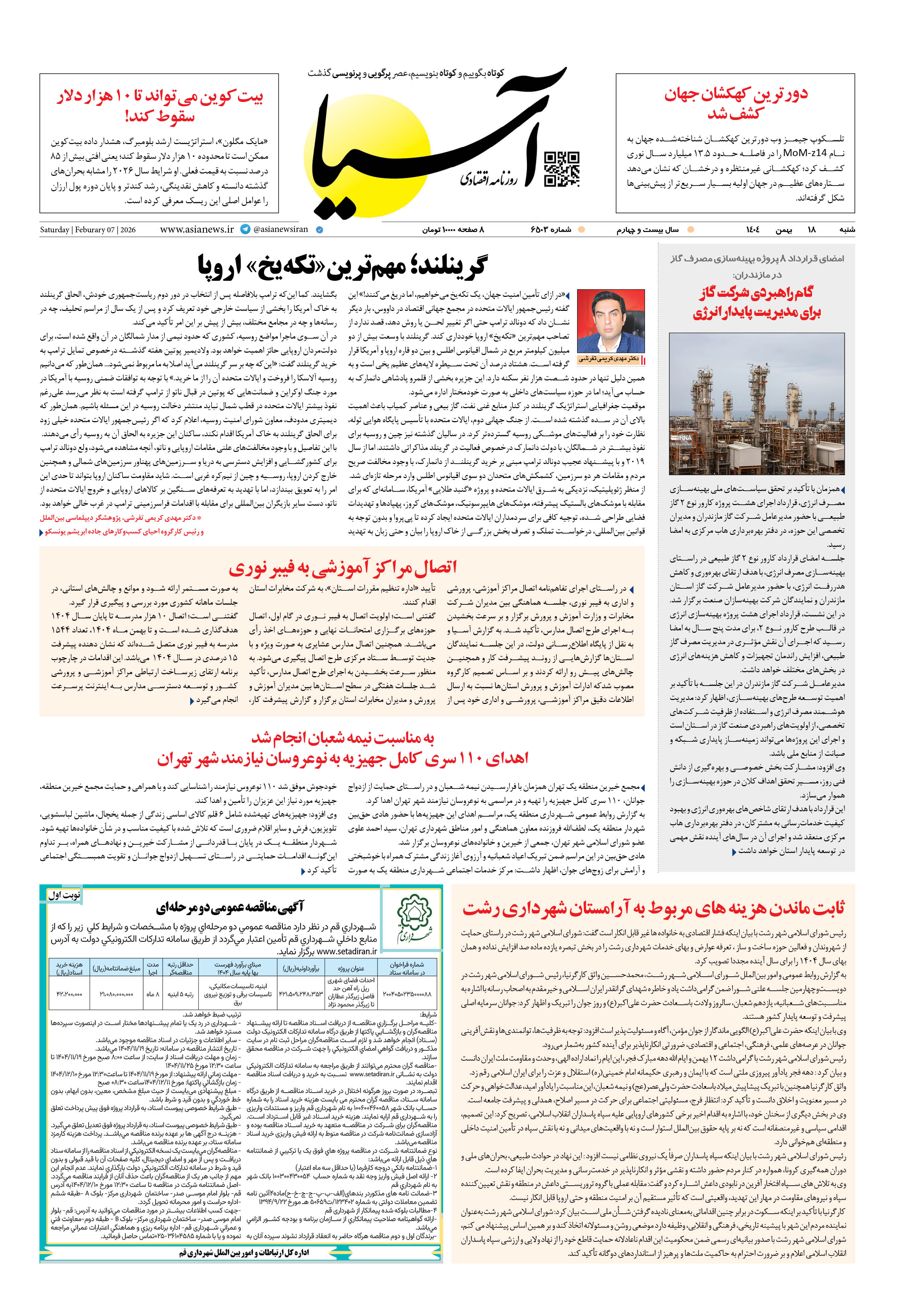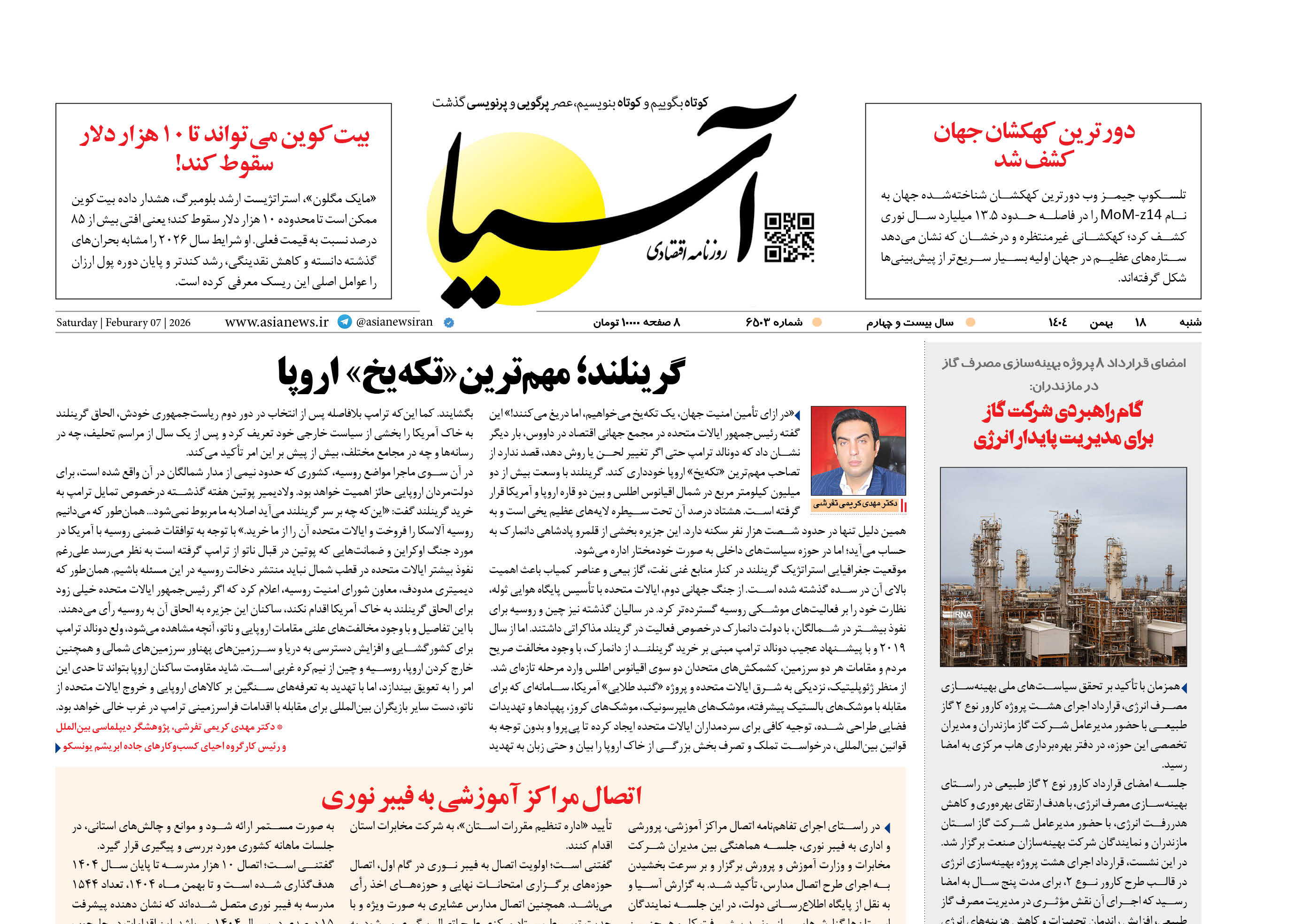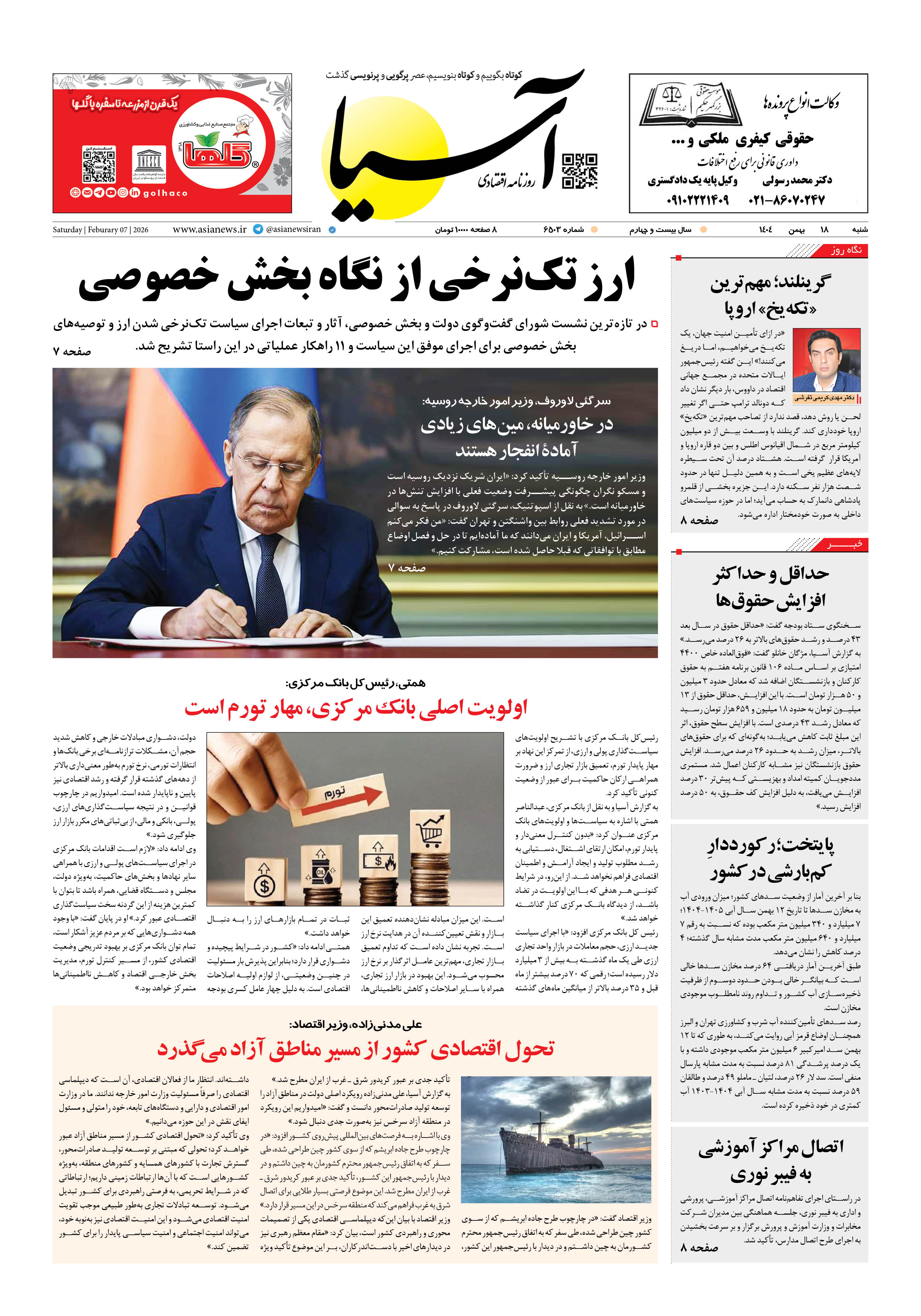 روزنامه اقتصادی آسیا - ۱۸ بهمن ۱۴۰۴