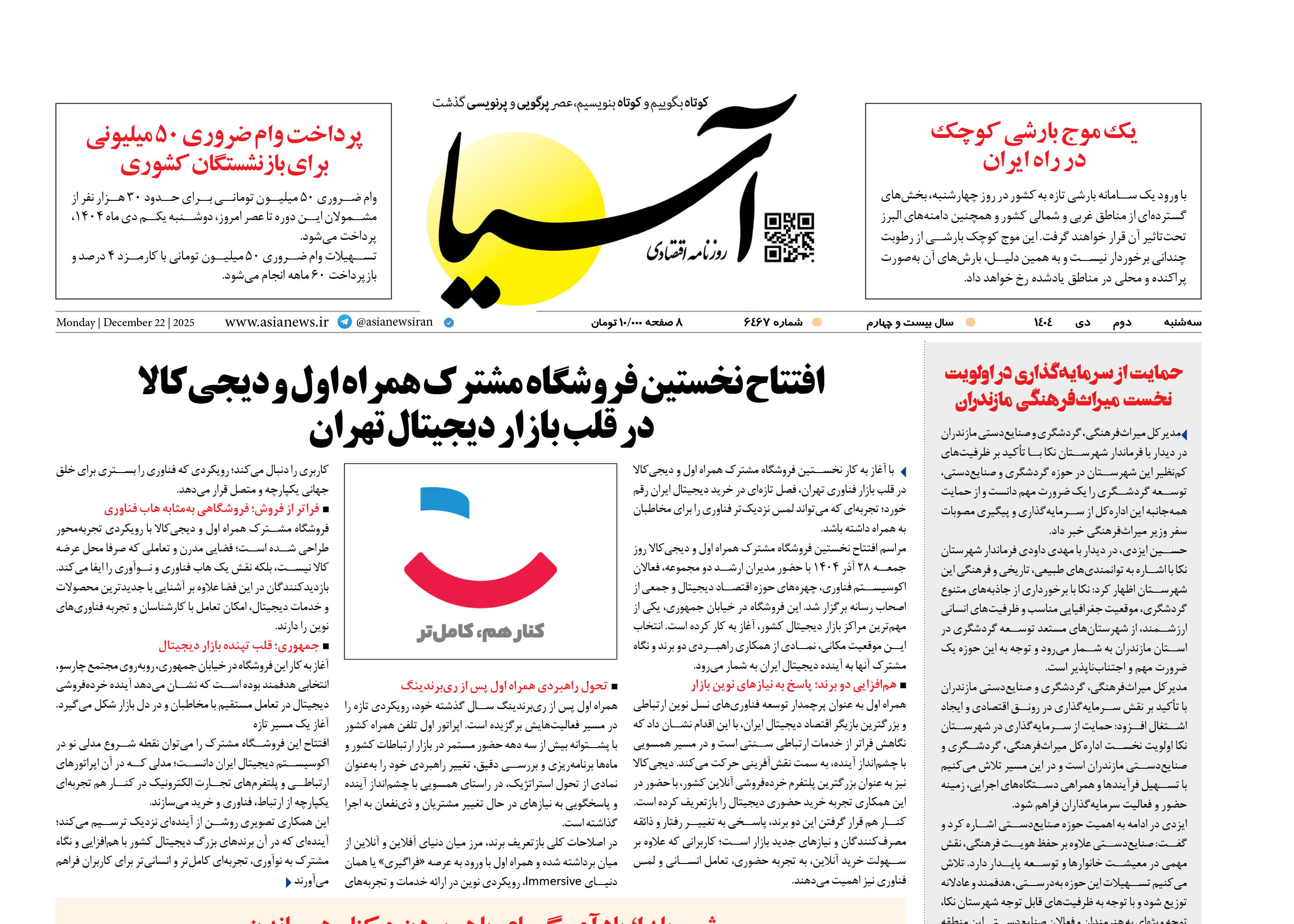 روزنامه اقتصادی آسیا - 2 دی 1404