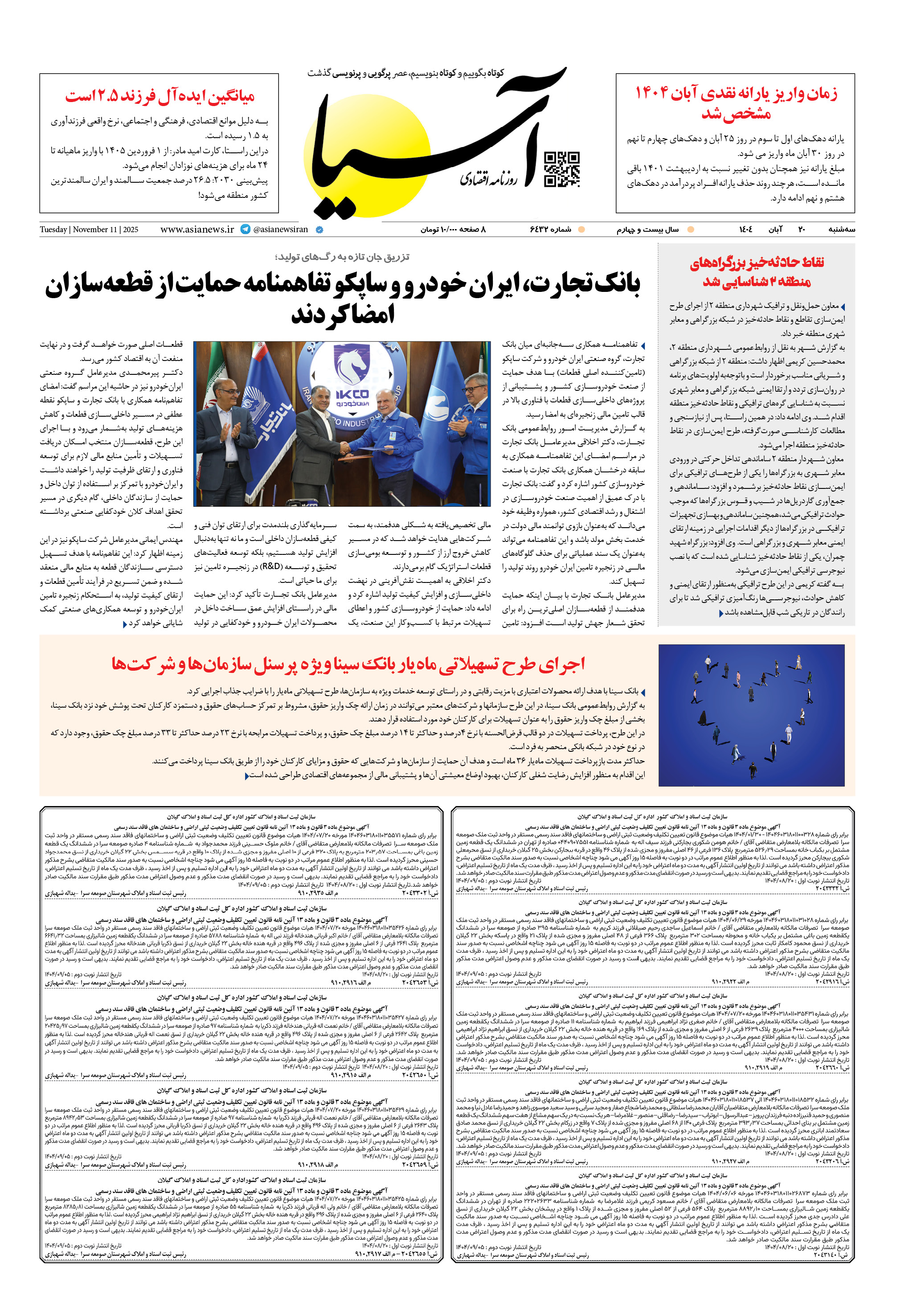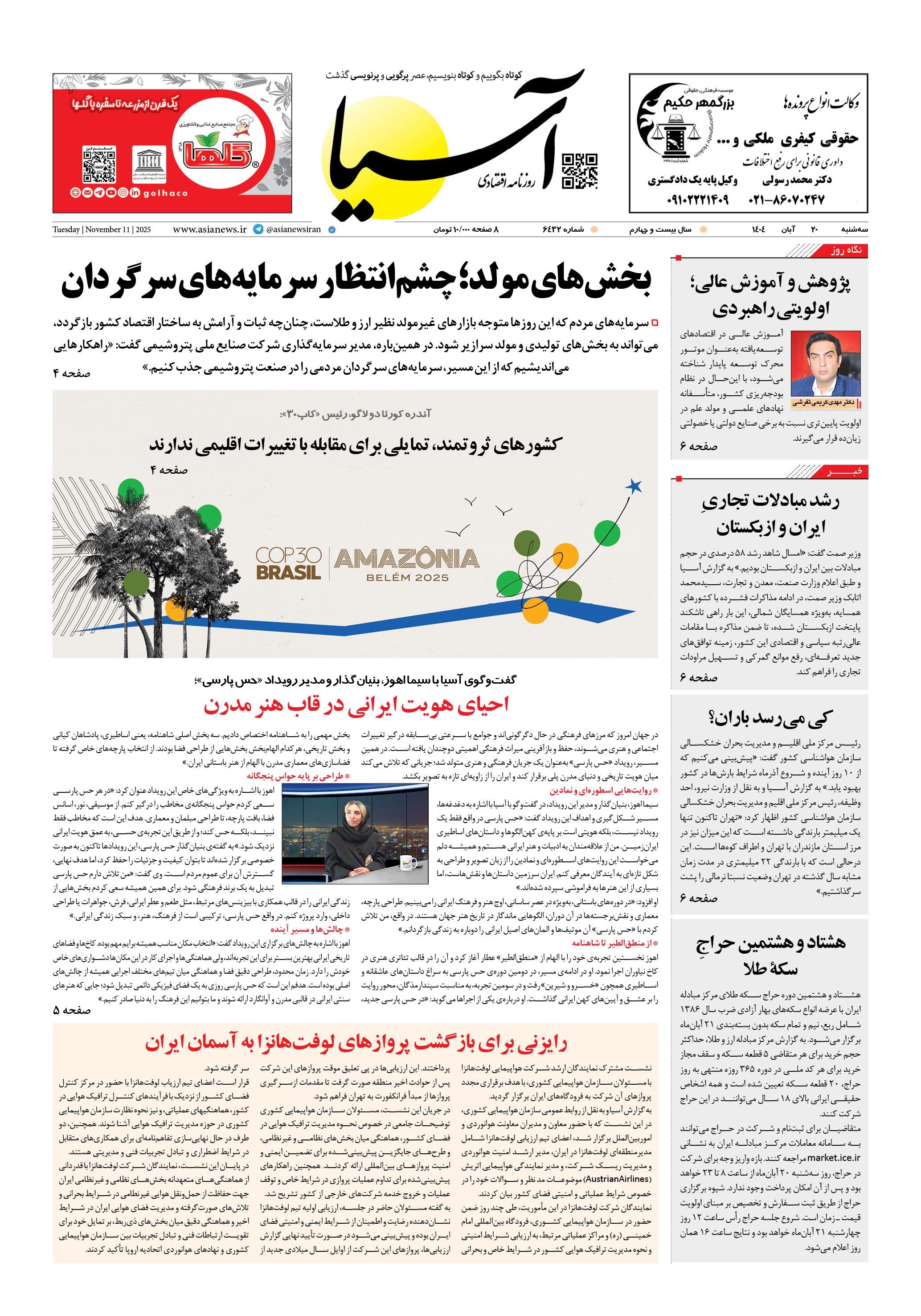 روزنامه اقتصادی آسیا - ۲۰ آبان ۱۴۰۴