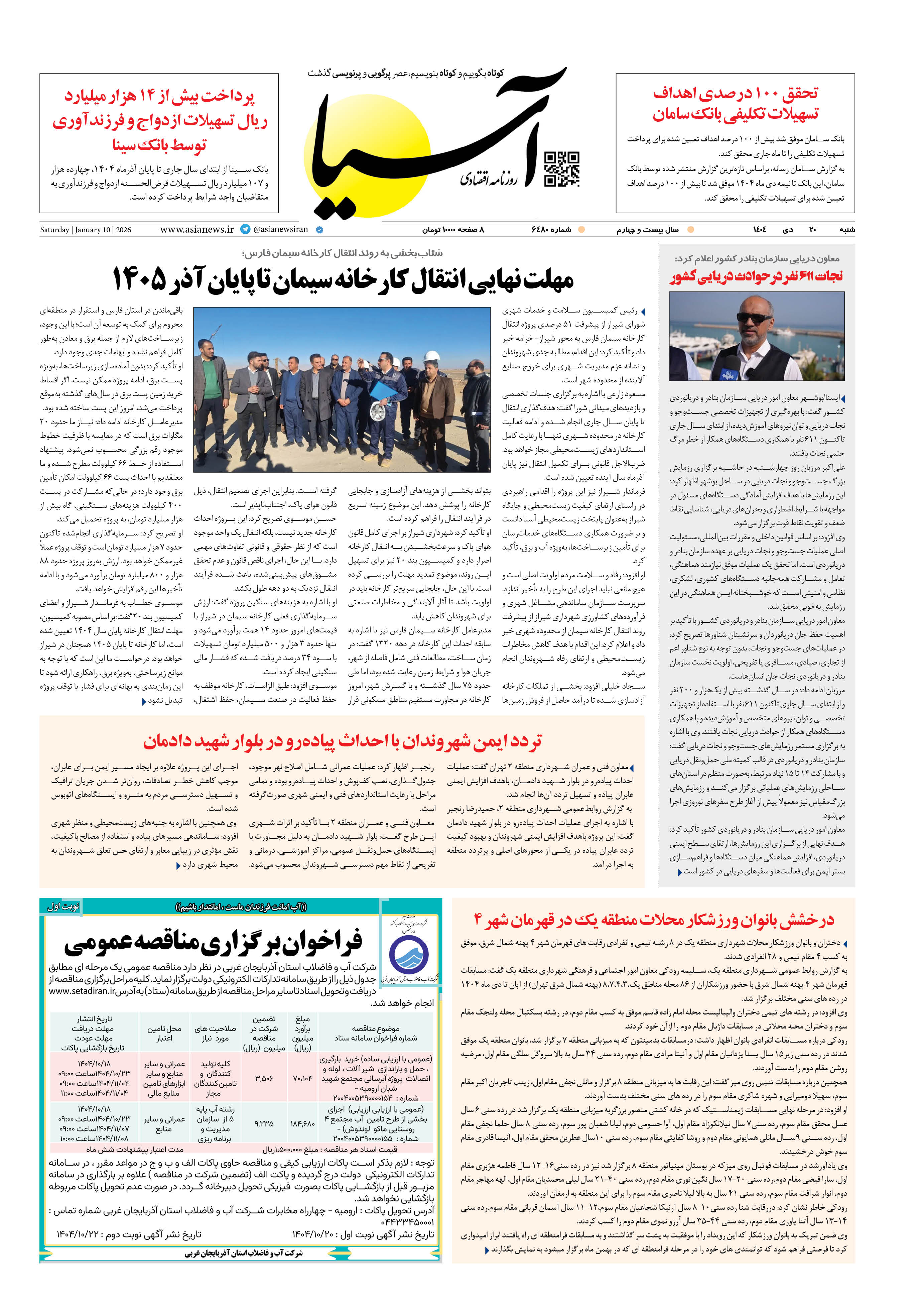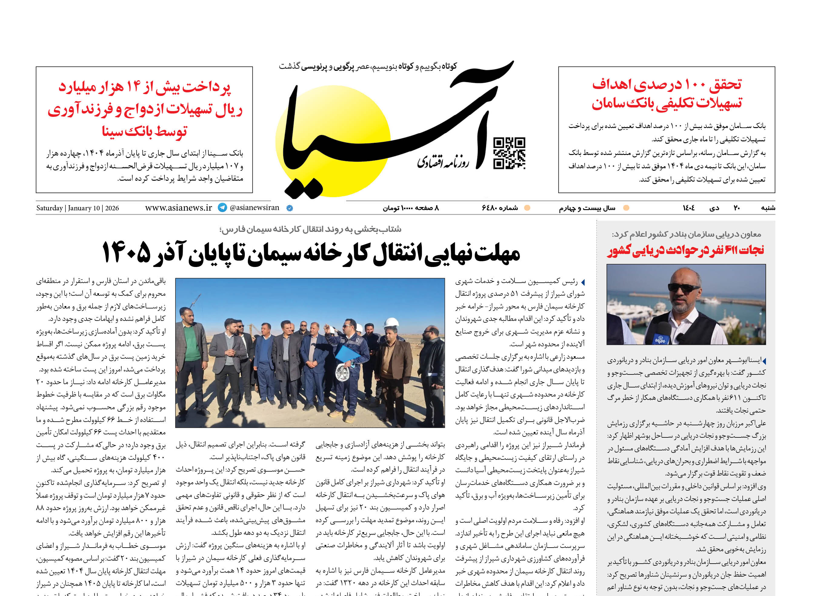 روزنامه اقتصادی آسیا - ۲۰ دی 1404
