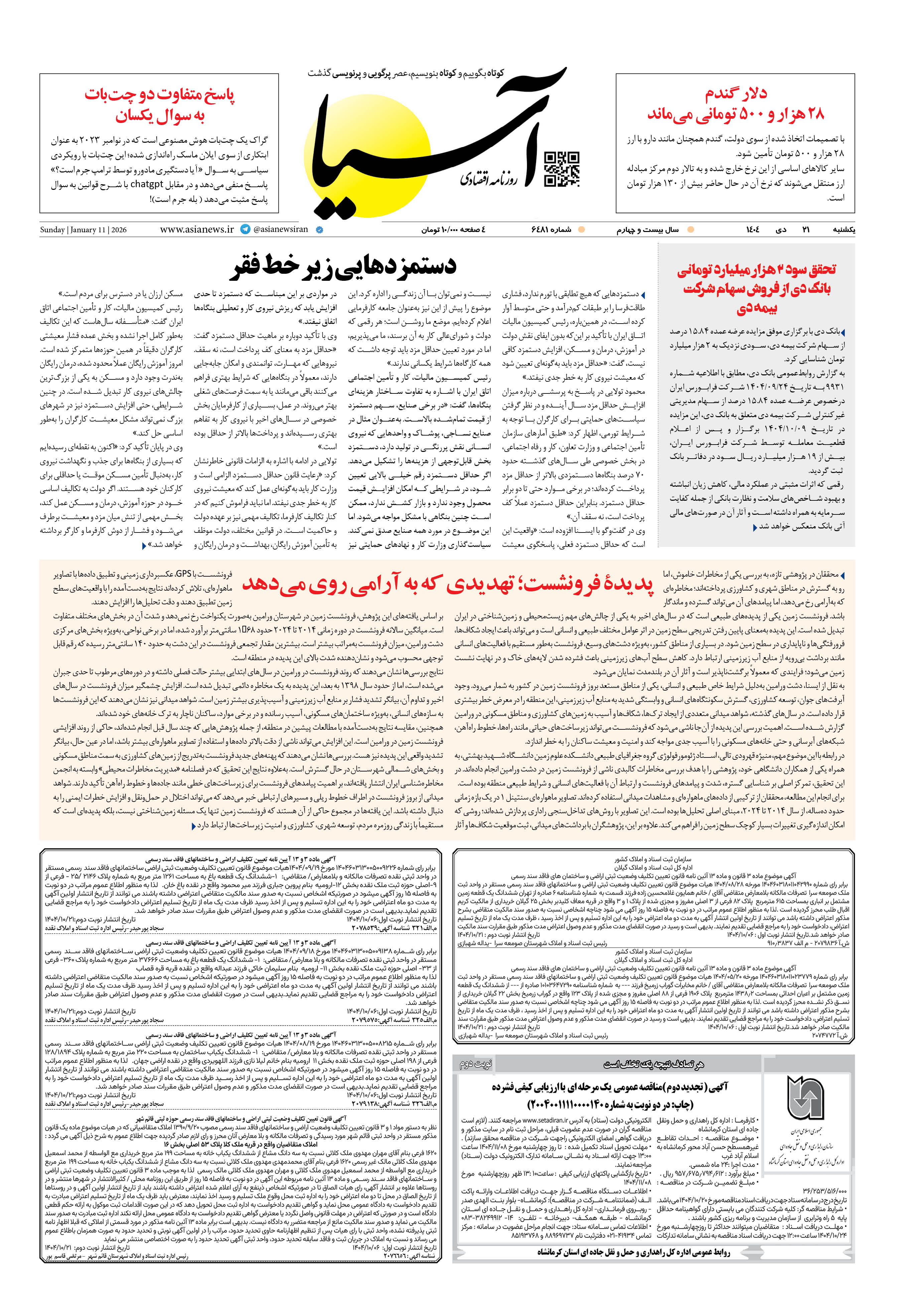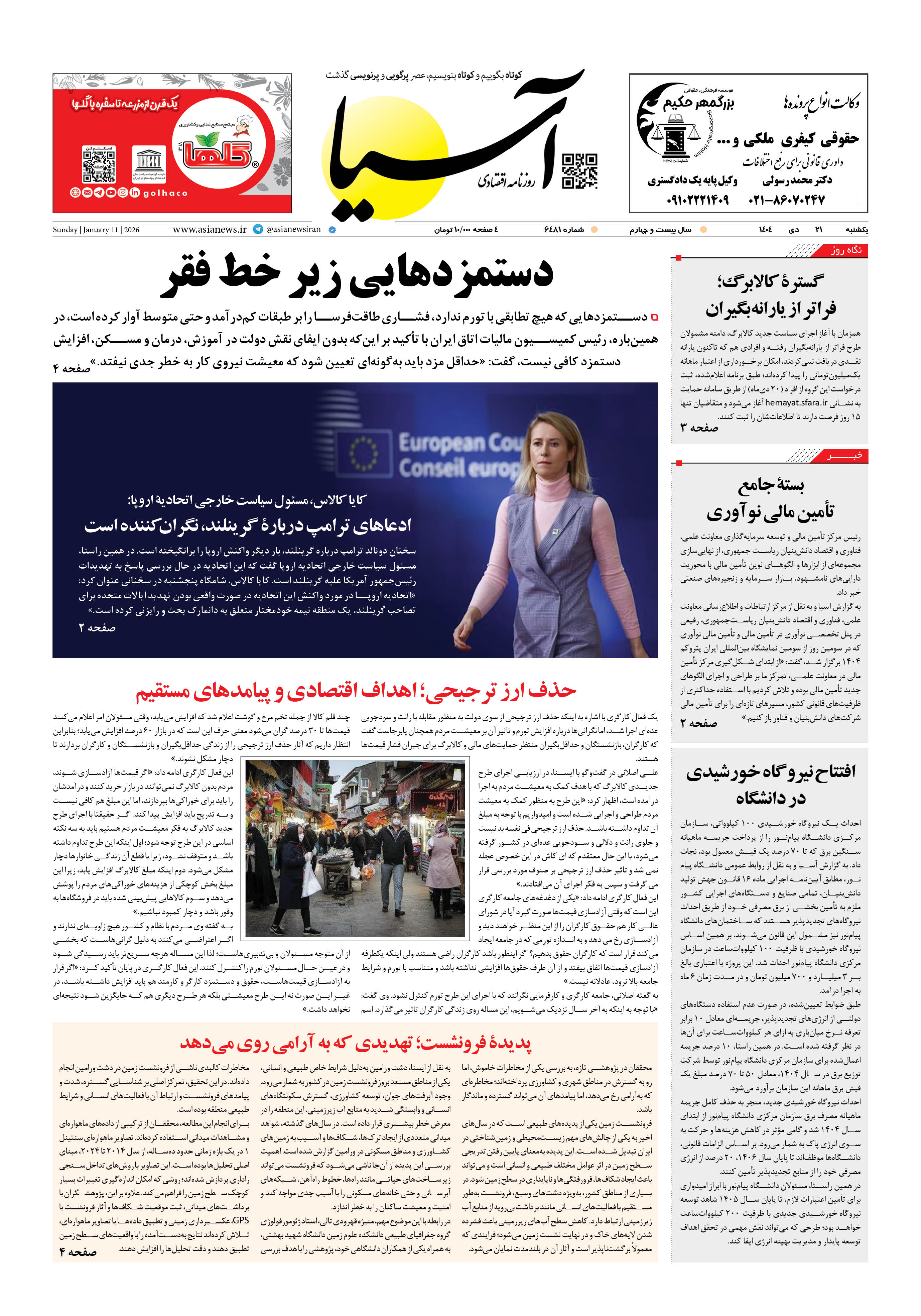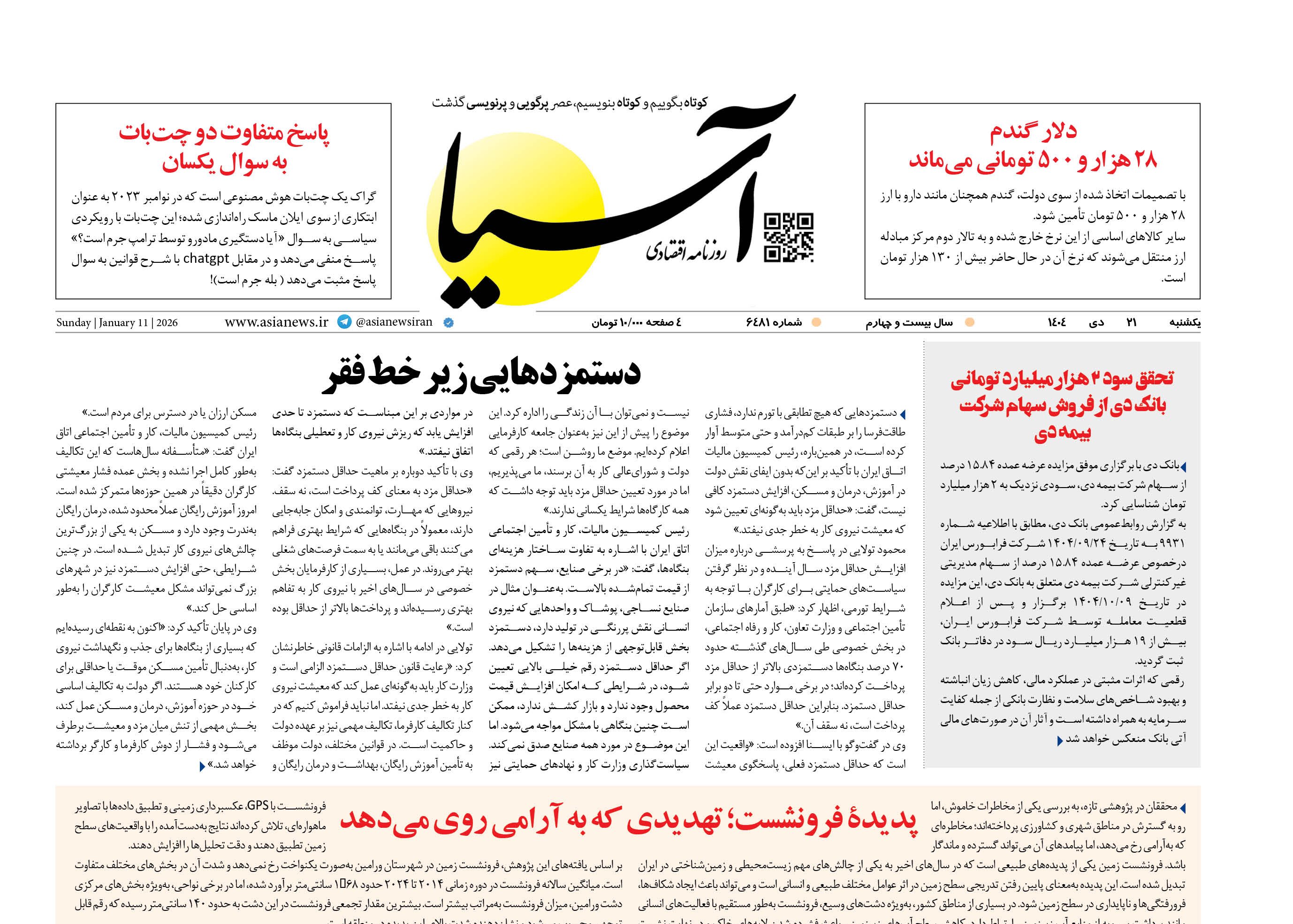 روزنامه اقتصادی آسیا - ۲۱ دی 1404