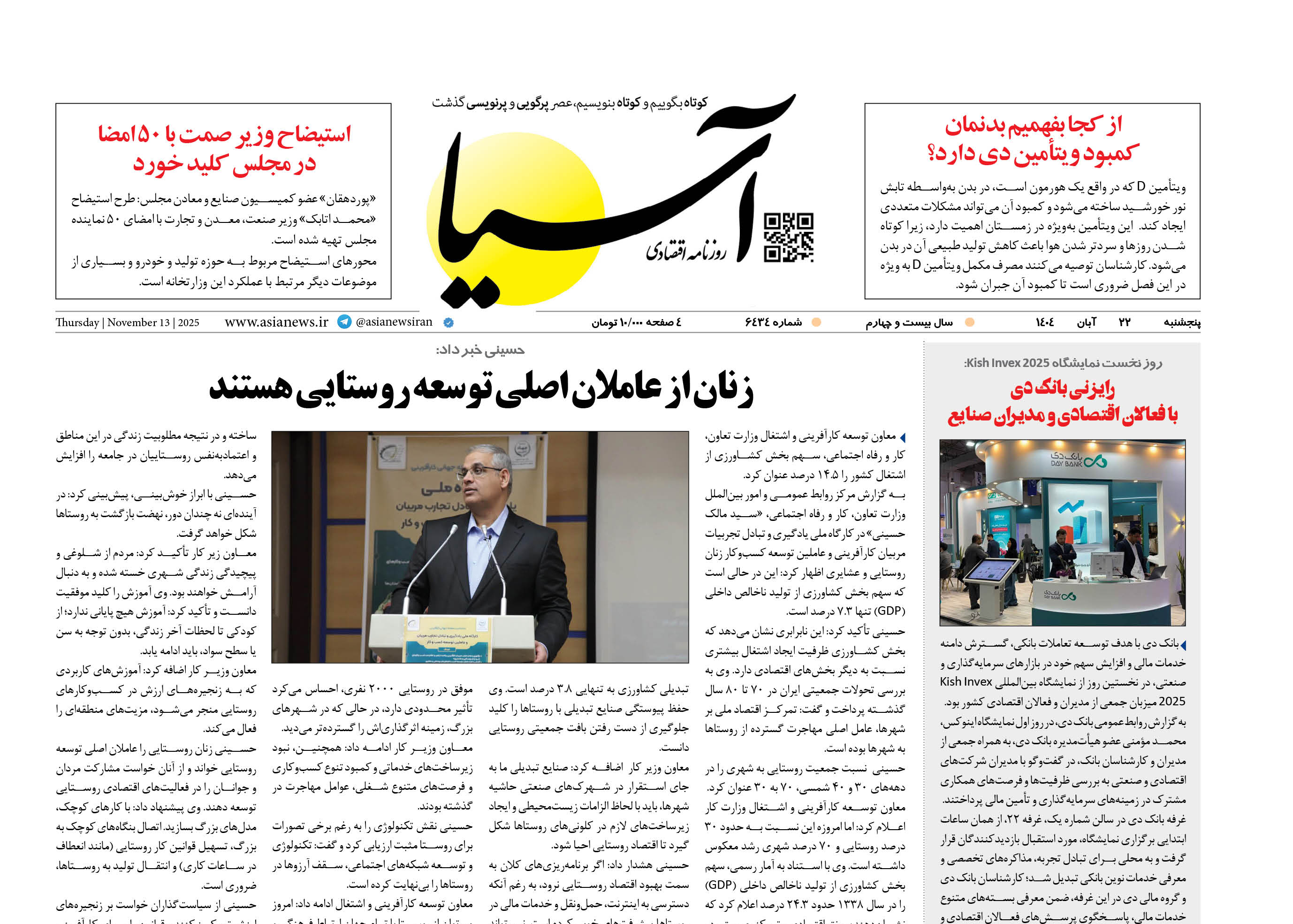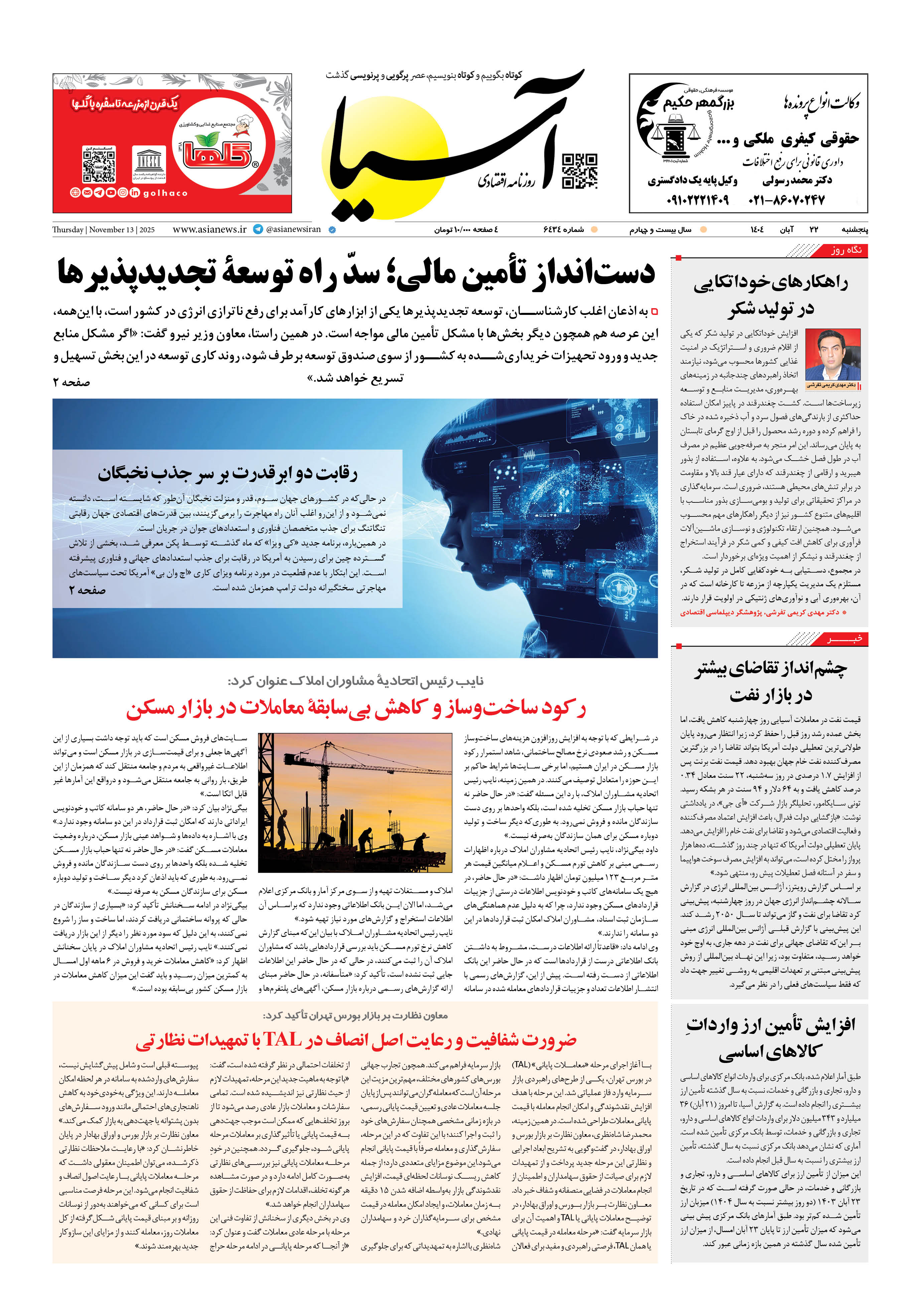روزنامه اقتصادی آسیا _ ۲۲ آبان ۱۴۰۴