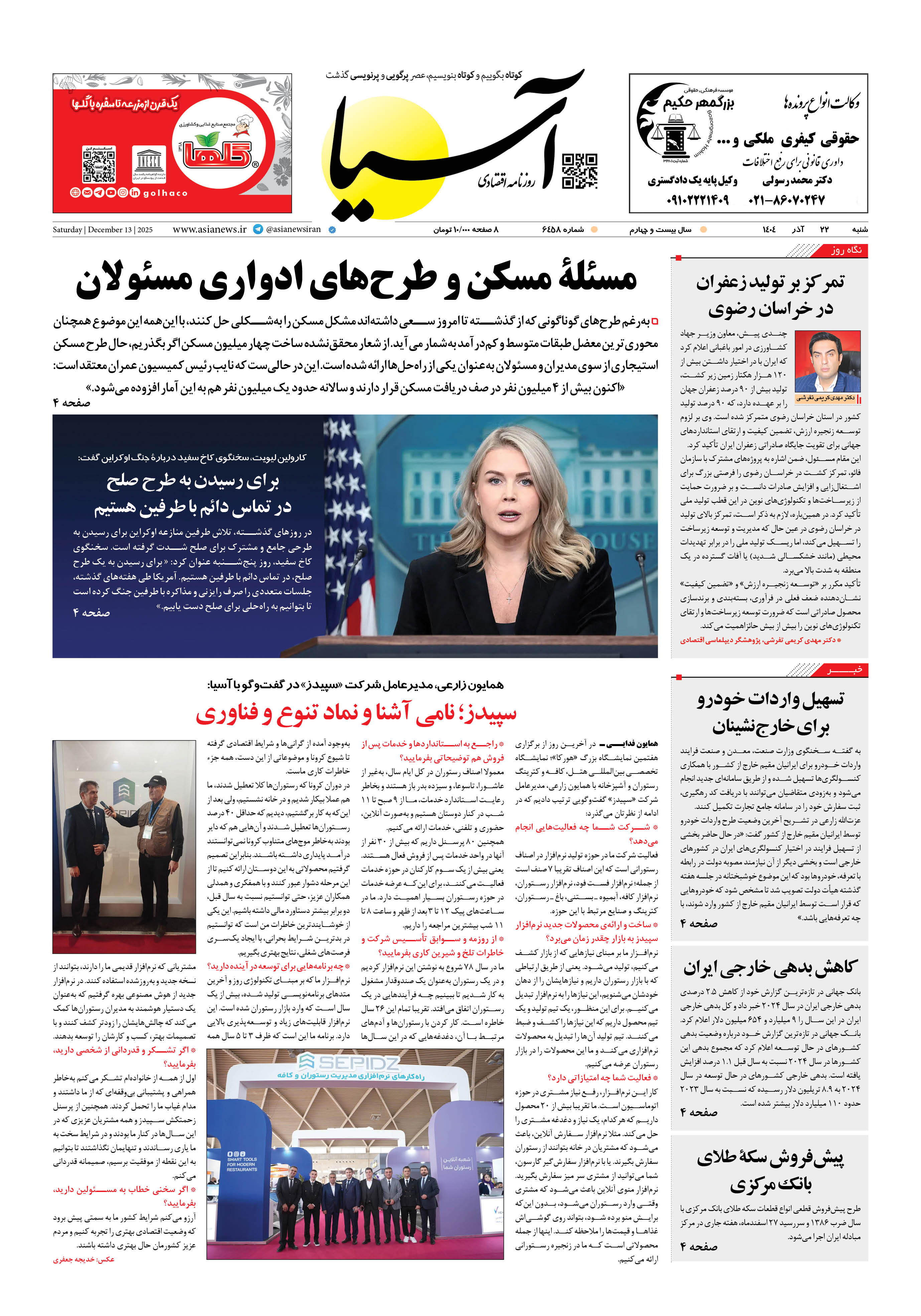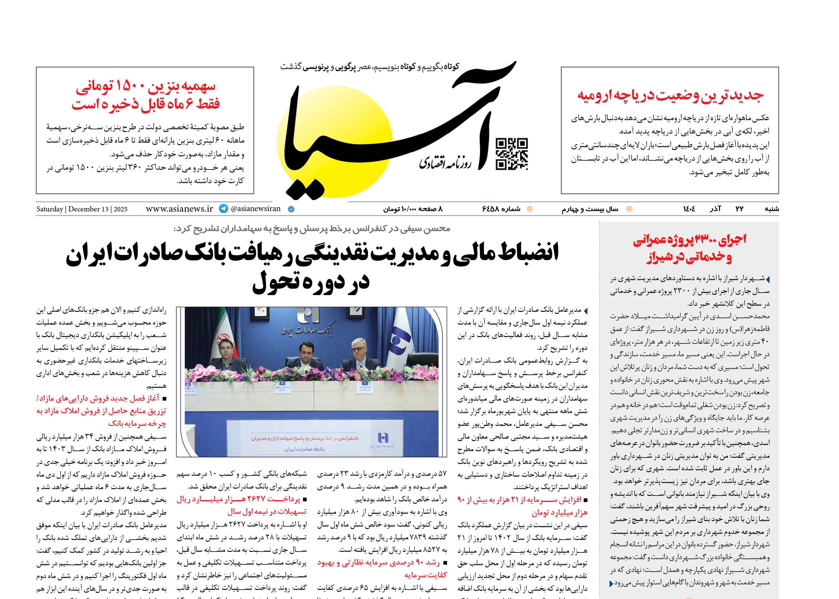 روزنامه اقتصادی آسیا - ۲۲ آذر ۱۴۰۴