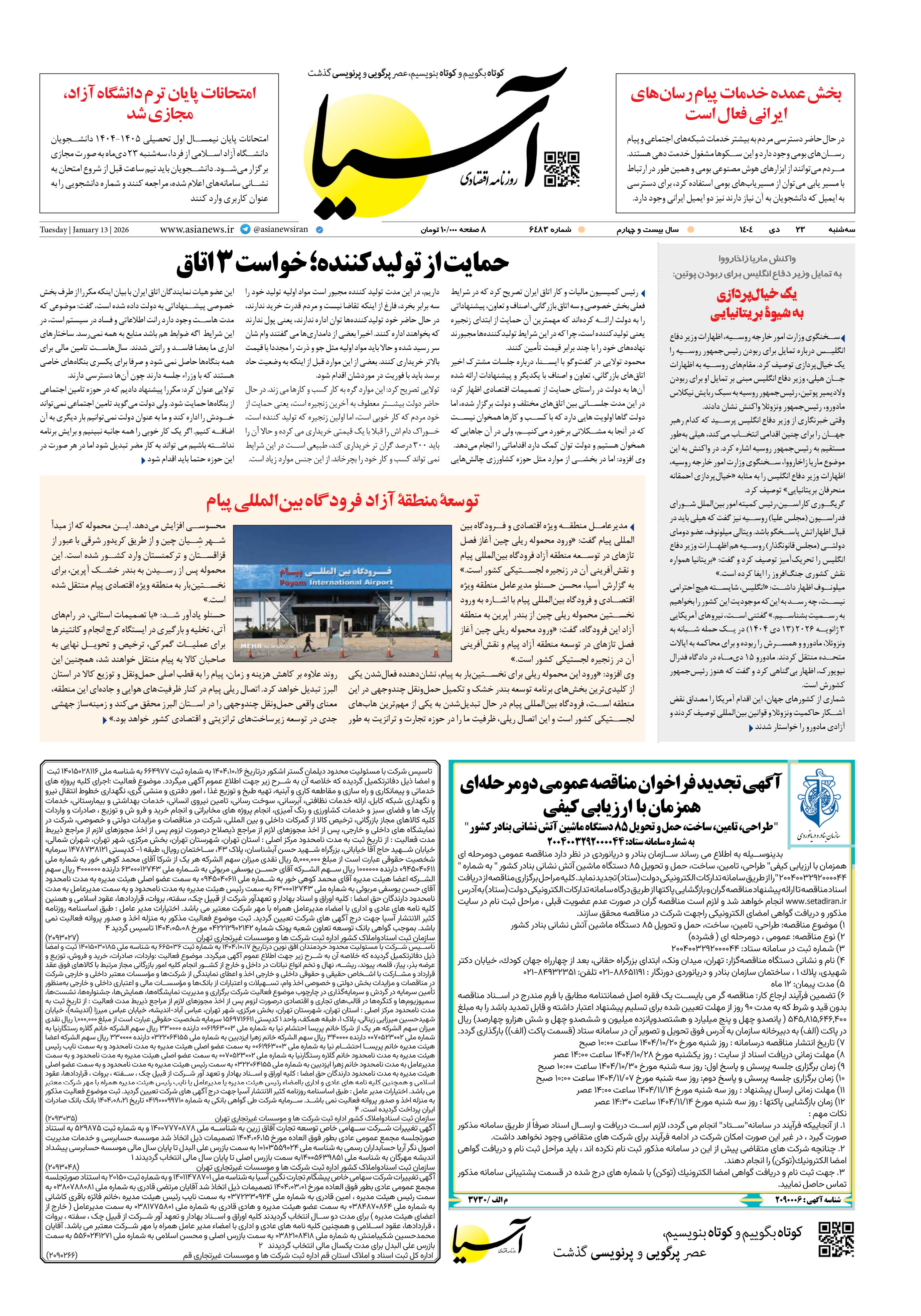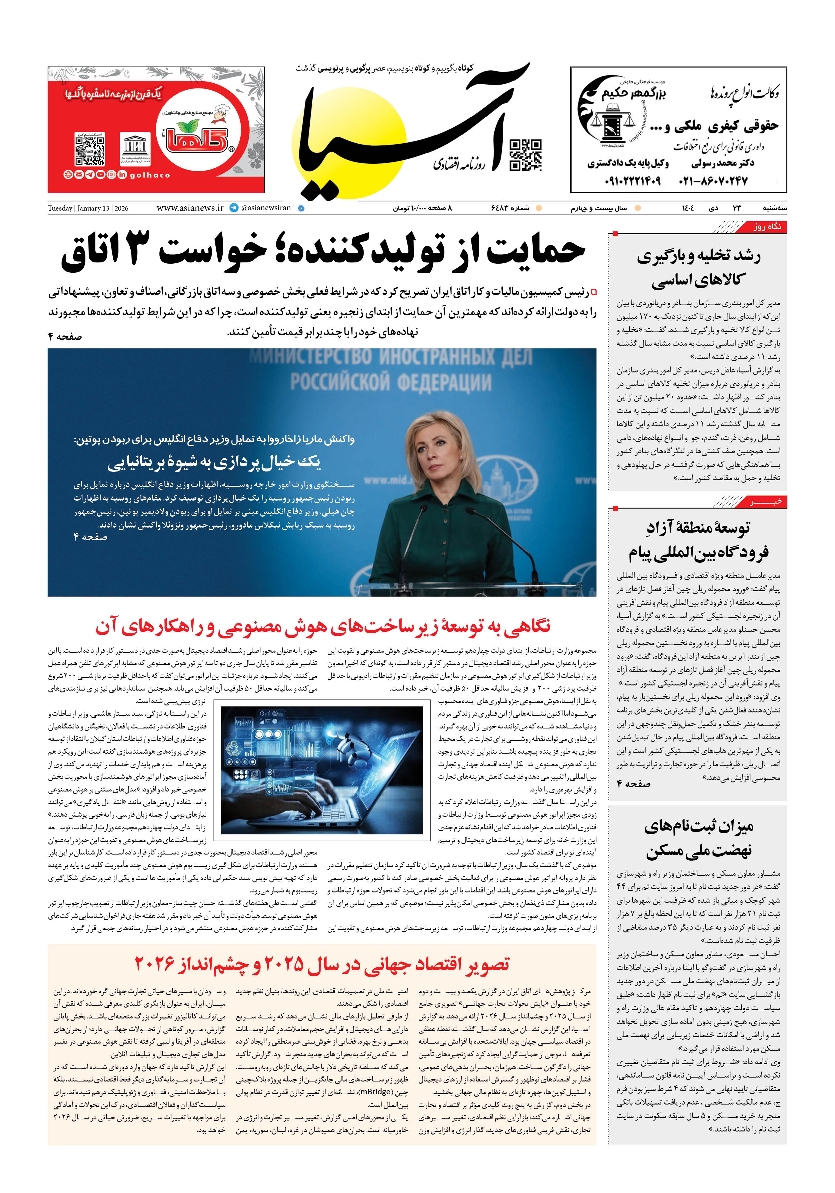روزنامه اقتصادی آسیا - ۲۳ دی 1404