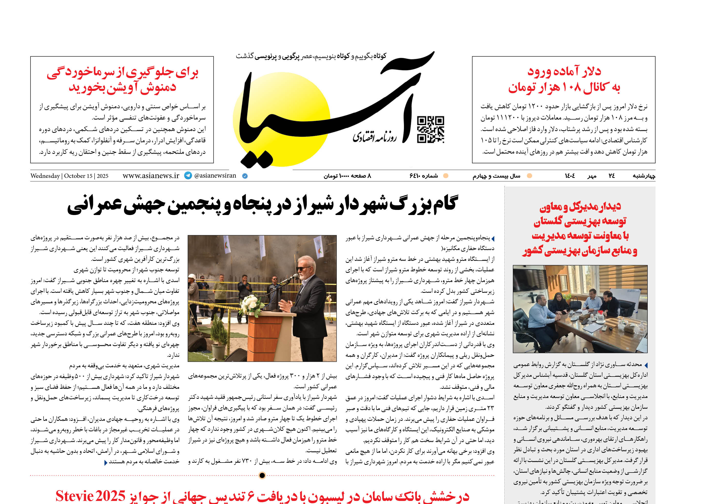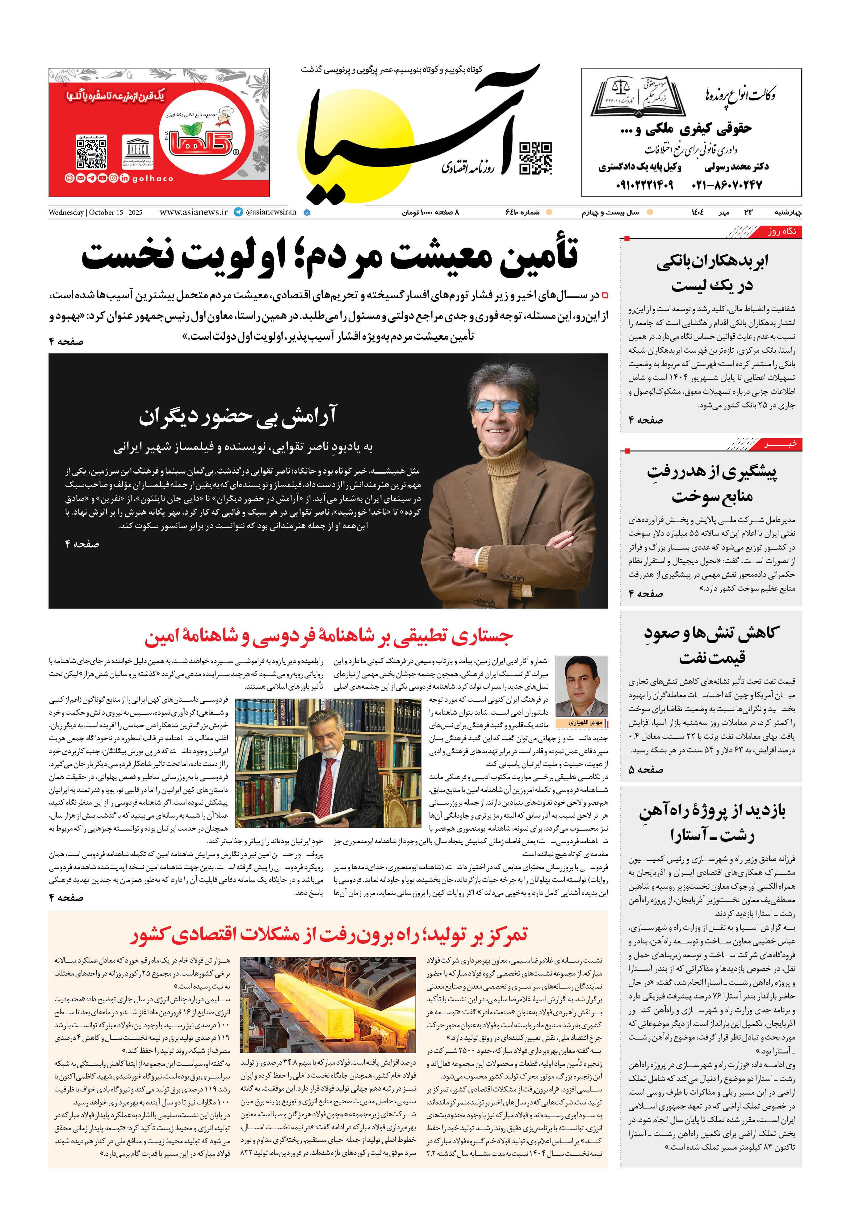 روزنامه اقتصادی آسیا _ ۲۳ مهر ۱۴۰۴