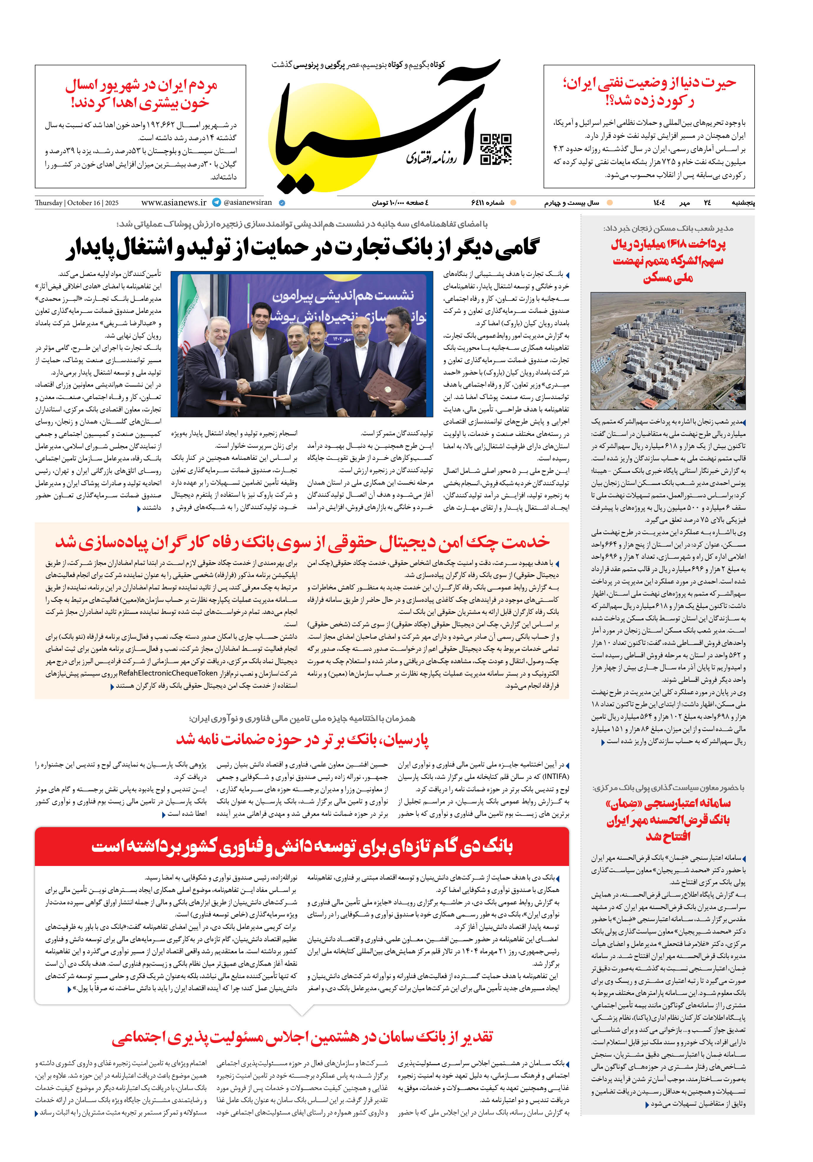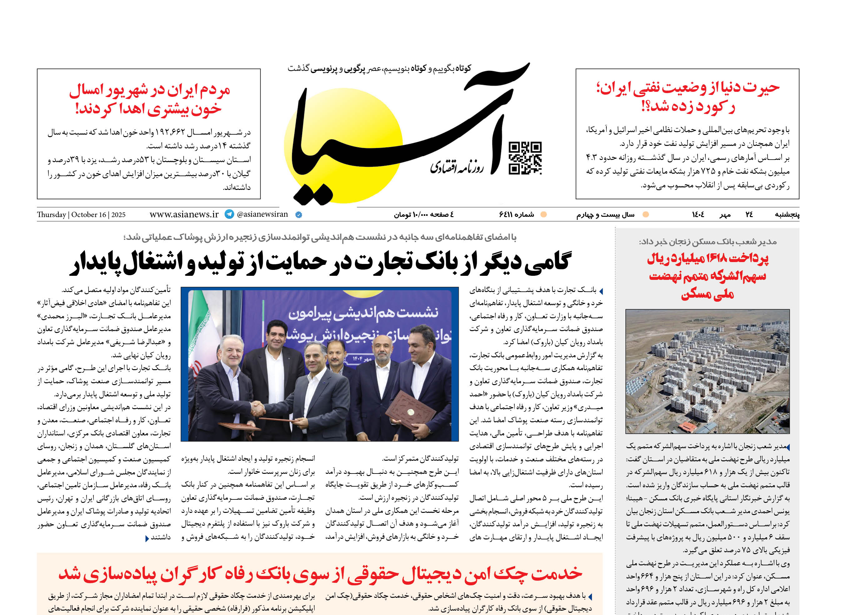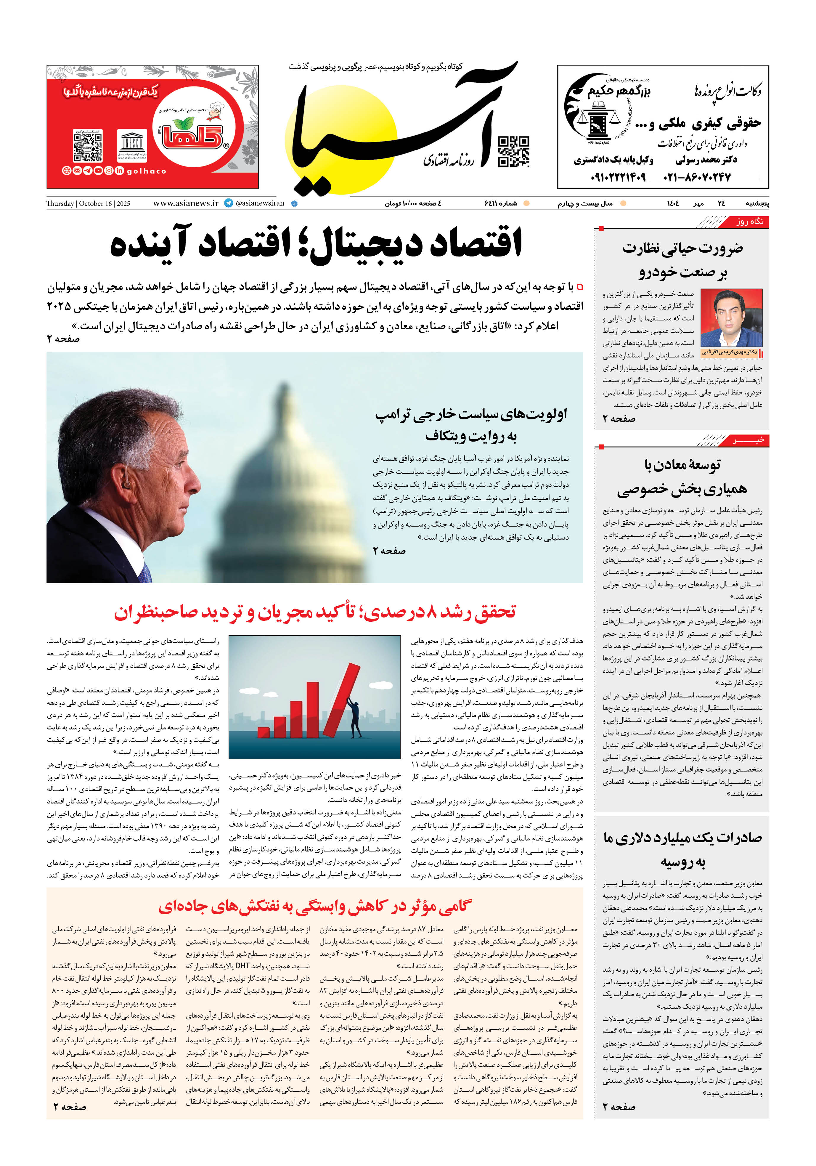 روزنامه اقتصادی آسیا - 24 مهر 1404