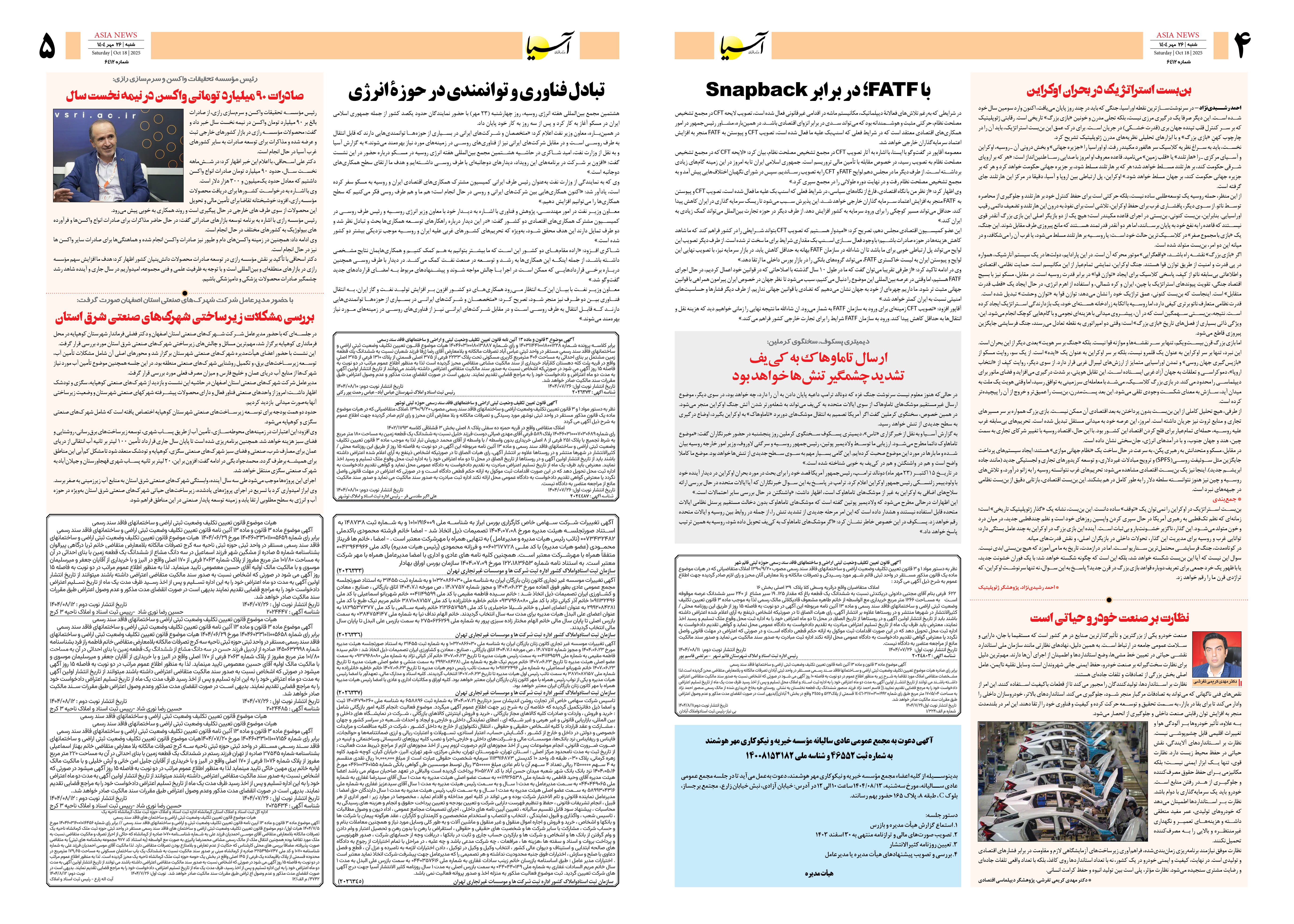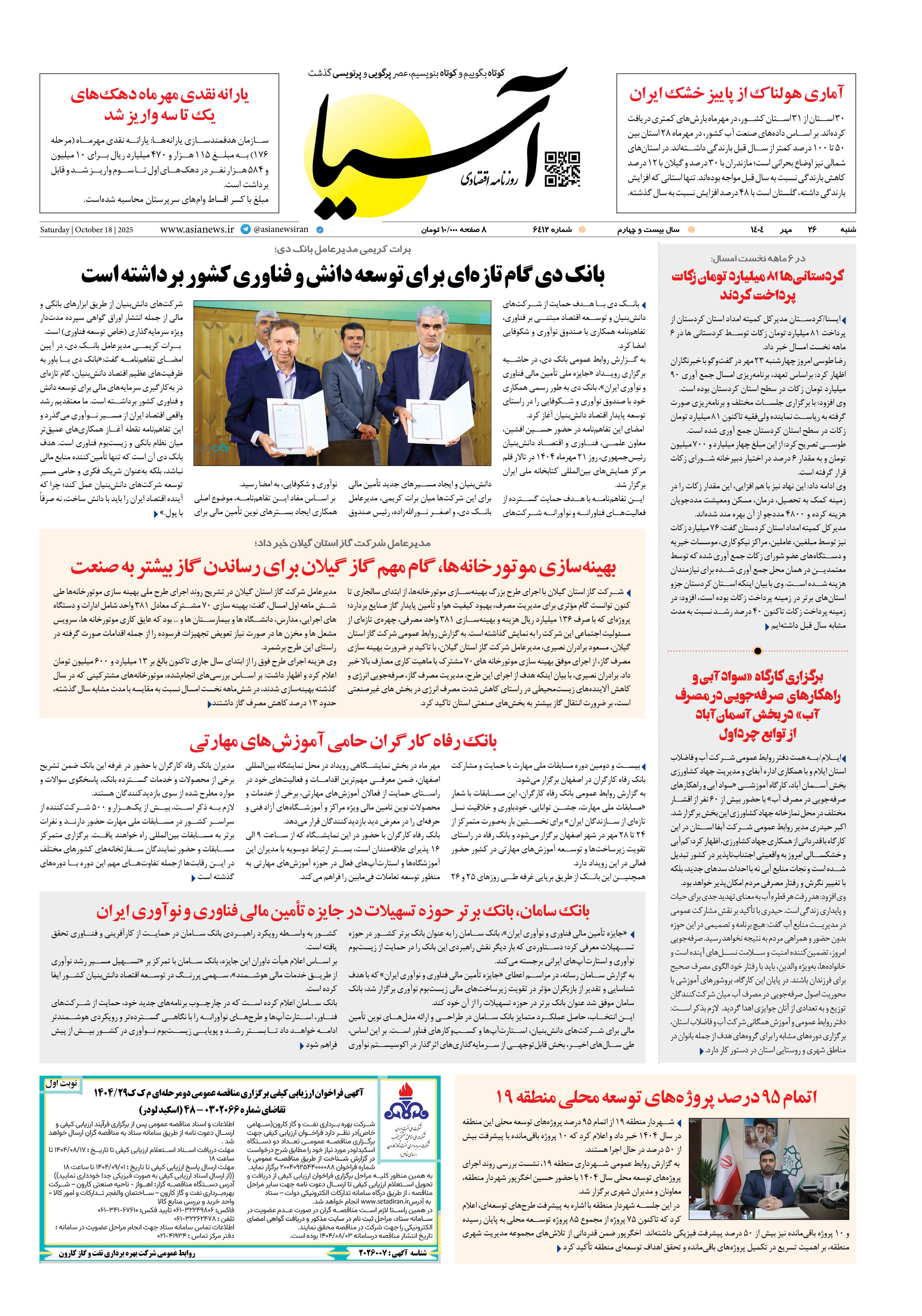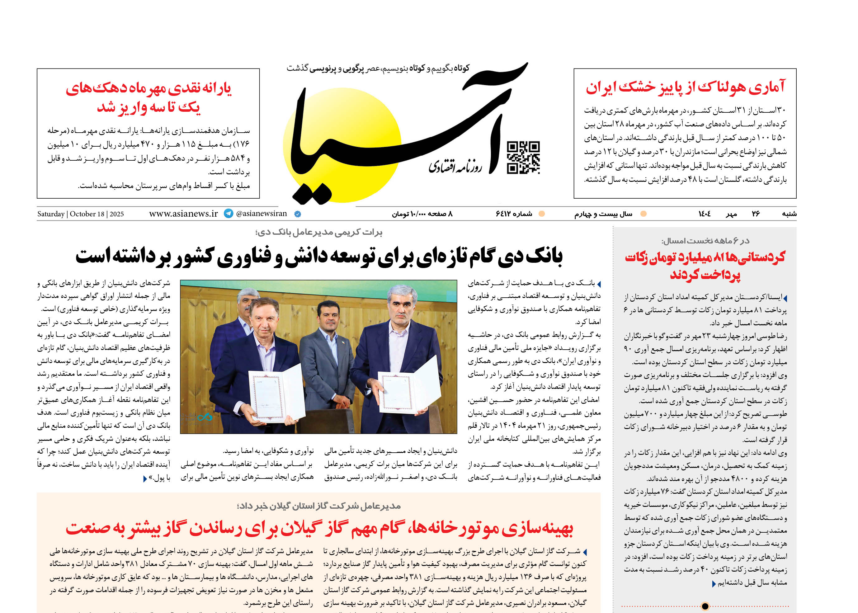 روزنامه اقتصادی آسیا - 26 مهر 1404