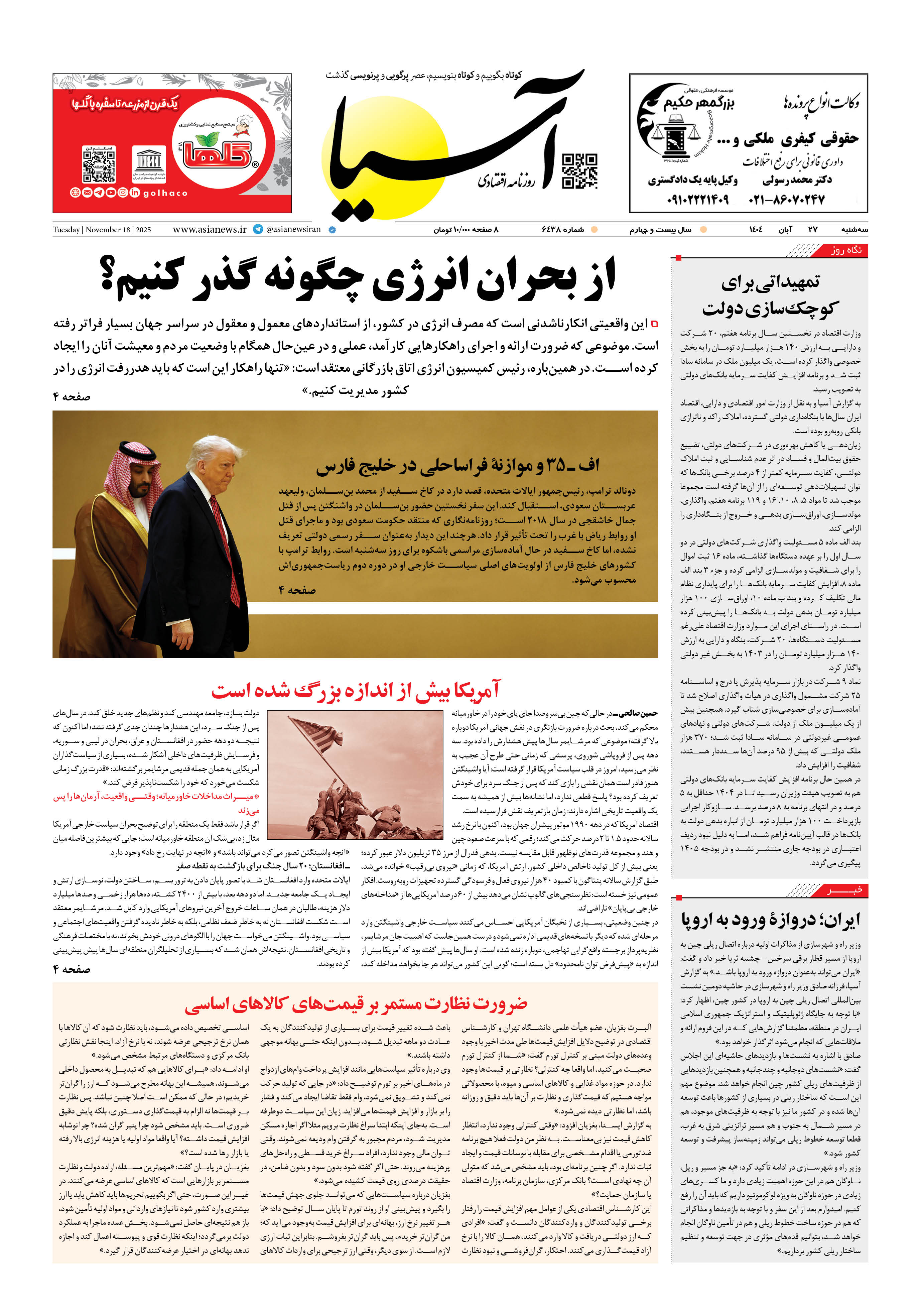 روزنامه اقتصادی آسیا _ ۲۷ آبان ۱۴۰۴