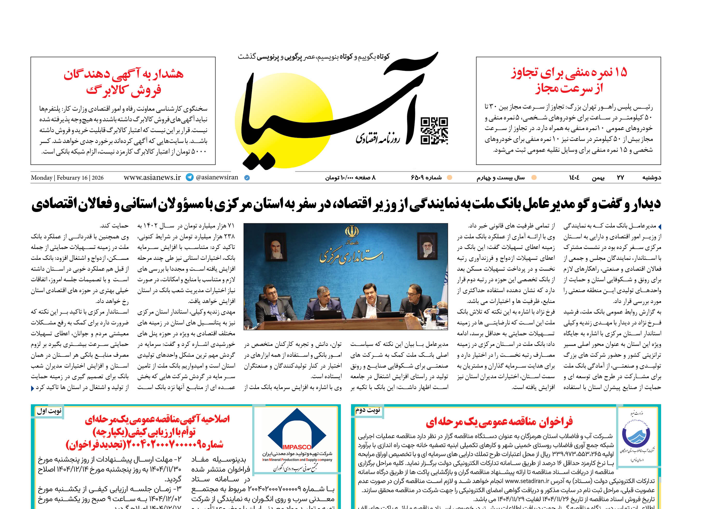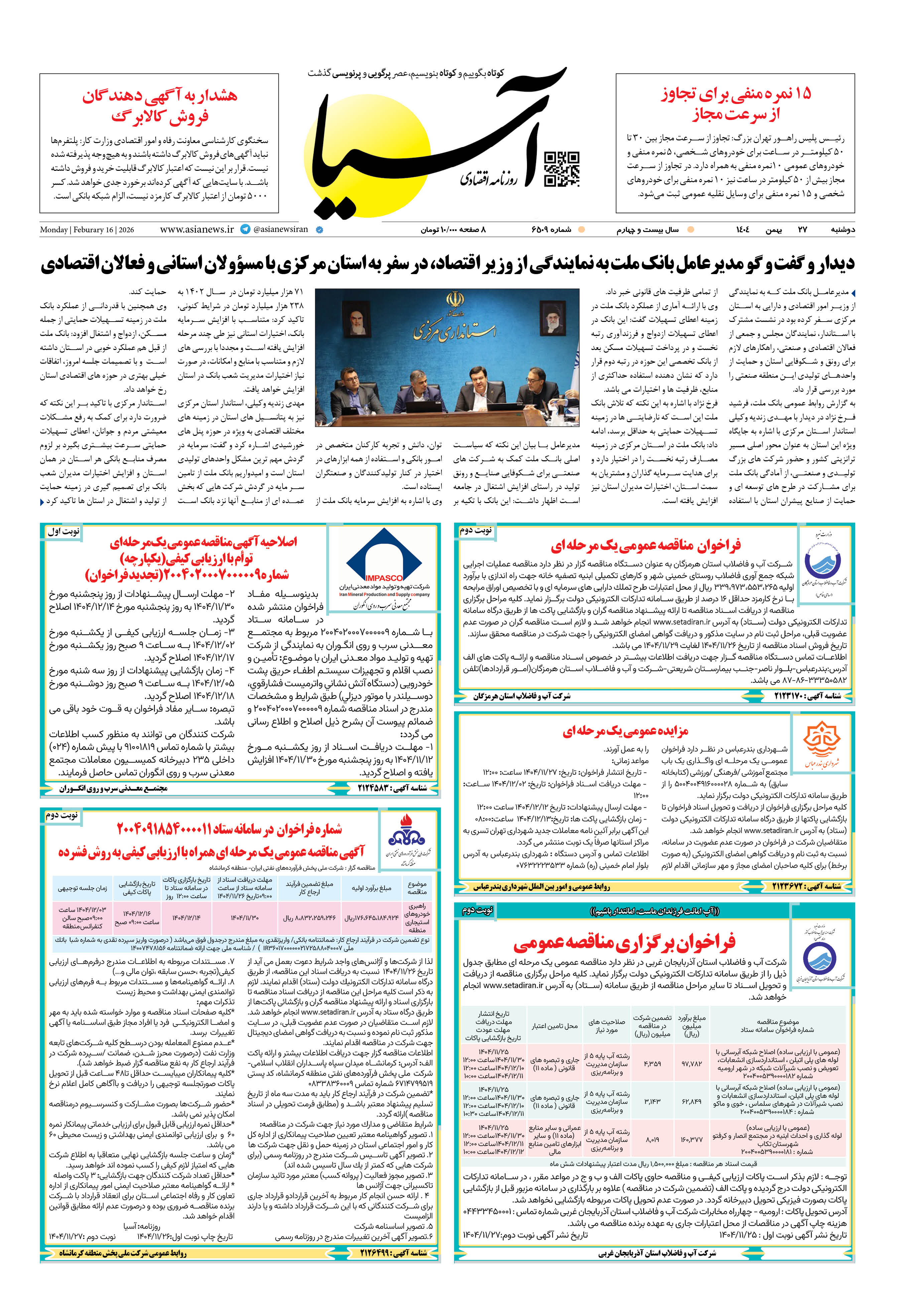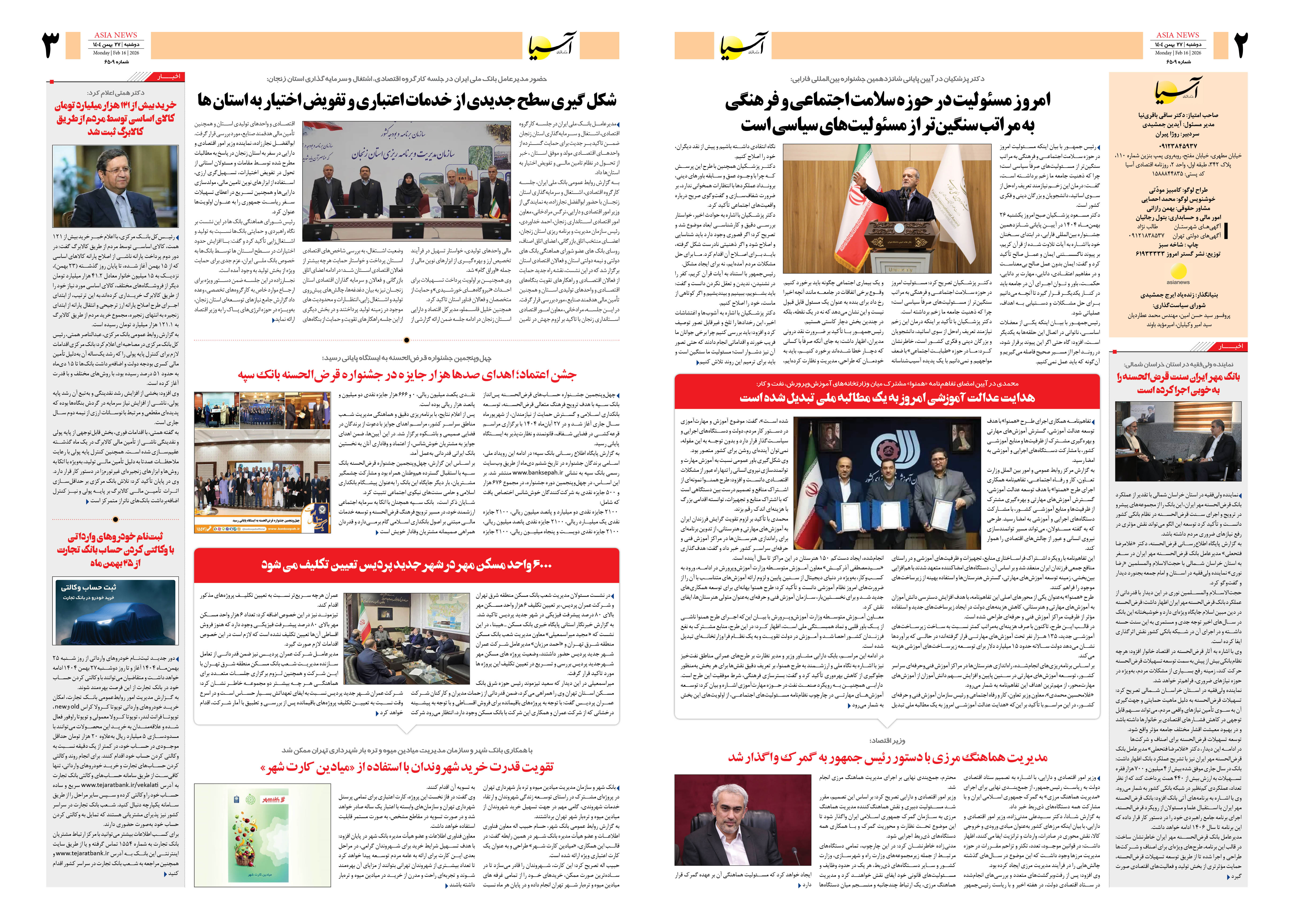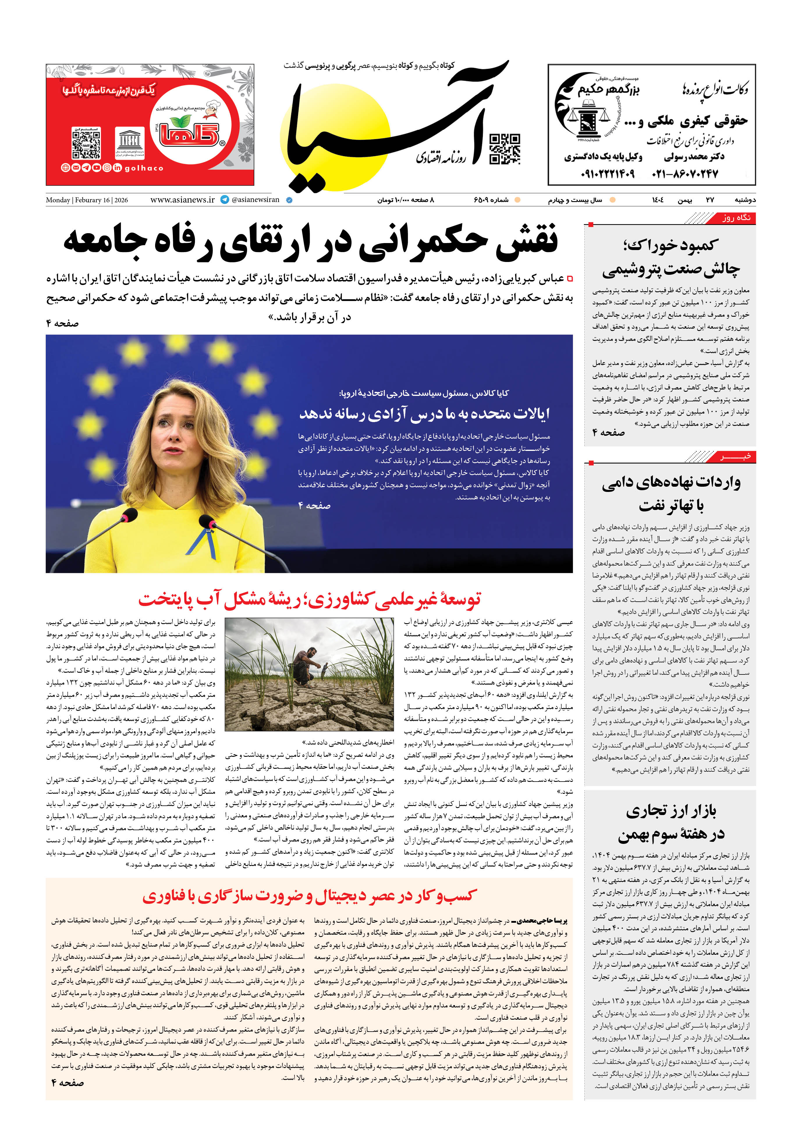 روزنامه اقتصادی آسیا - ۲۷ بهمن ۱۴۰۴