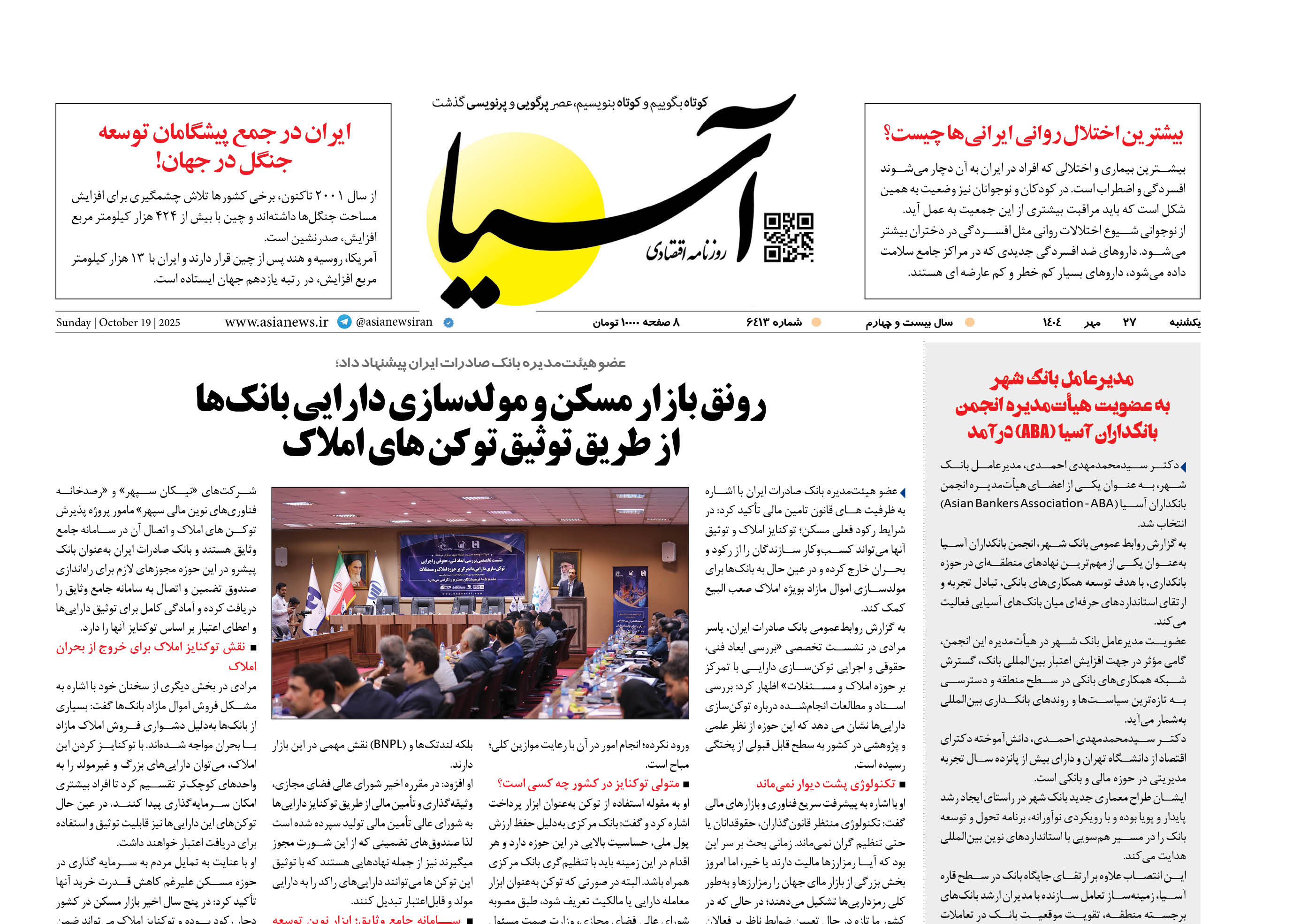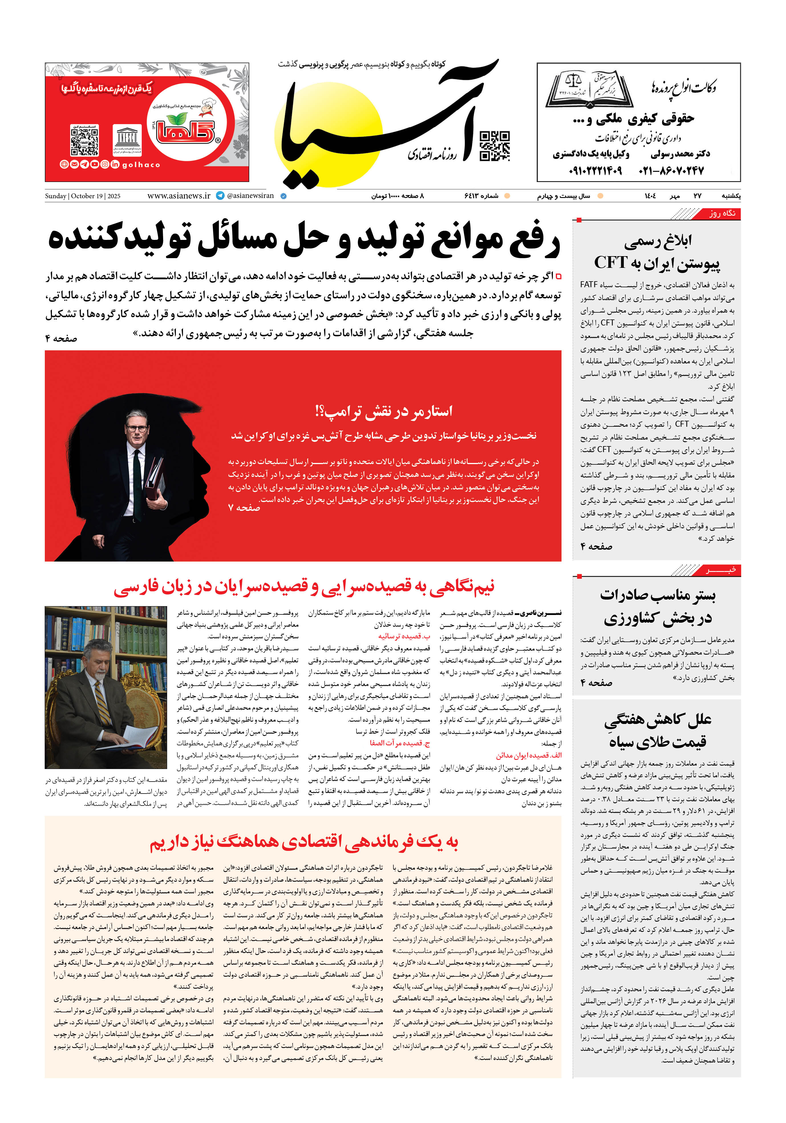 روزنامه اقتصادی آسیا - ۲۷ مهر ۱۴۰۴