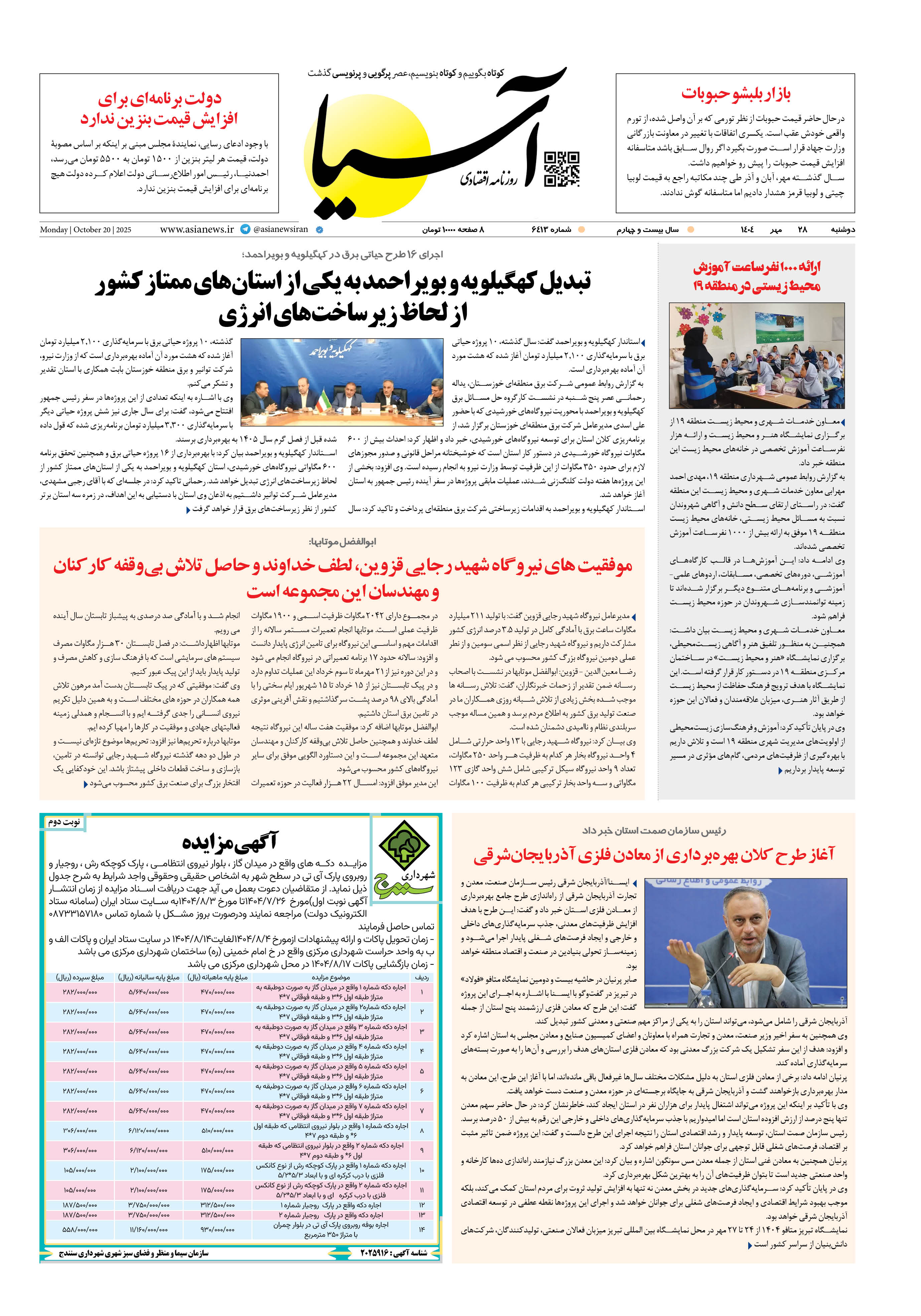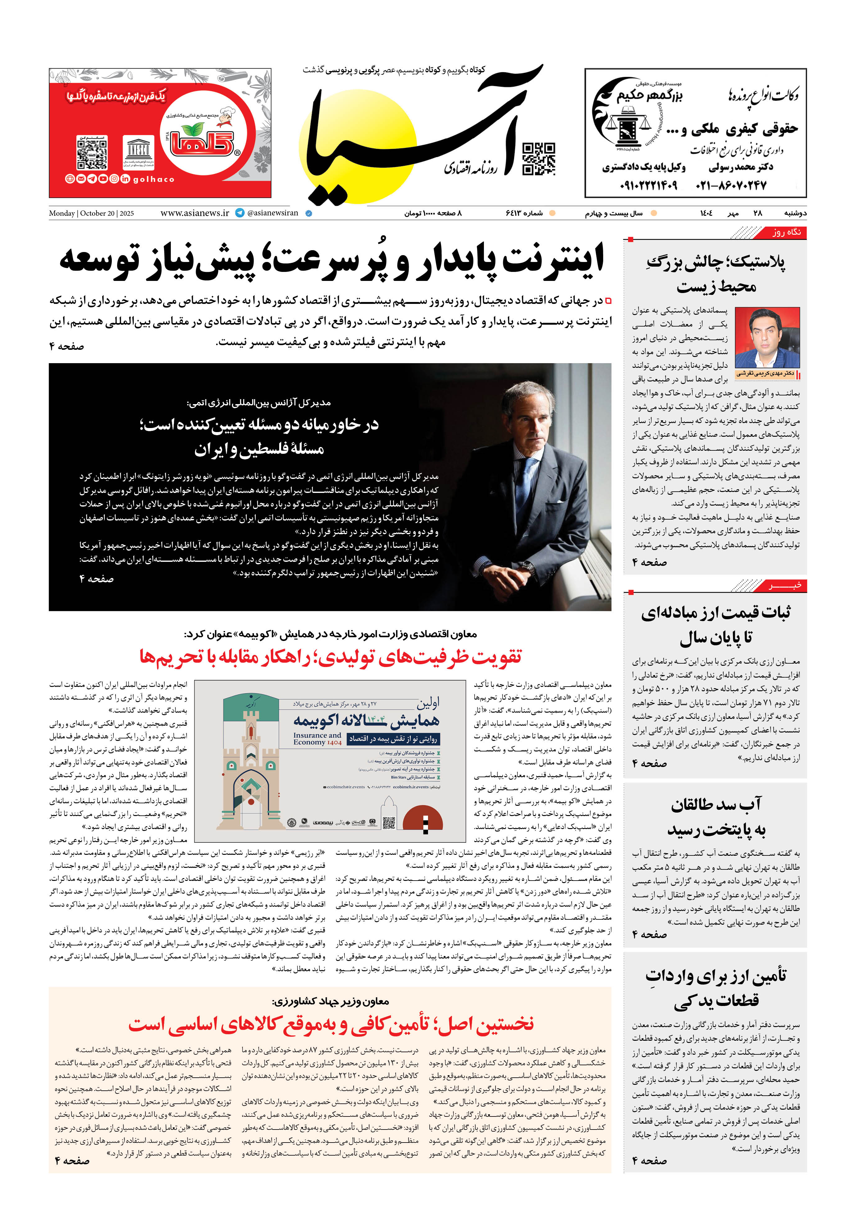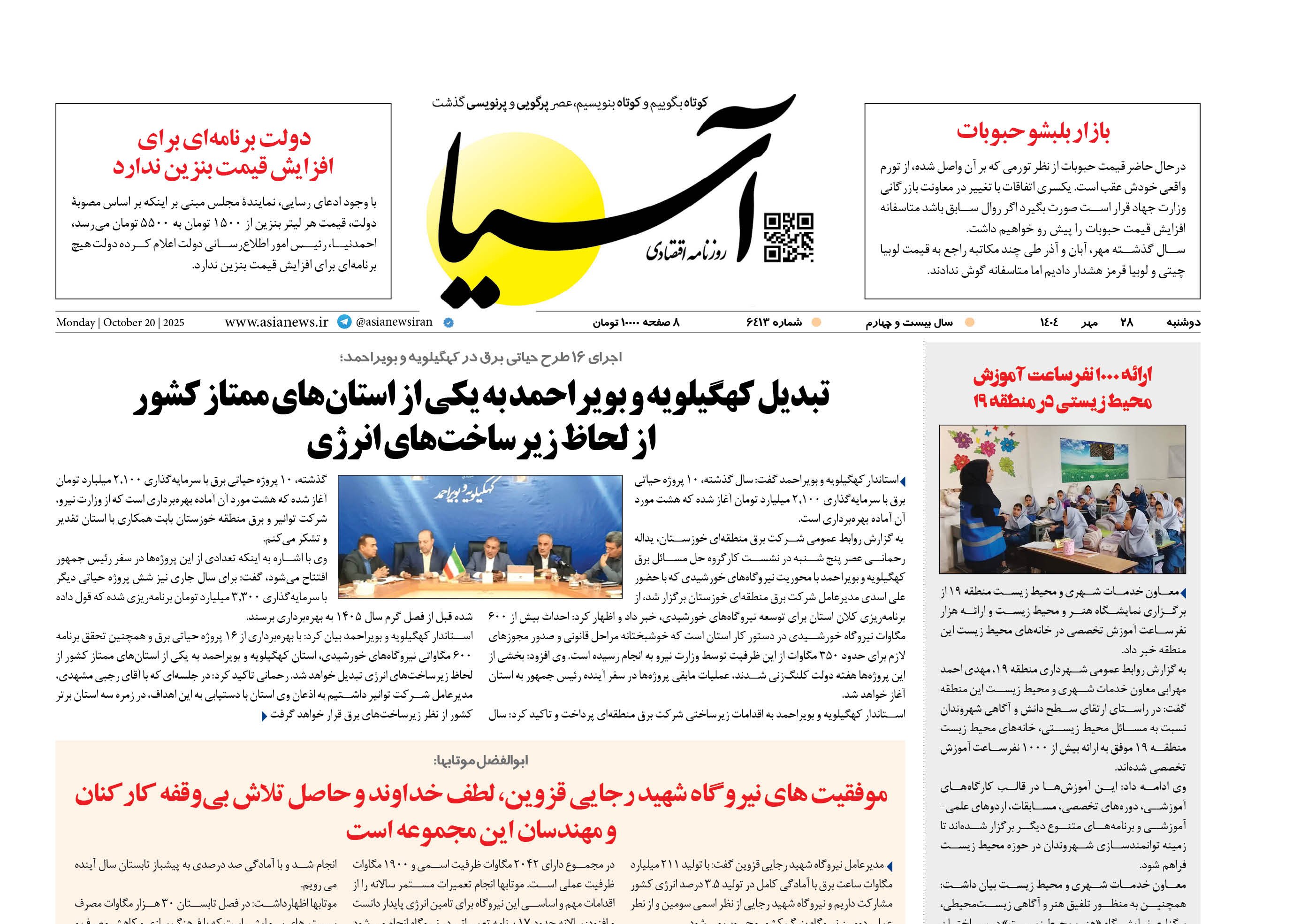 روزنامه اقتصادی آسیا _ ۲۷ مهر ۱۴۰۴