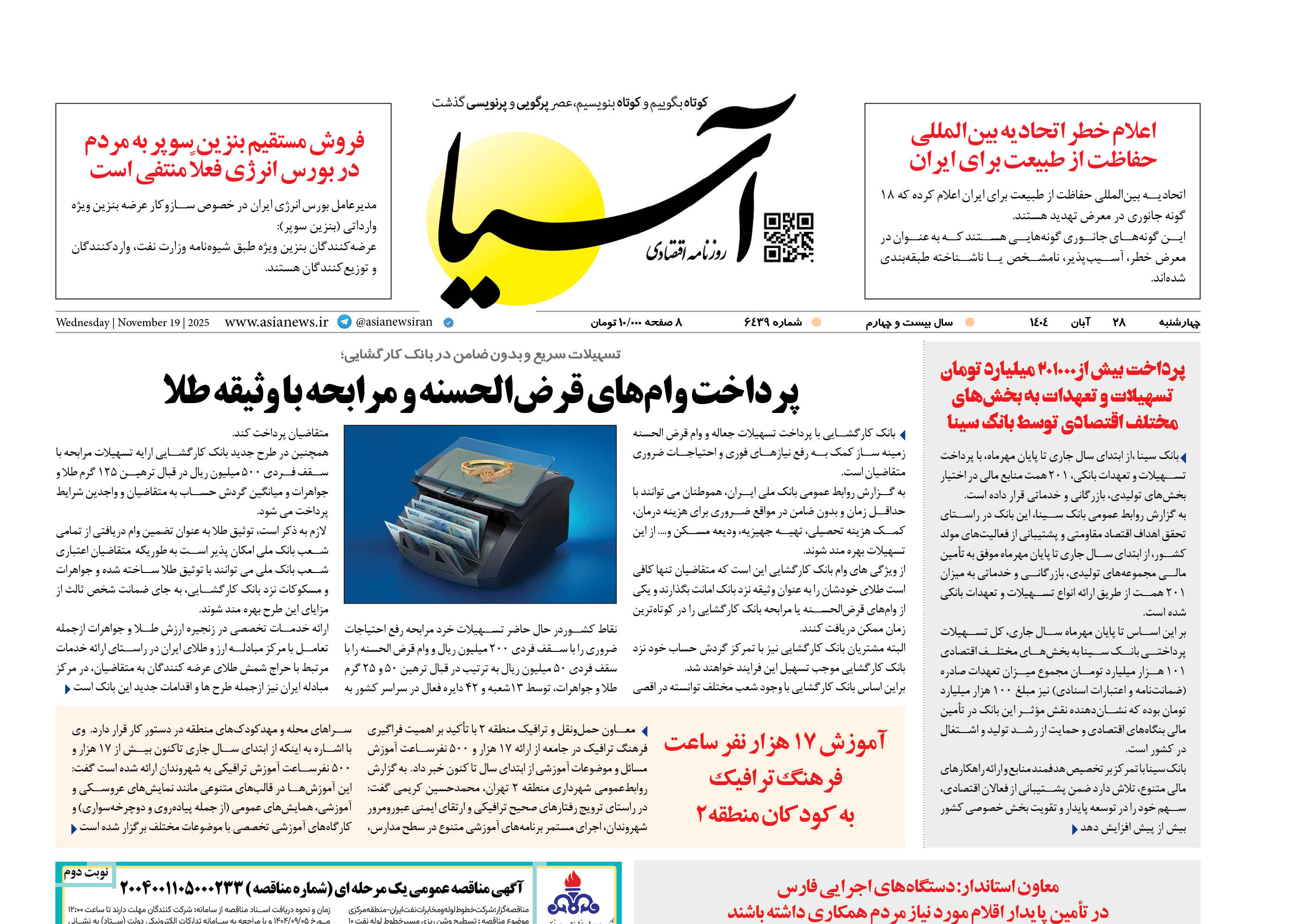 روزنامه اقتصادی آسیا - 28 آبان 1404