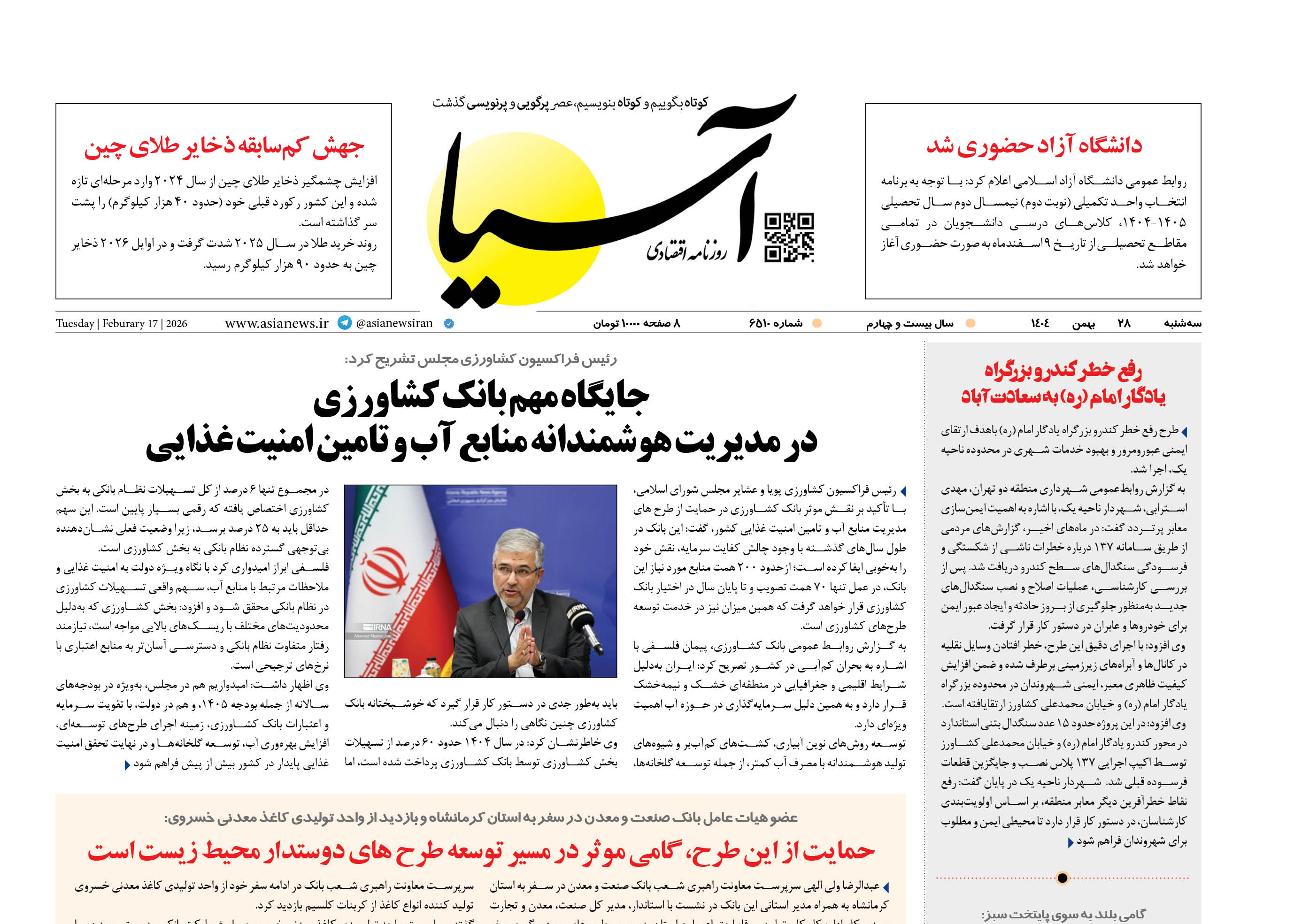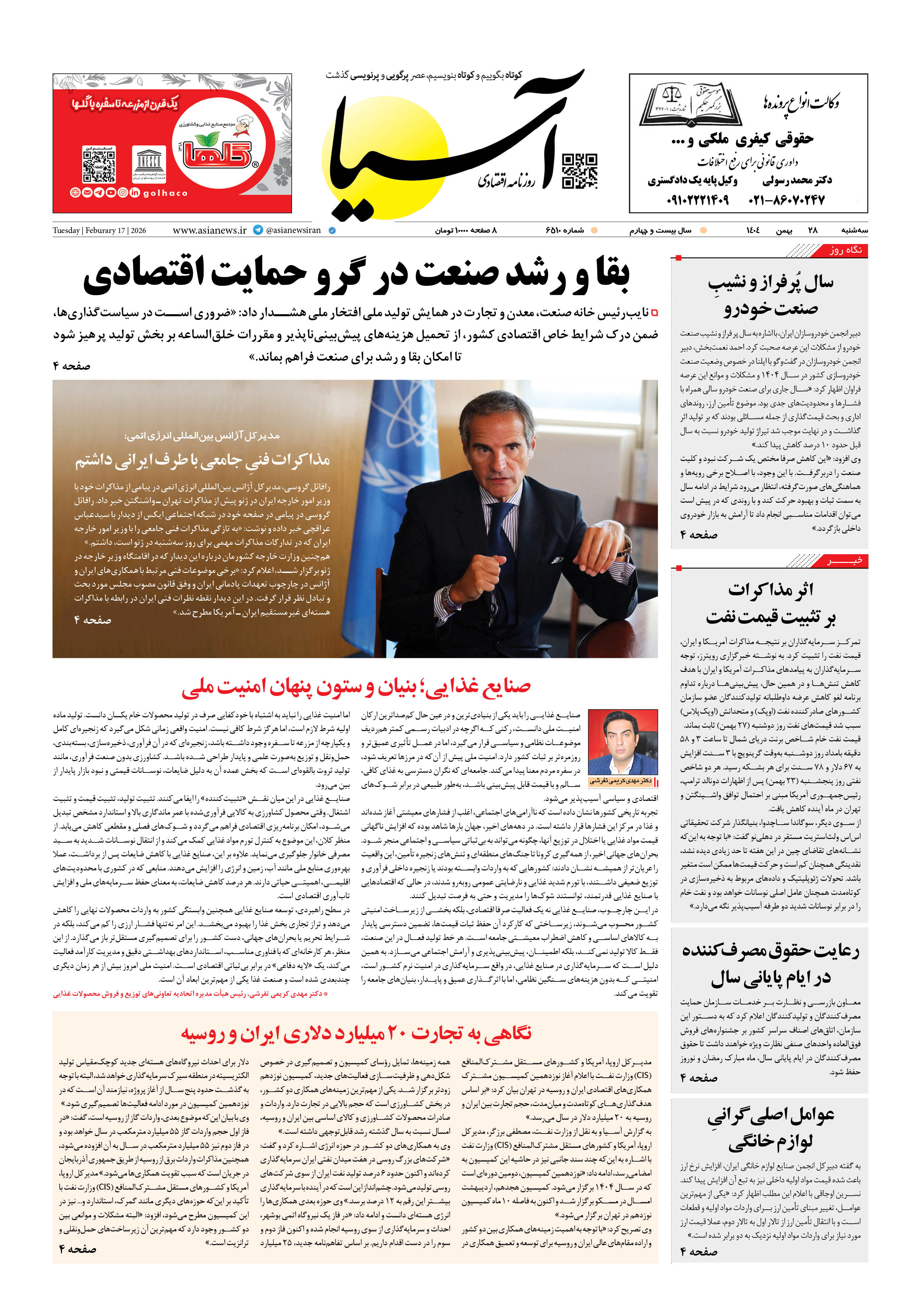 روزنامه اقتصادی آسیا - 28 بهمن ۱۴۰۴