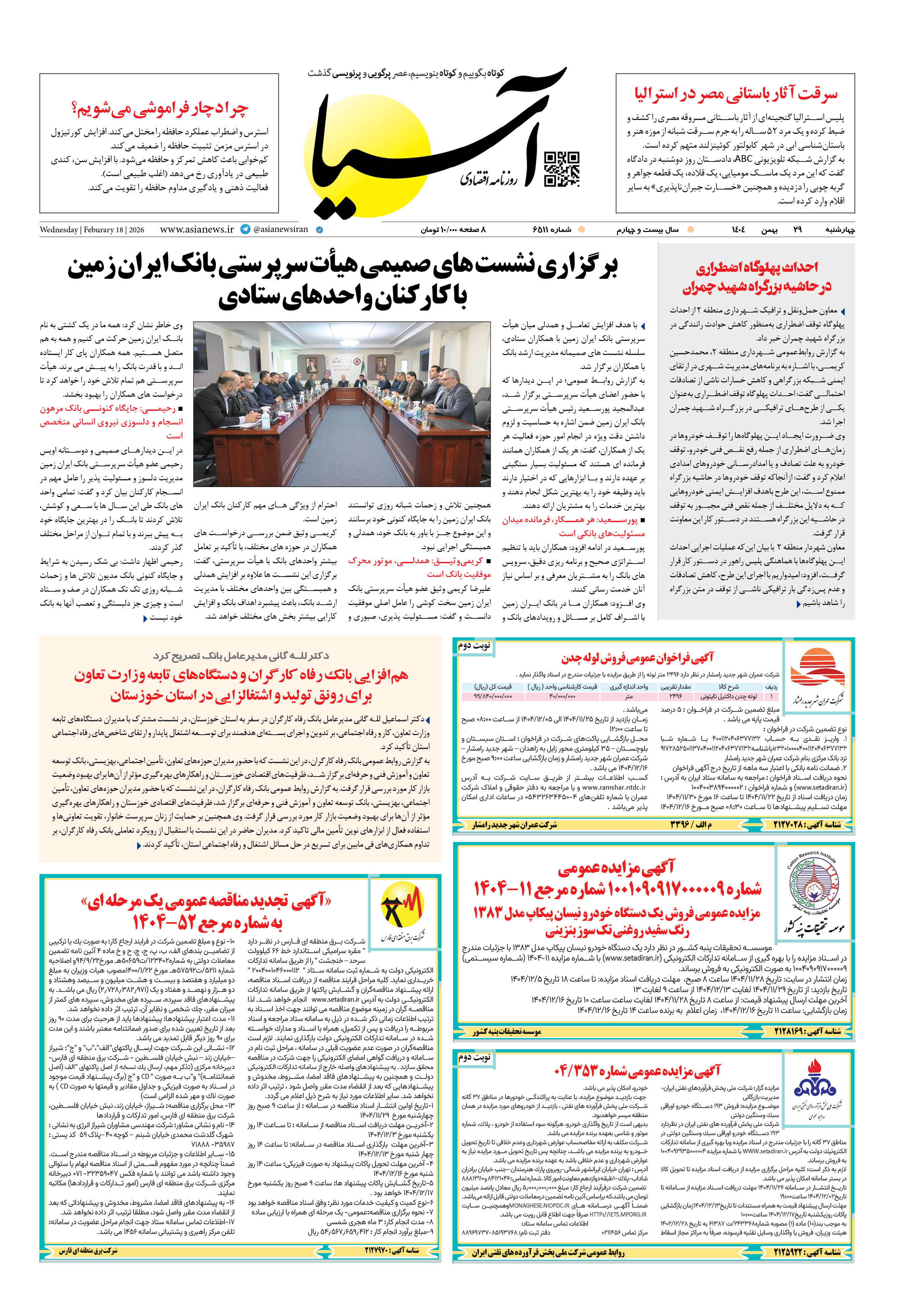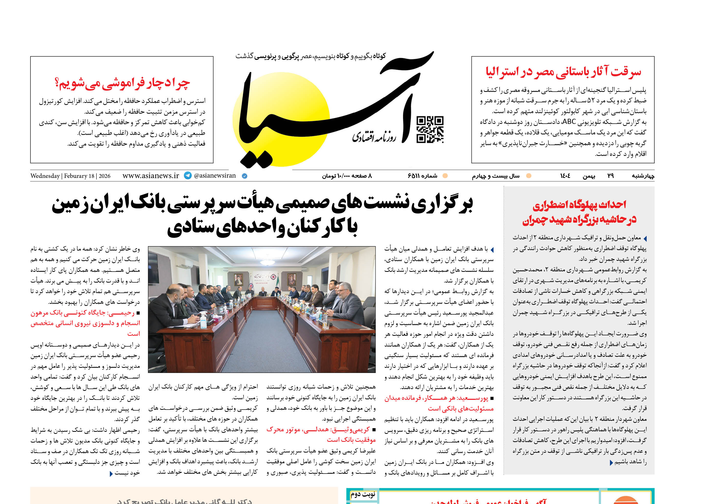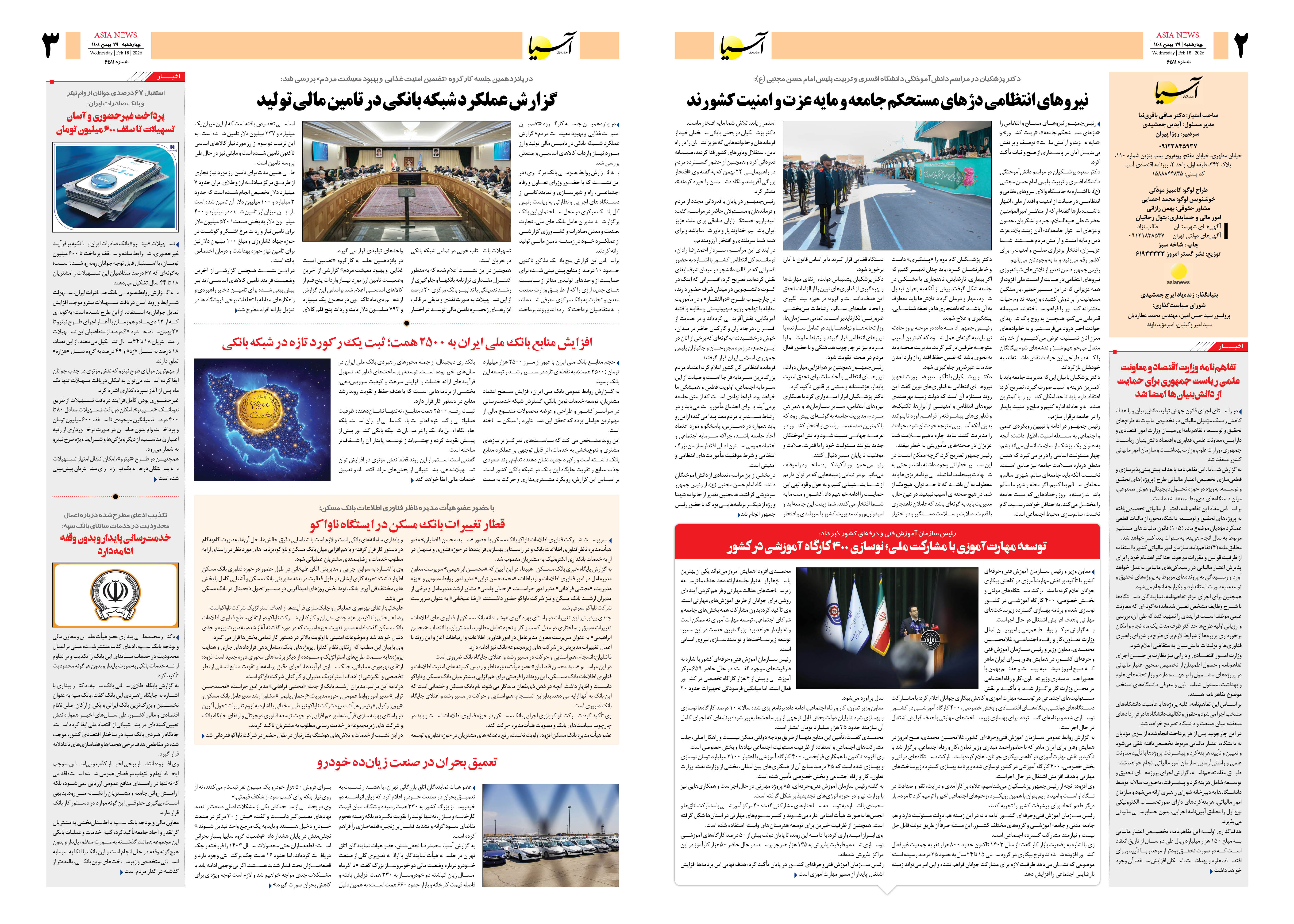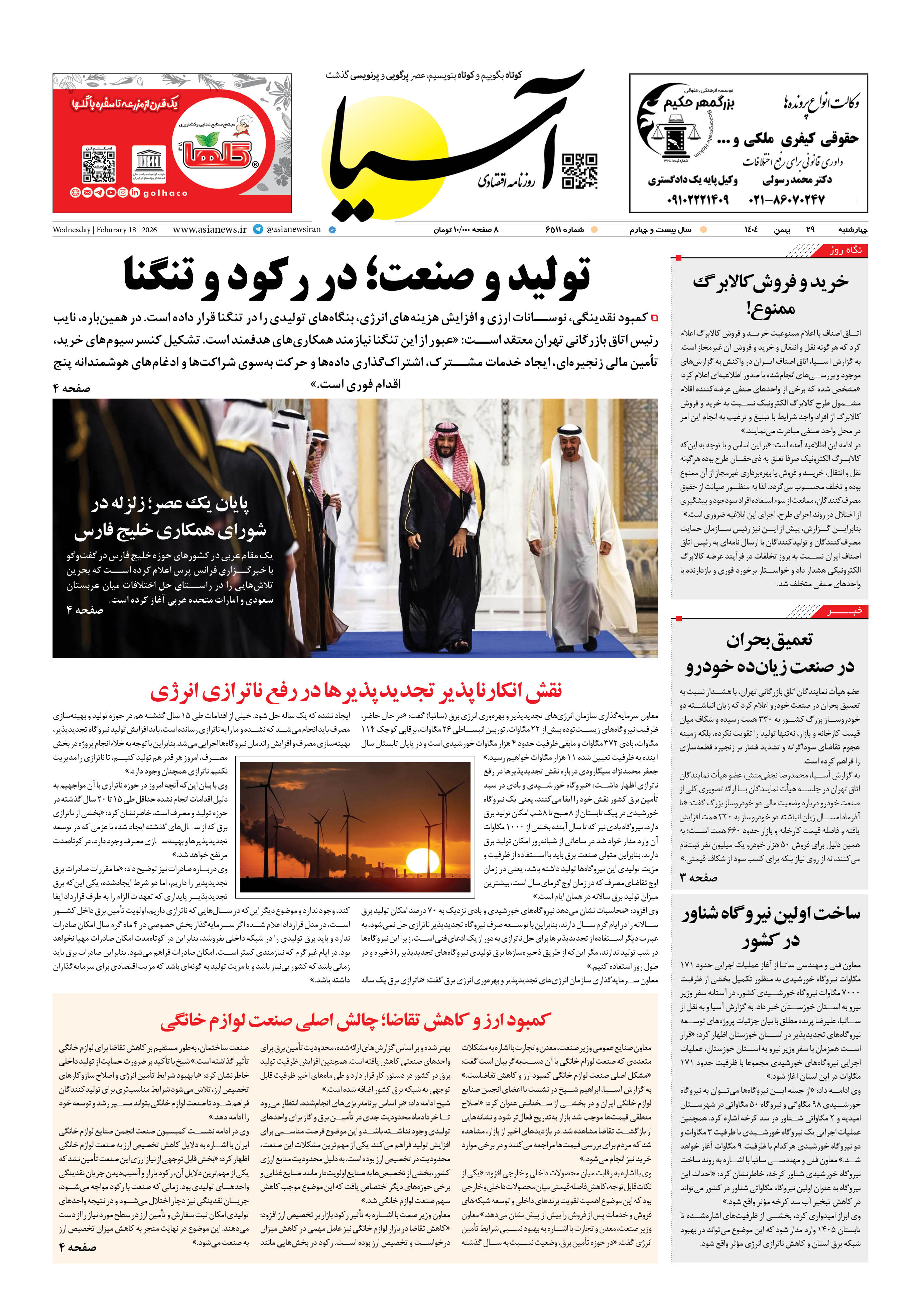 روزنامه اقتصادی آسیا -۲۹ بهمن ۱۴۰۴