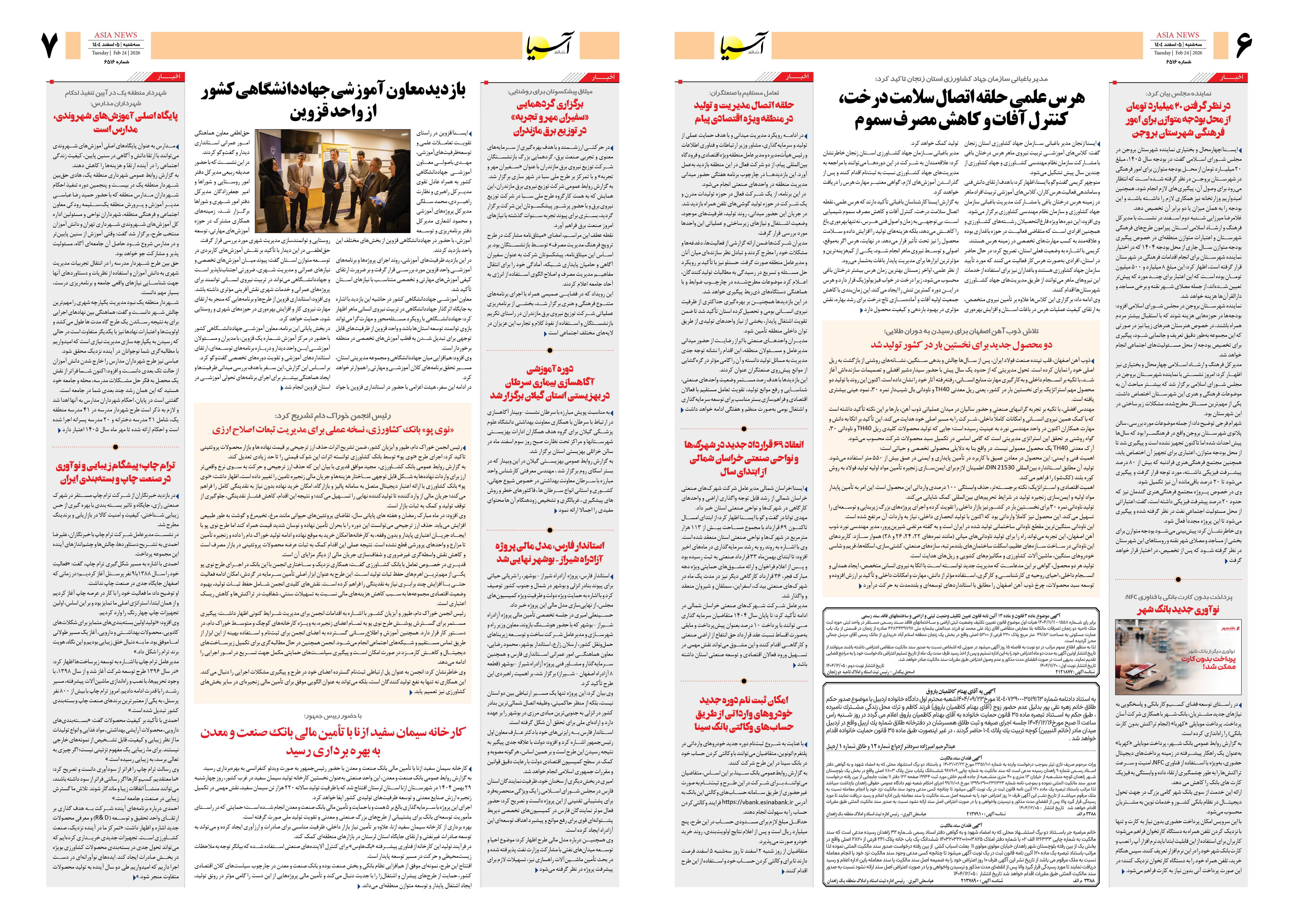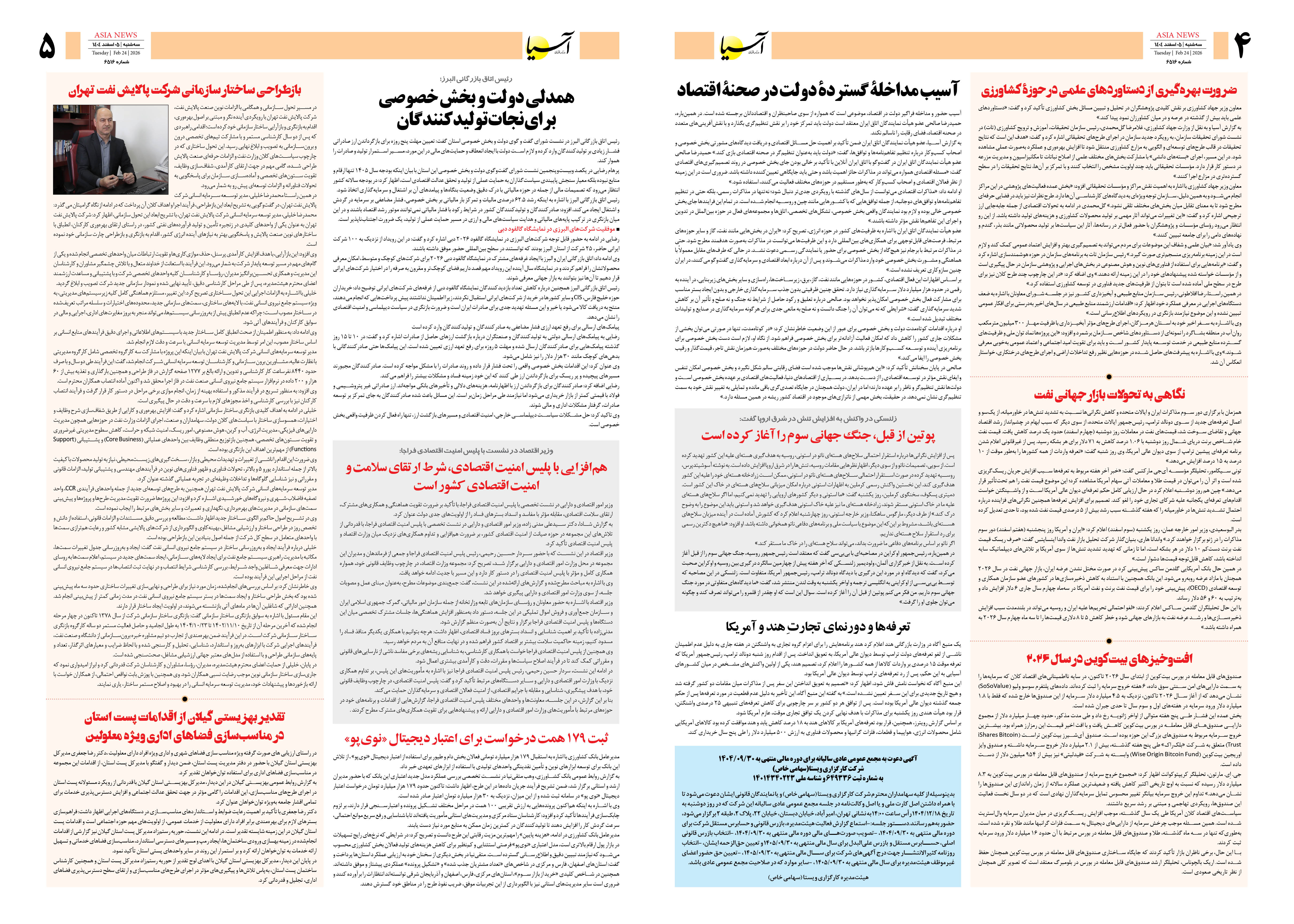 روزنامه اقتصادی آسیا - ۵ اسفند ۱۴۰۴