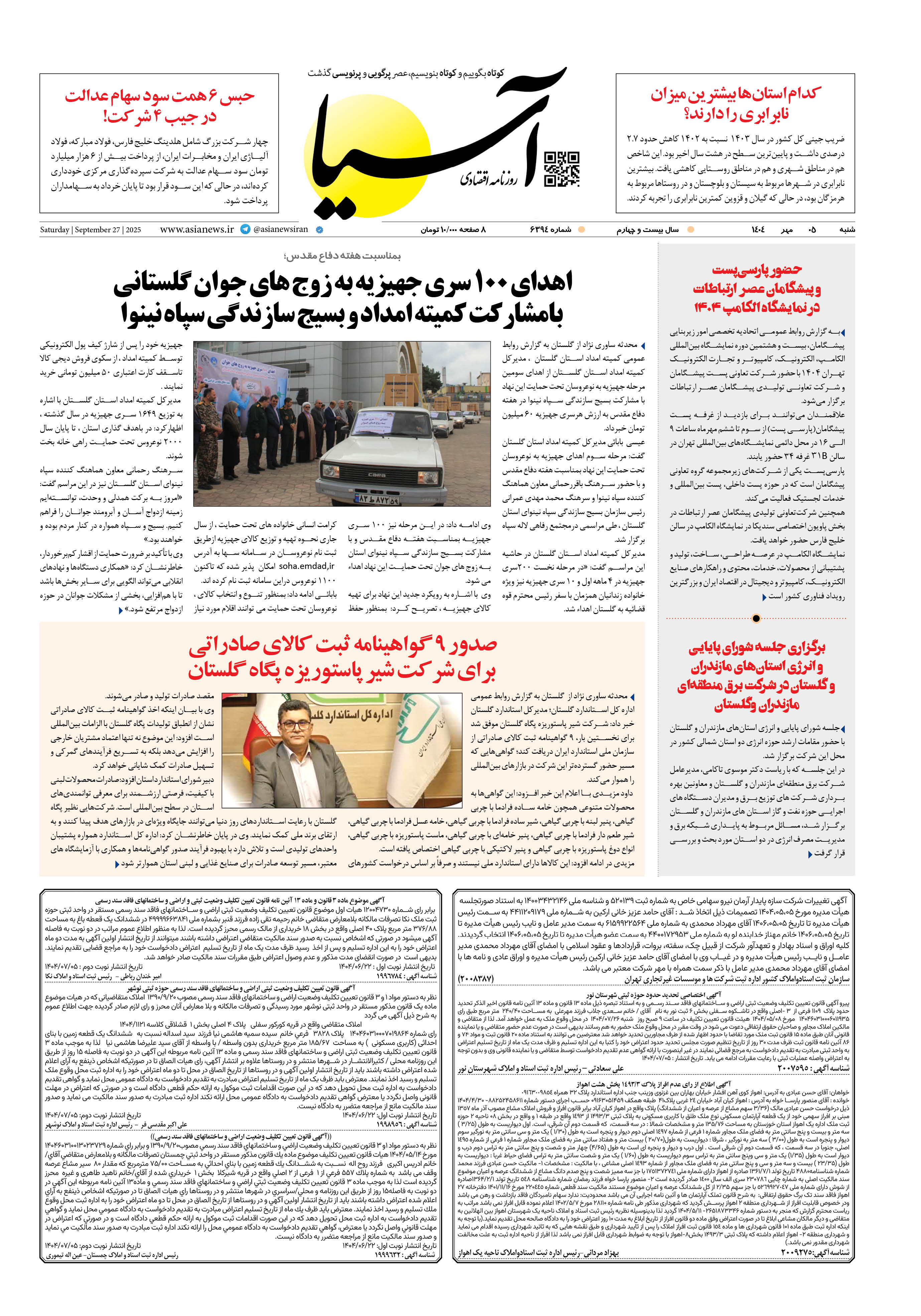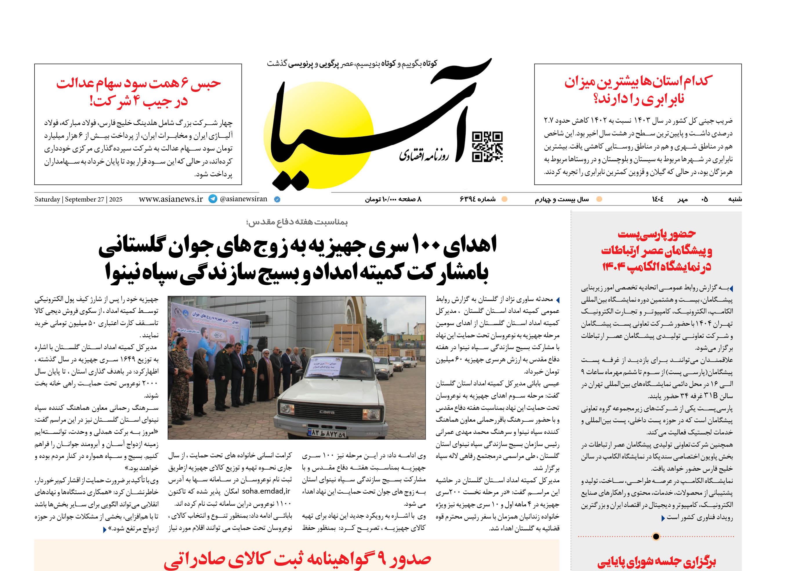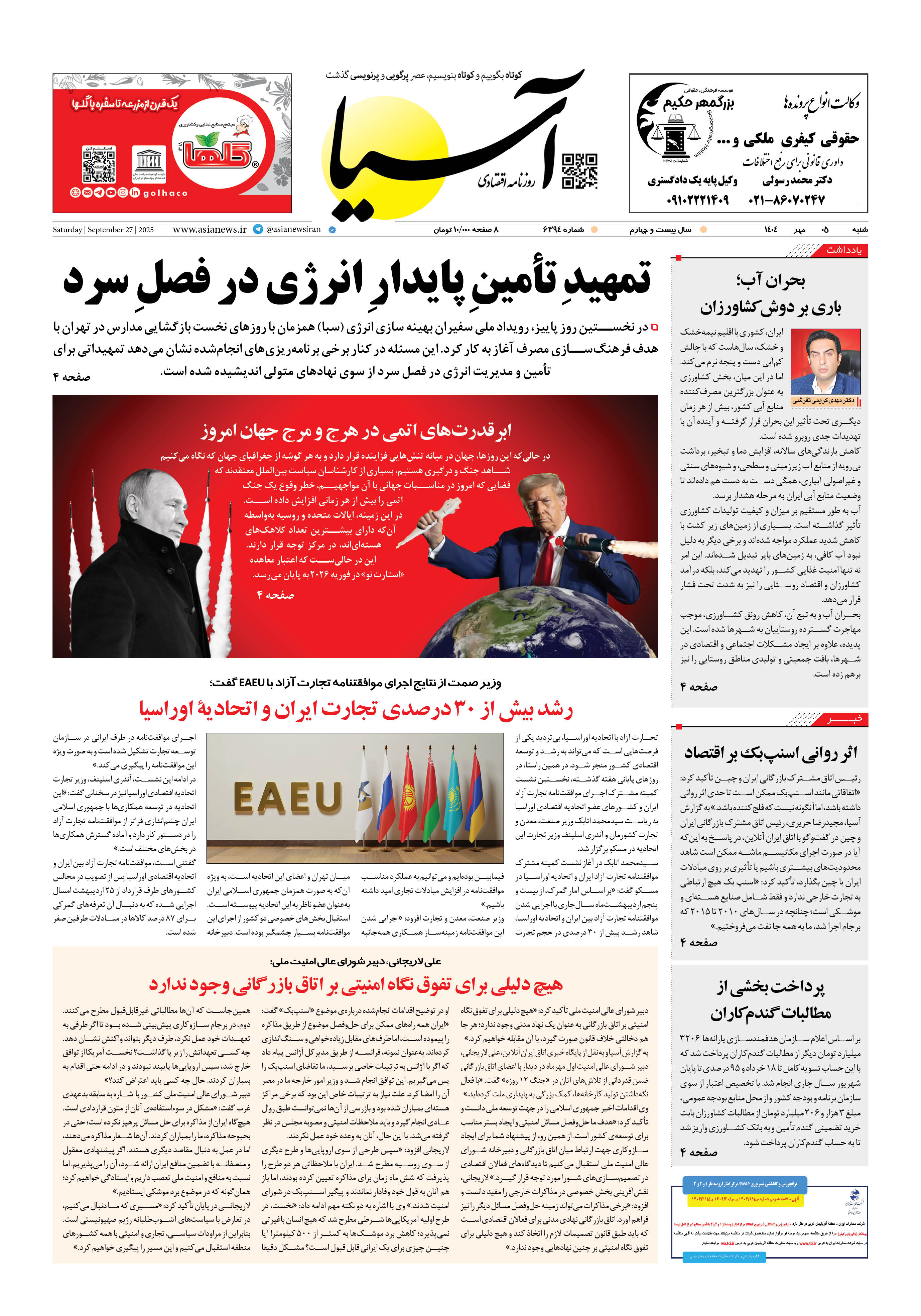 روزنامه اقتصادی آسیا - 5 مهر 1404