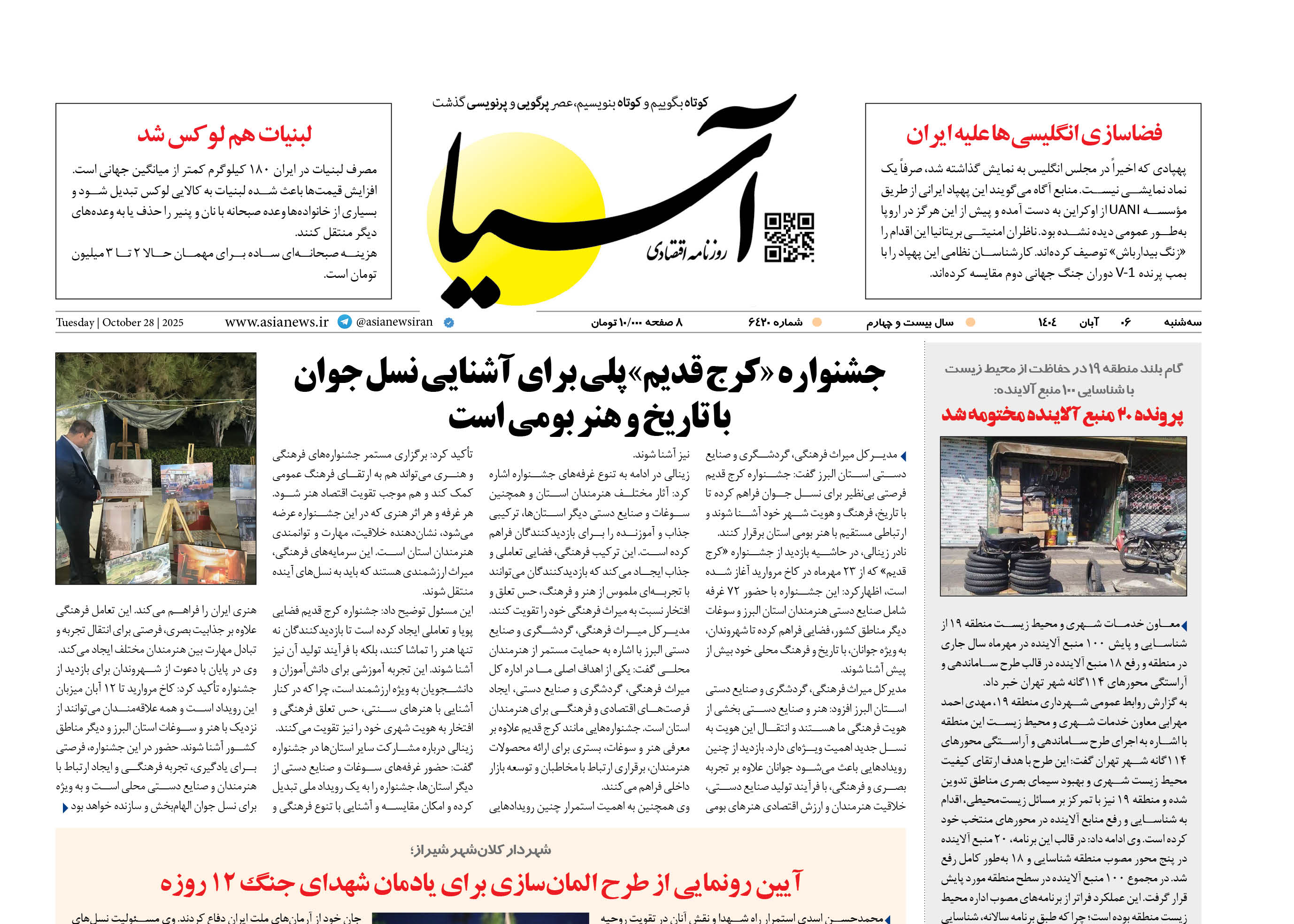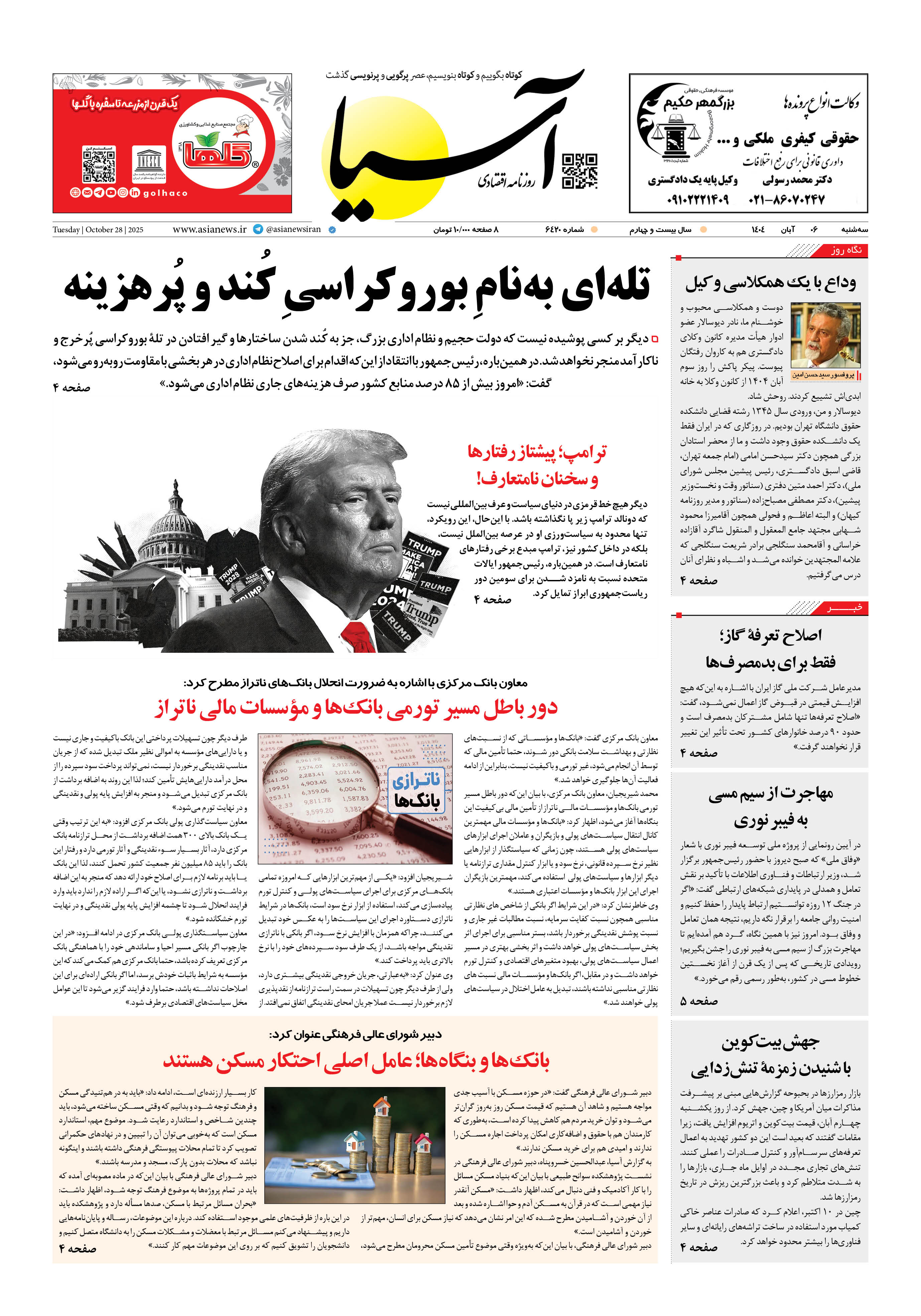 روزنامه اقتصادی آسیا - 6 آبان 1404