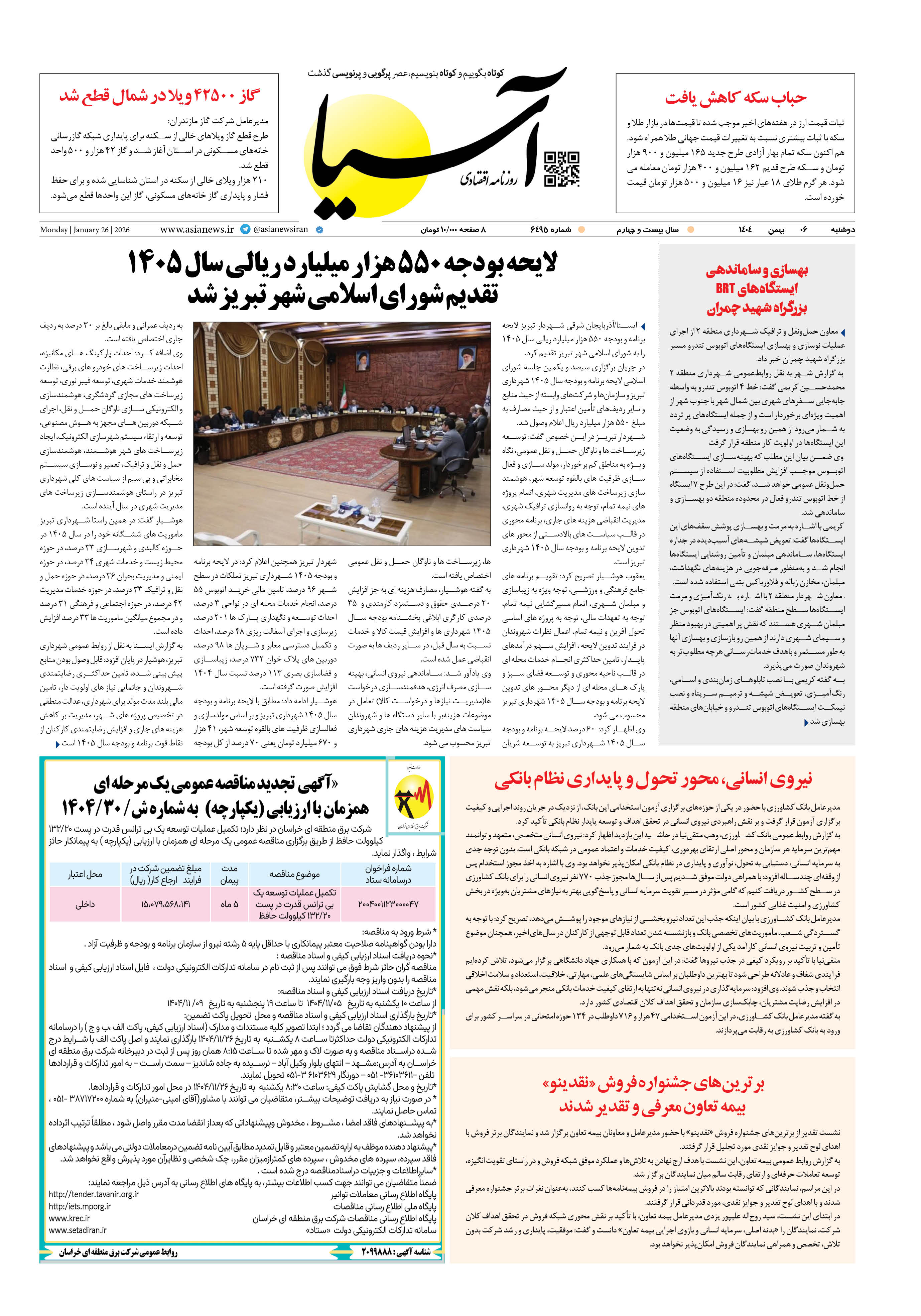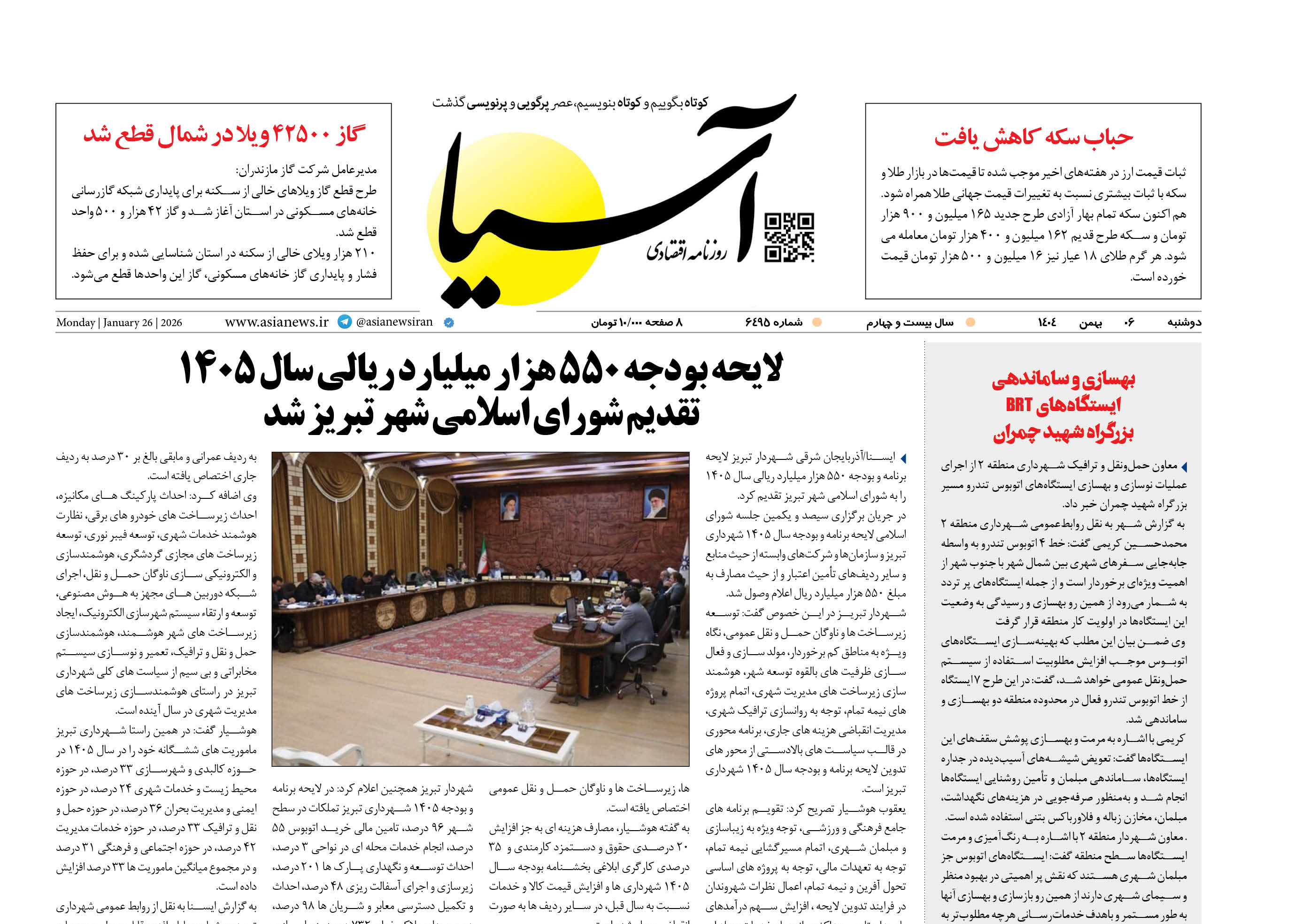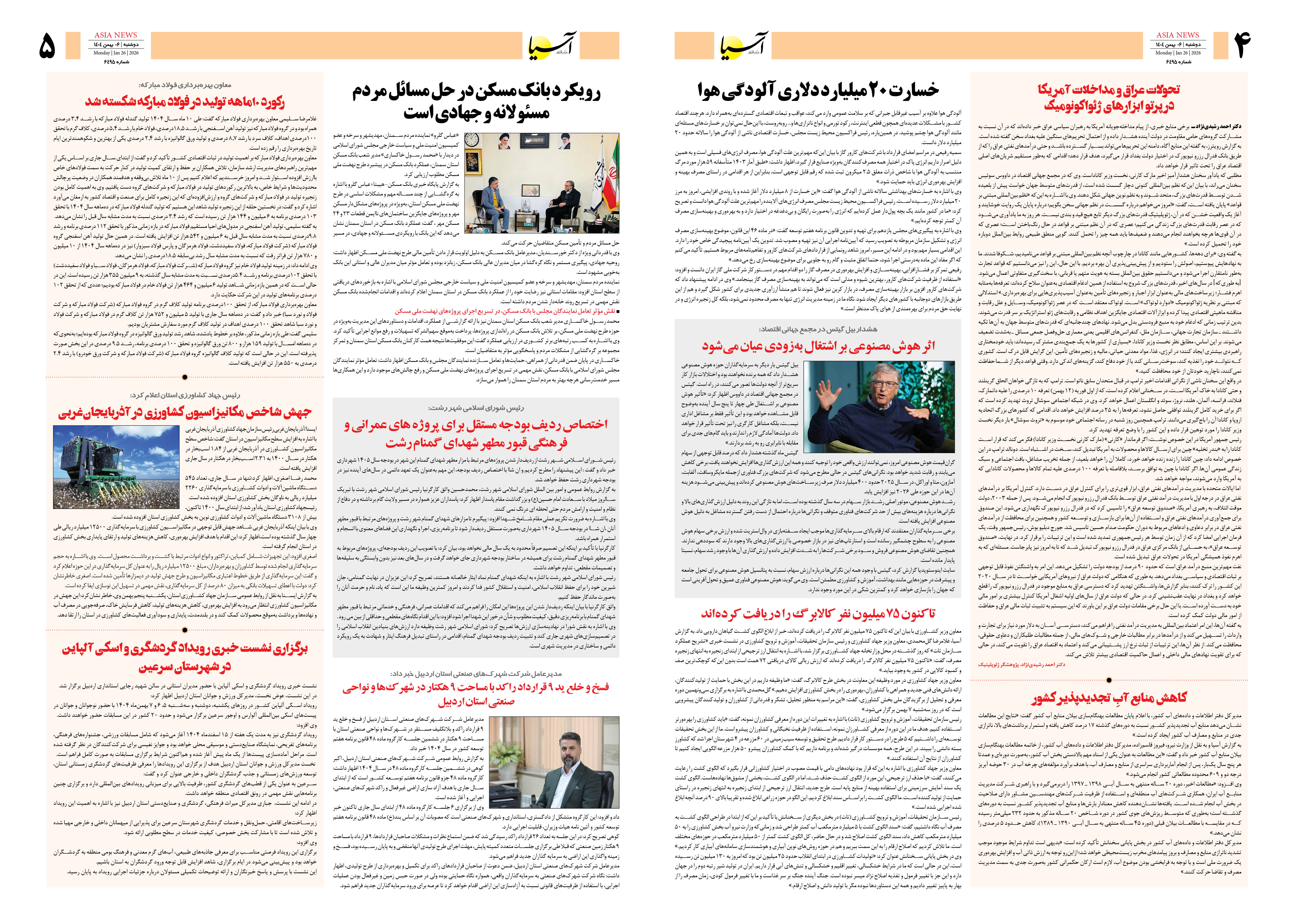 روزنامه اقتصادی آسیا - ۶ بهمن ۱۴۰۴