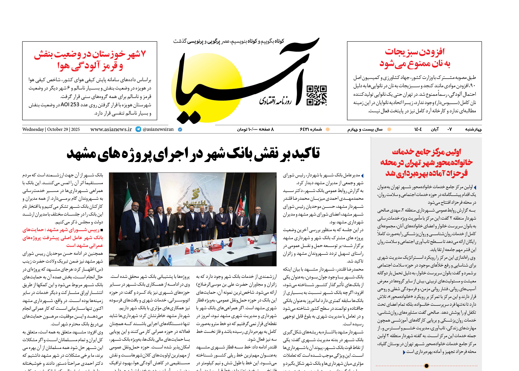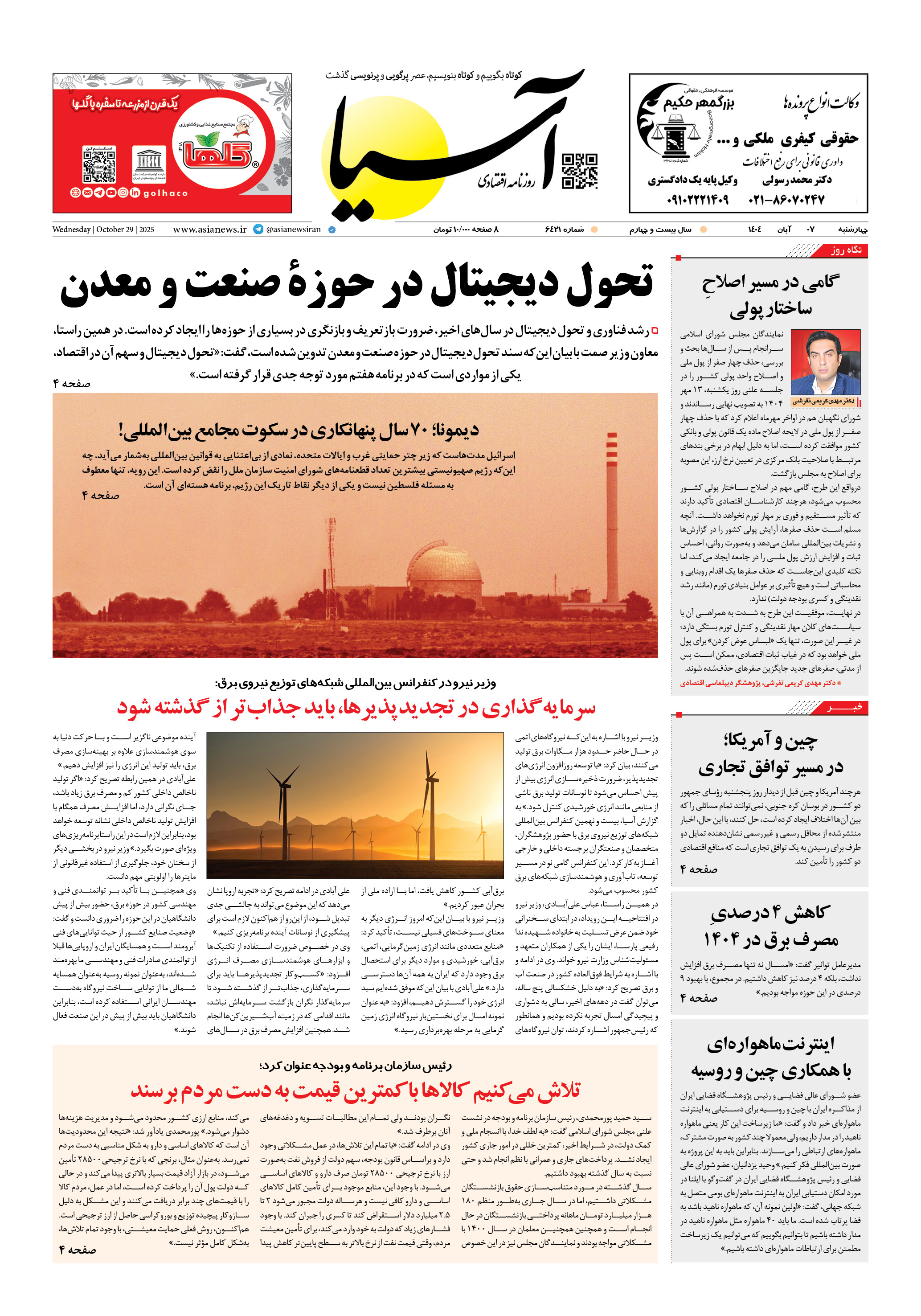 روزنامه اقتصادی آسیا - 7 آبان 1404