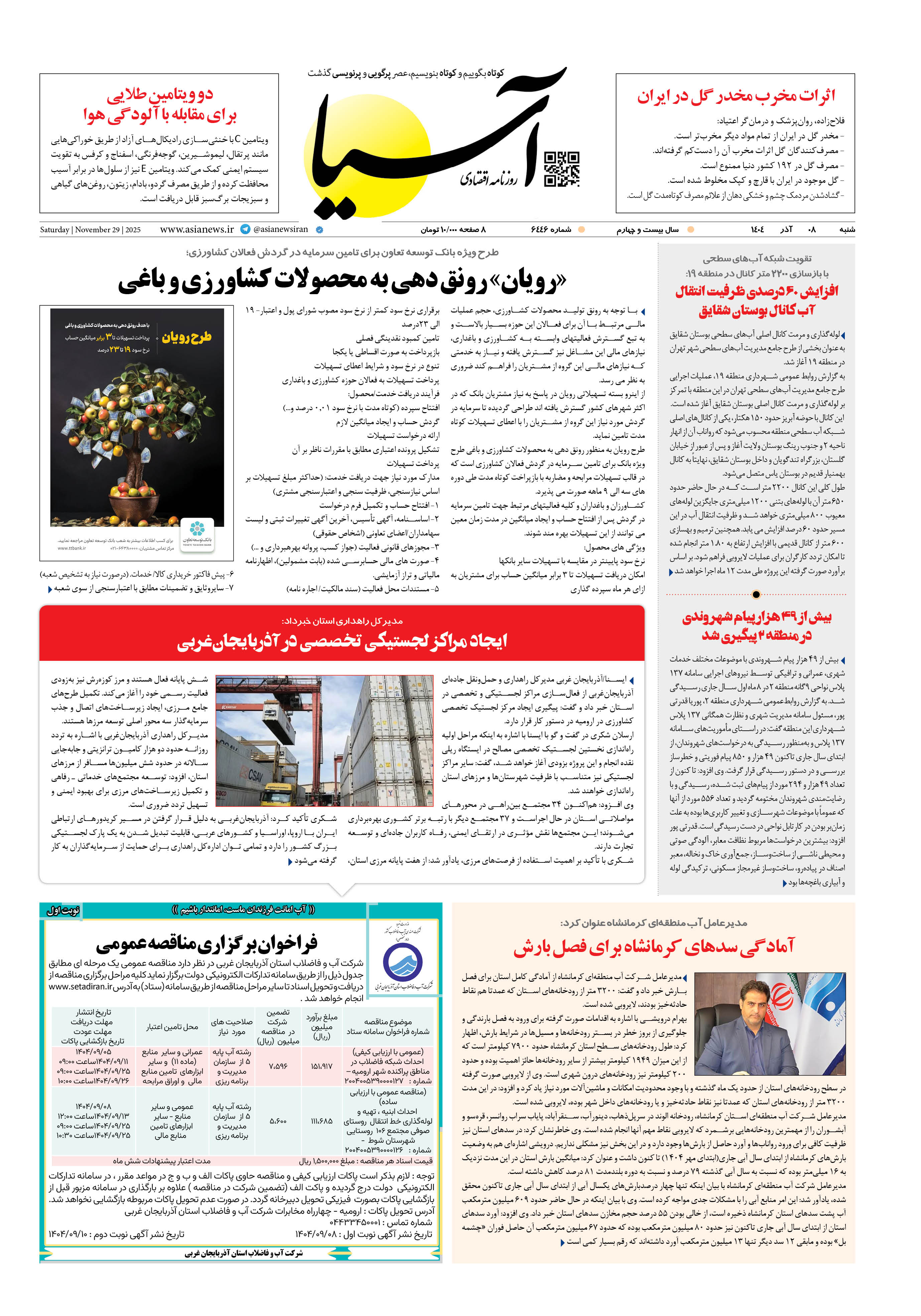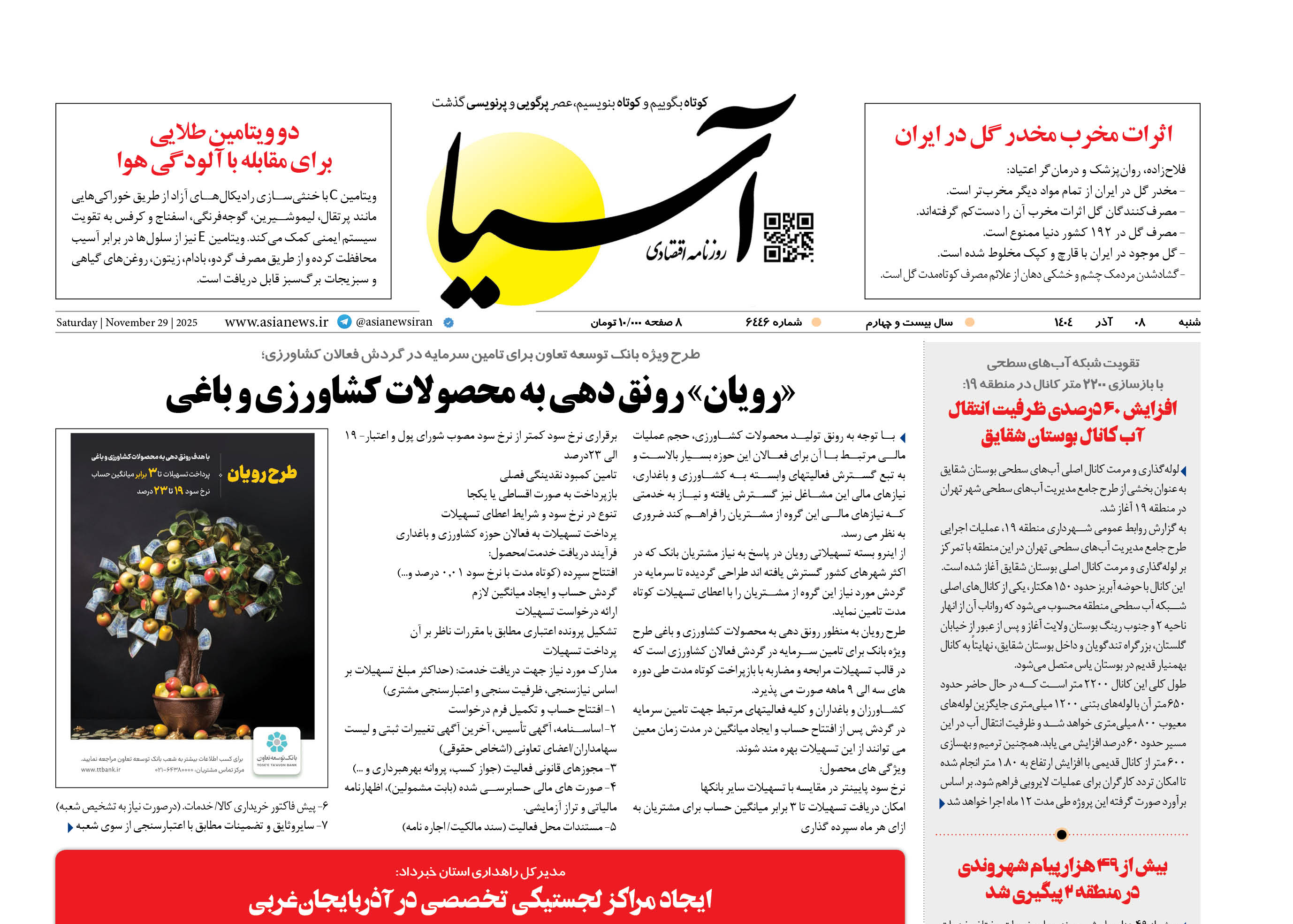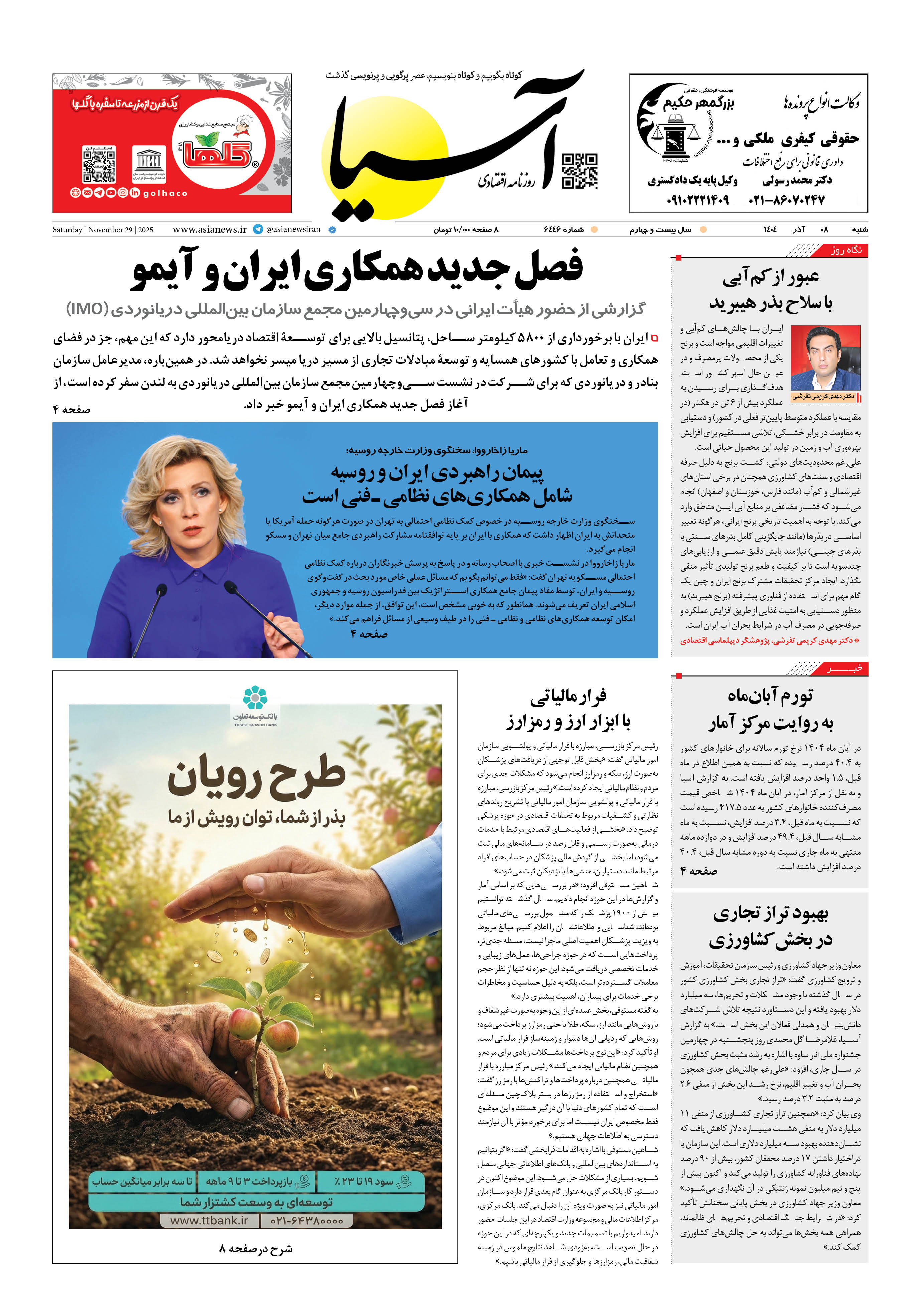 روزنامه اقتصادی آسیا 8 آذر 1404