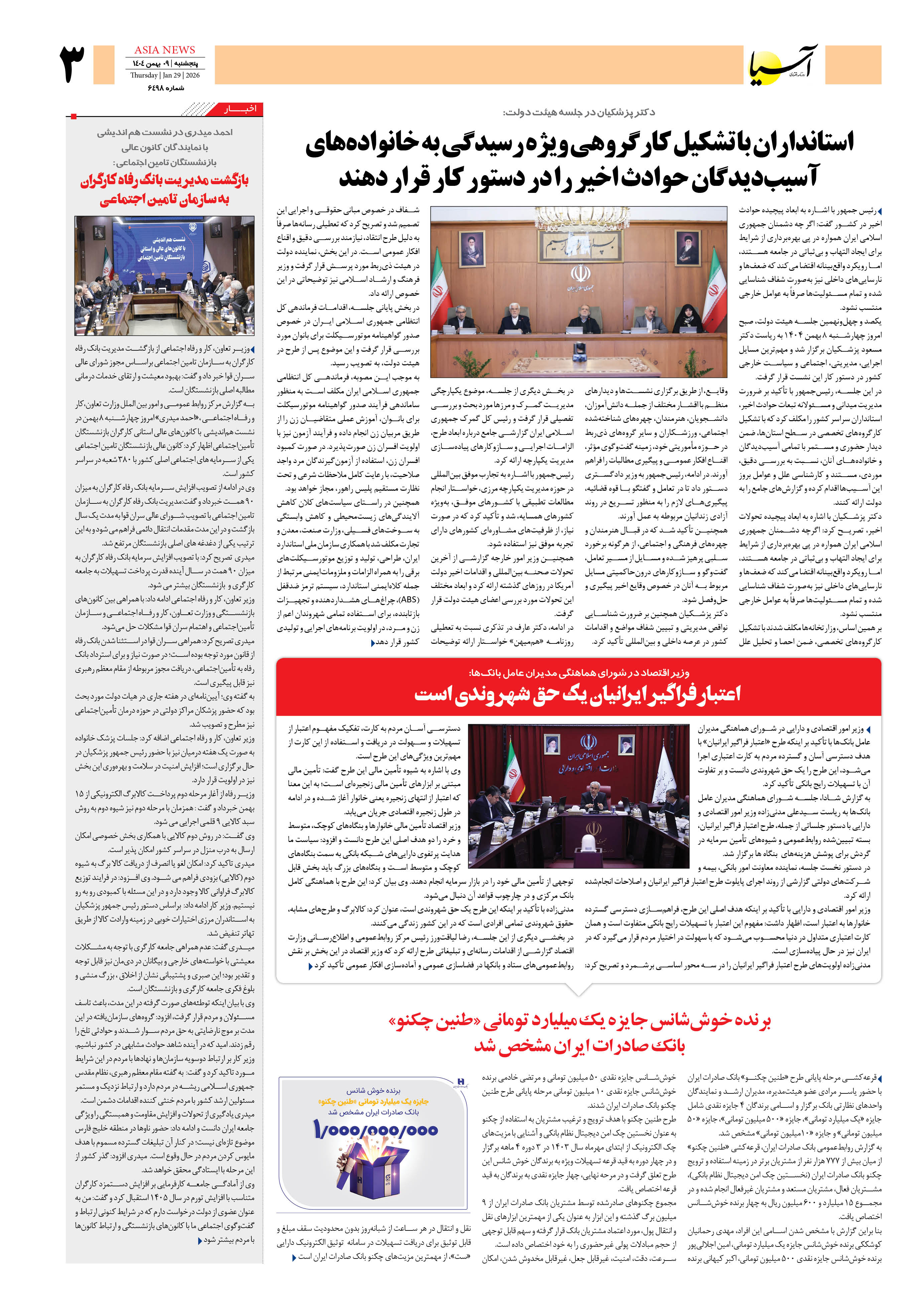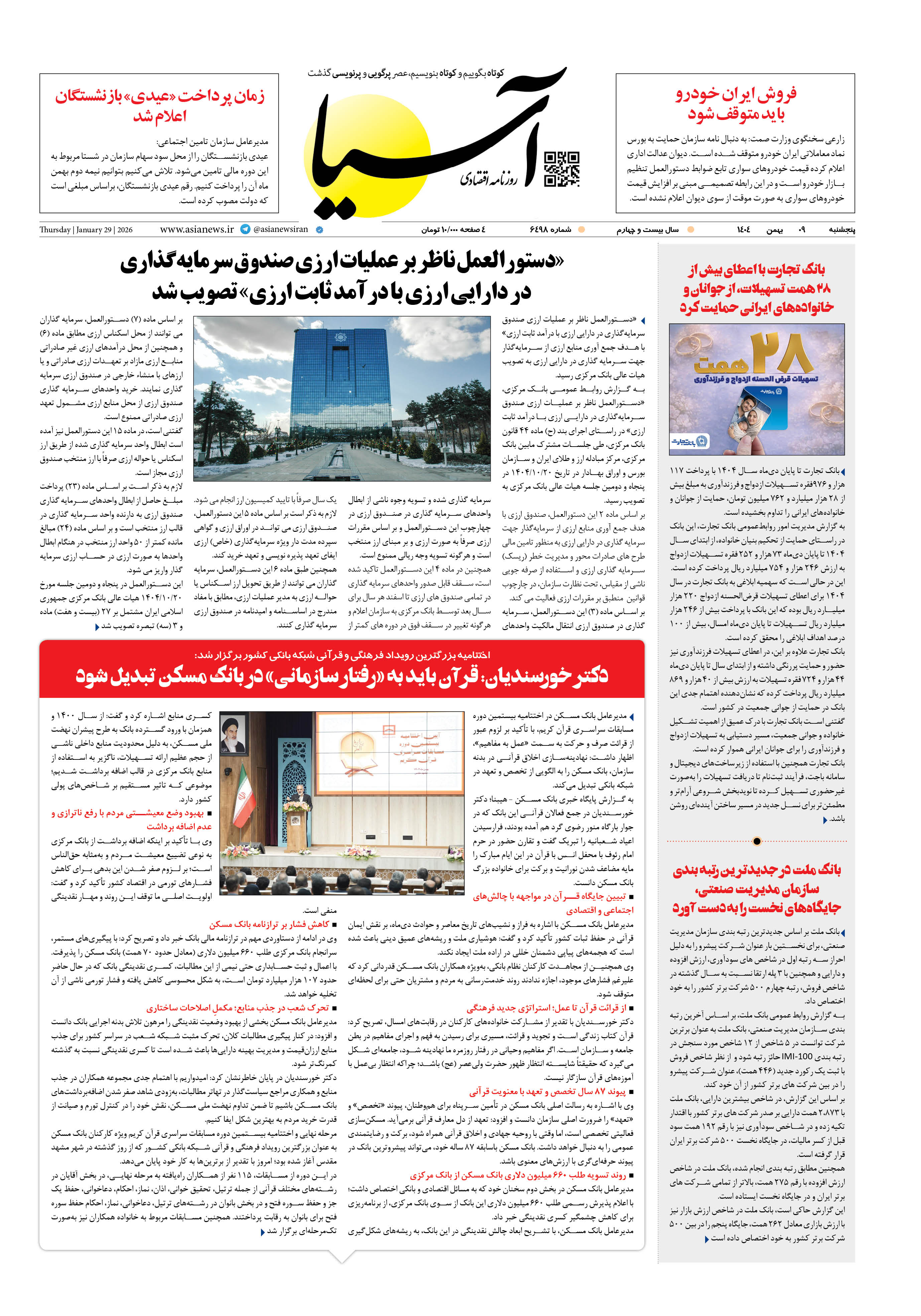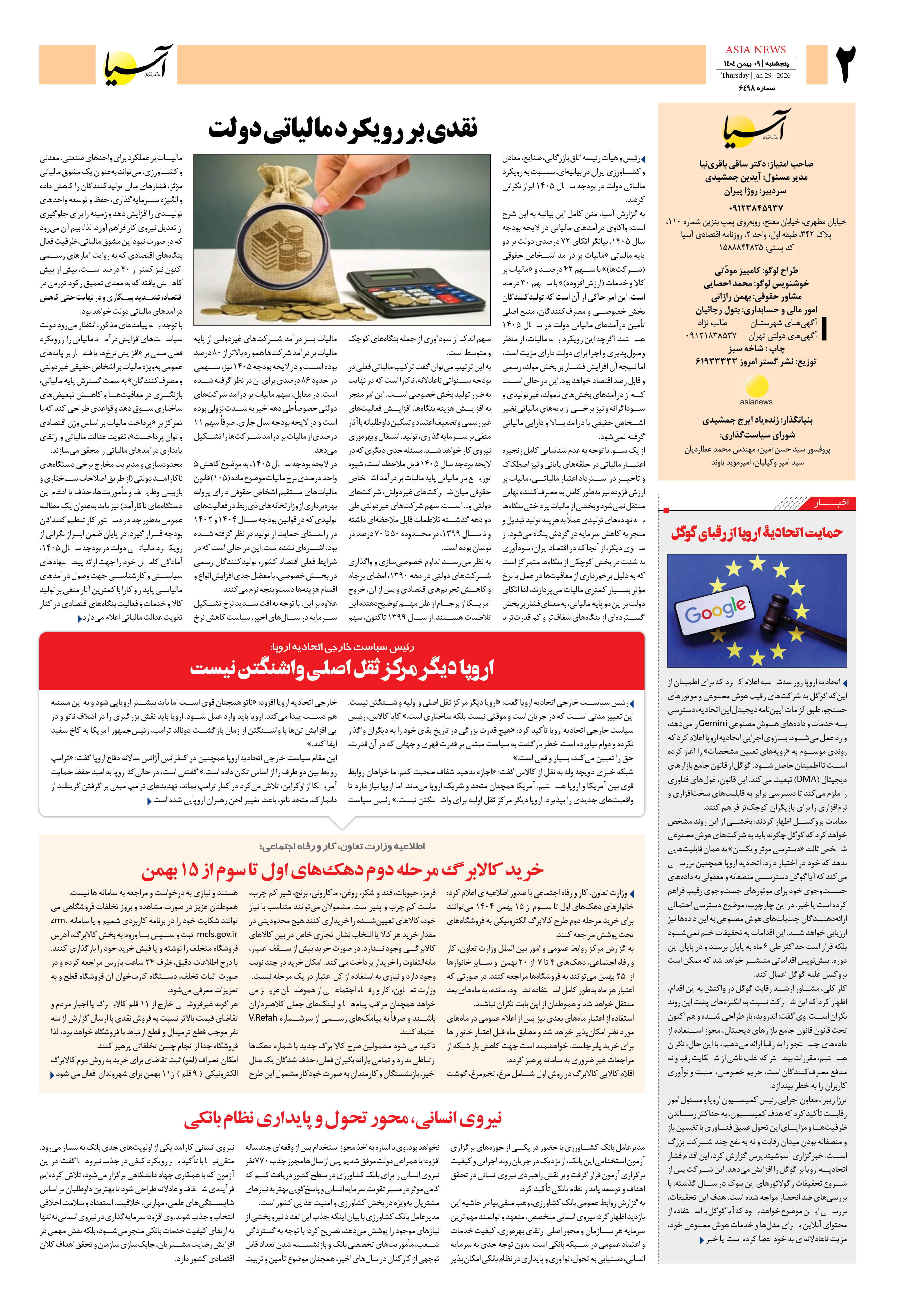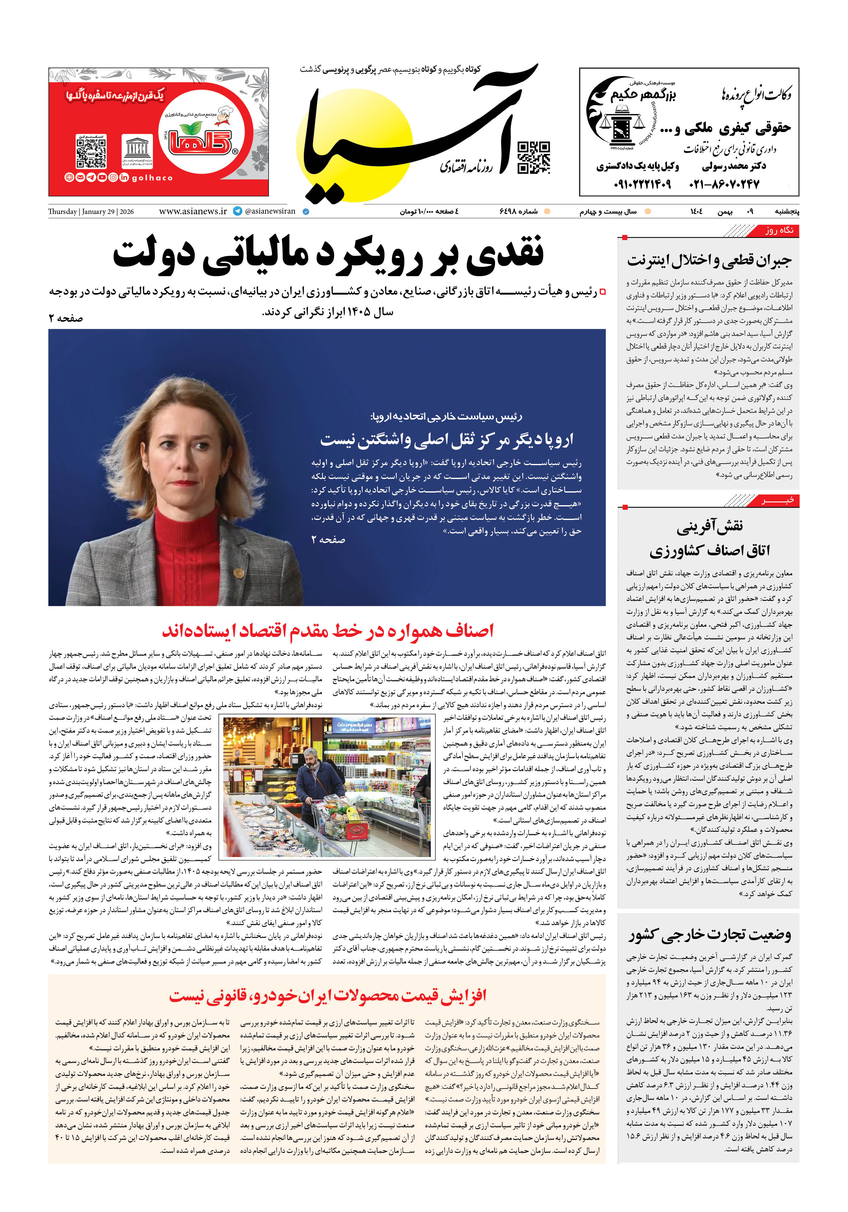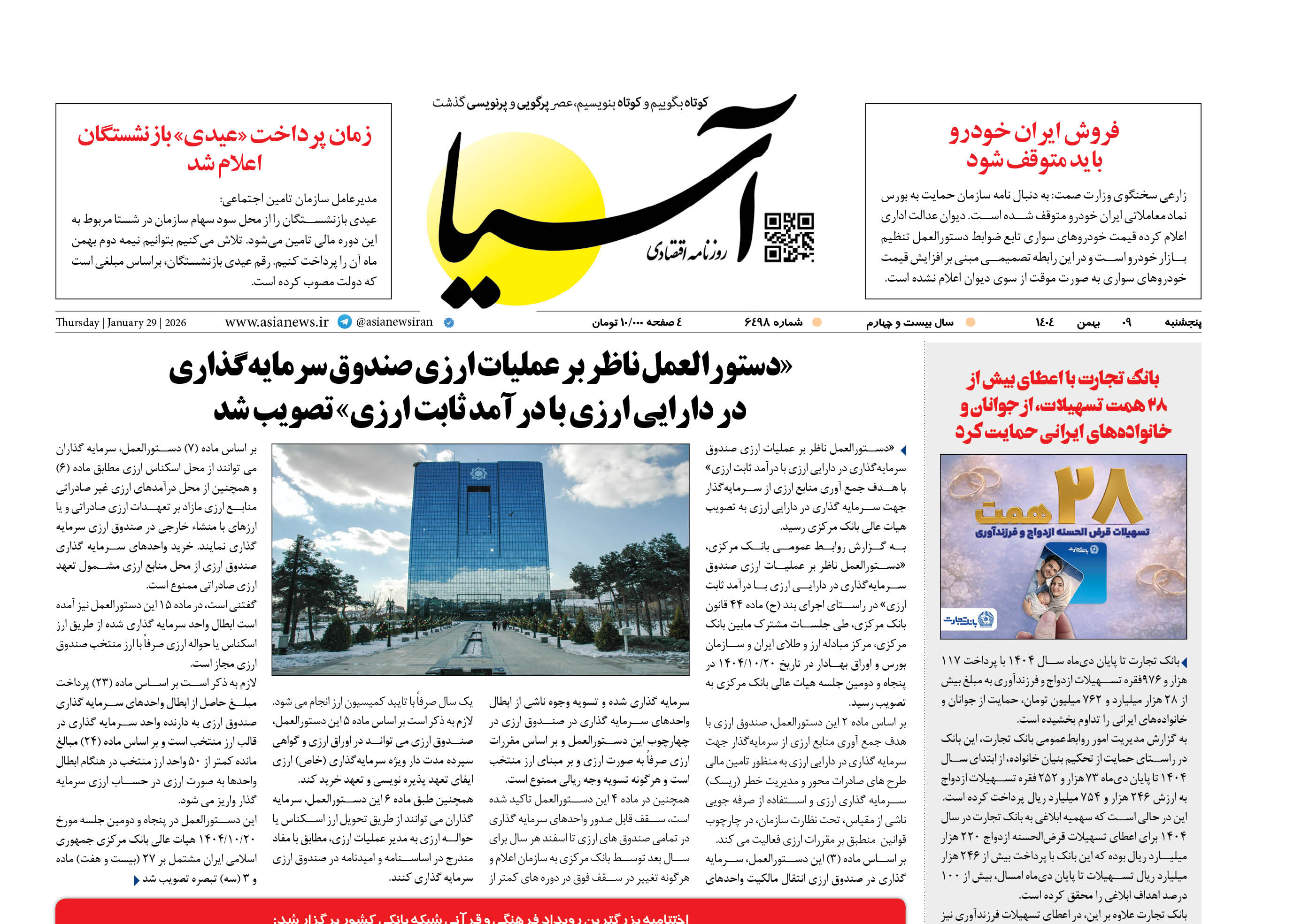 روزنامه اقتصادی آسیا - ۹ بهمن ۱۴۰۴