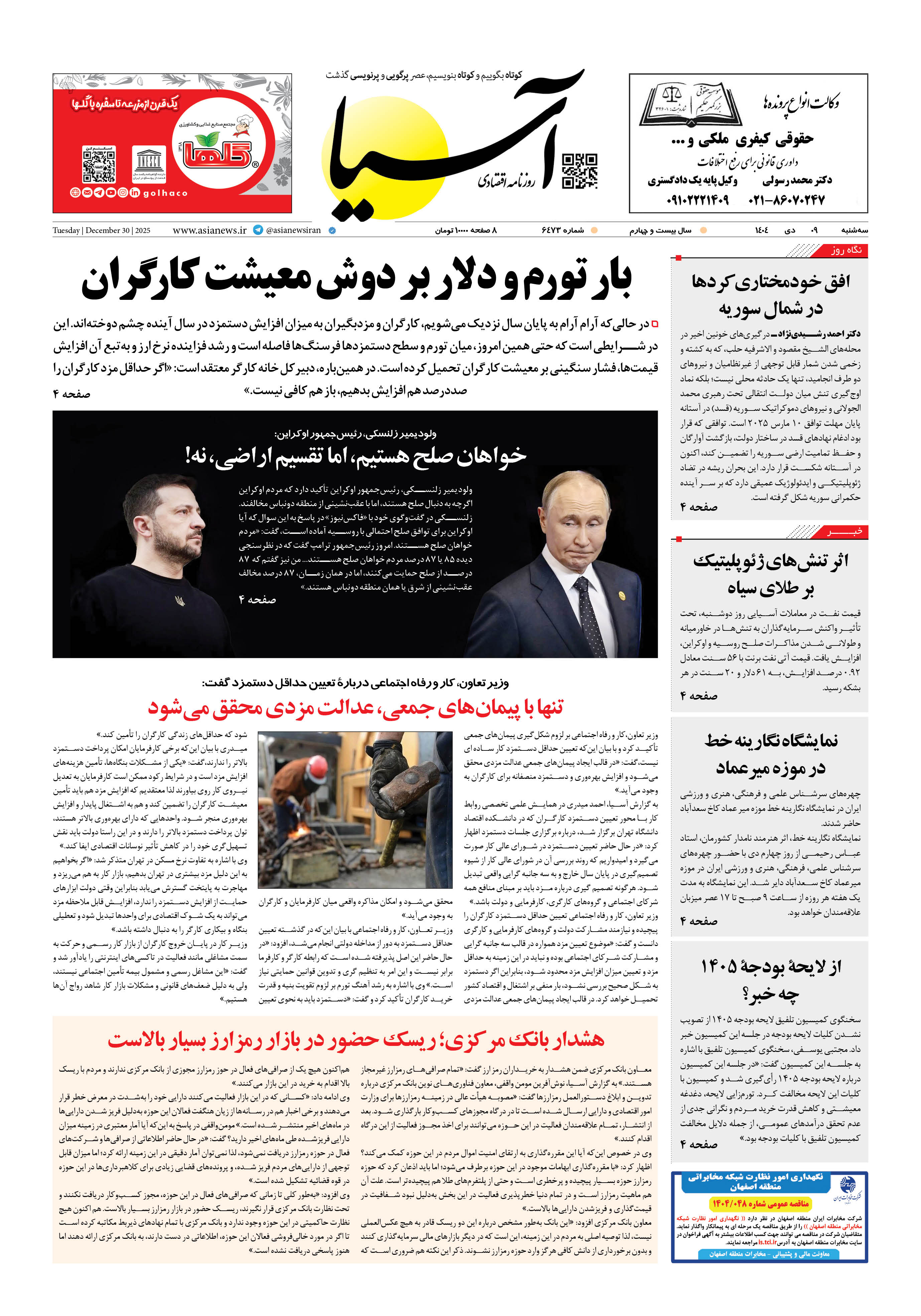 روزنامه اقتصادی آسیا - 9 دی 1404