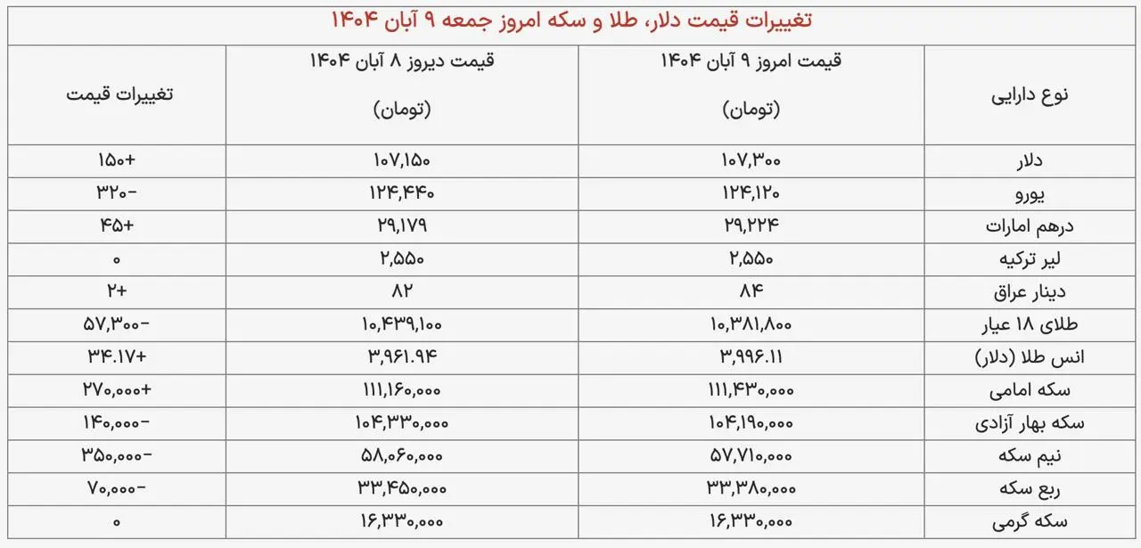 قیمت طلا امروز جمعه ۹ آبان ۱۴۰۴
