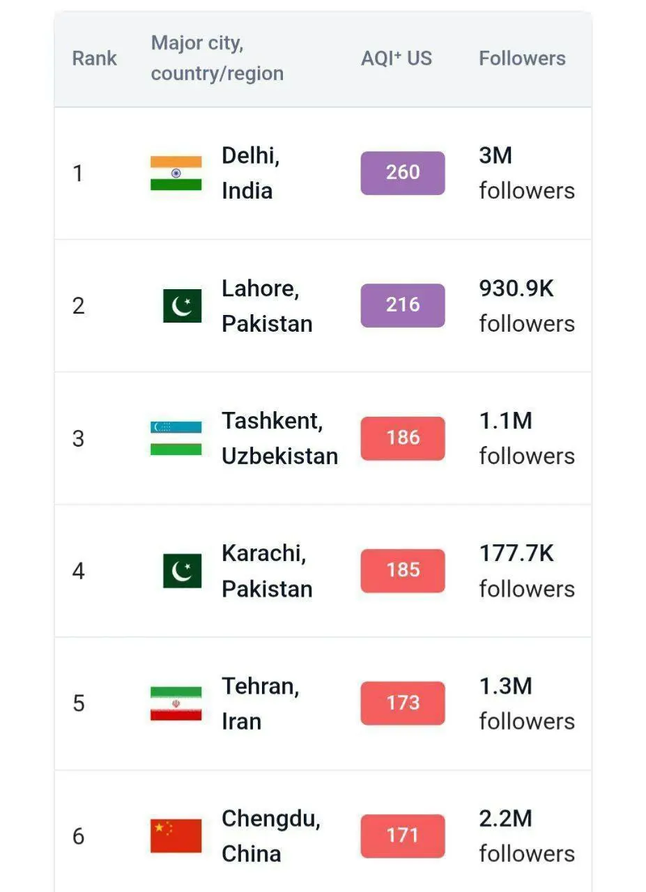 به گزارش شرق، تهران امروز با شاخص کیفیت هوای قرمز به عنوان پنجمین شهر آلوده جهان معرفی شد.